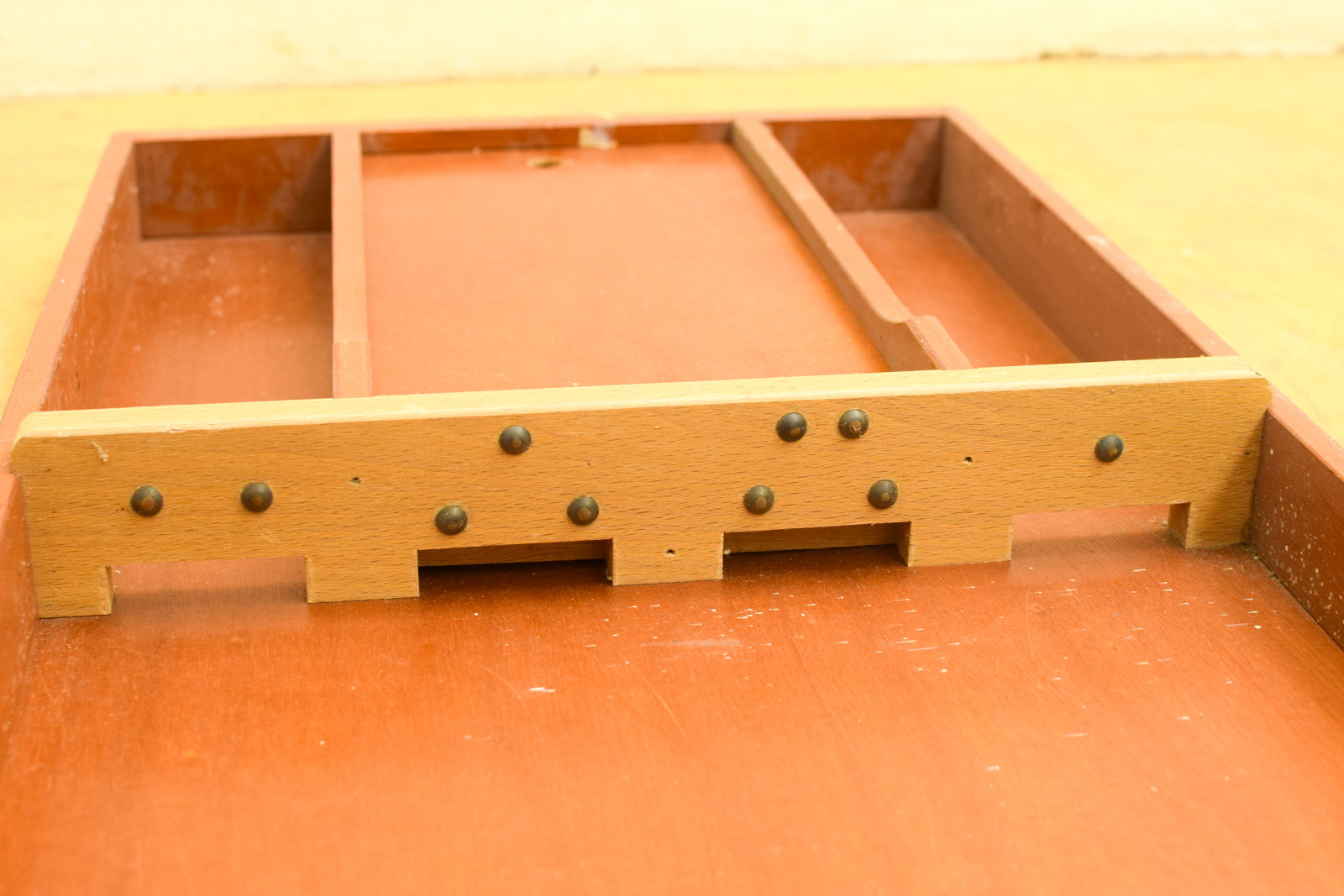 30 stuks houten schijfjes diameter van het schijfje 5,5 cm hoog 1 cm de sjoelbak heeft aan de achterkant vlekken de sjoelbak is gebruikt