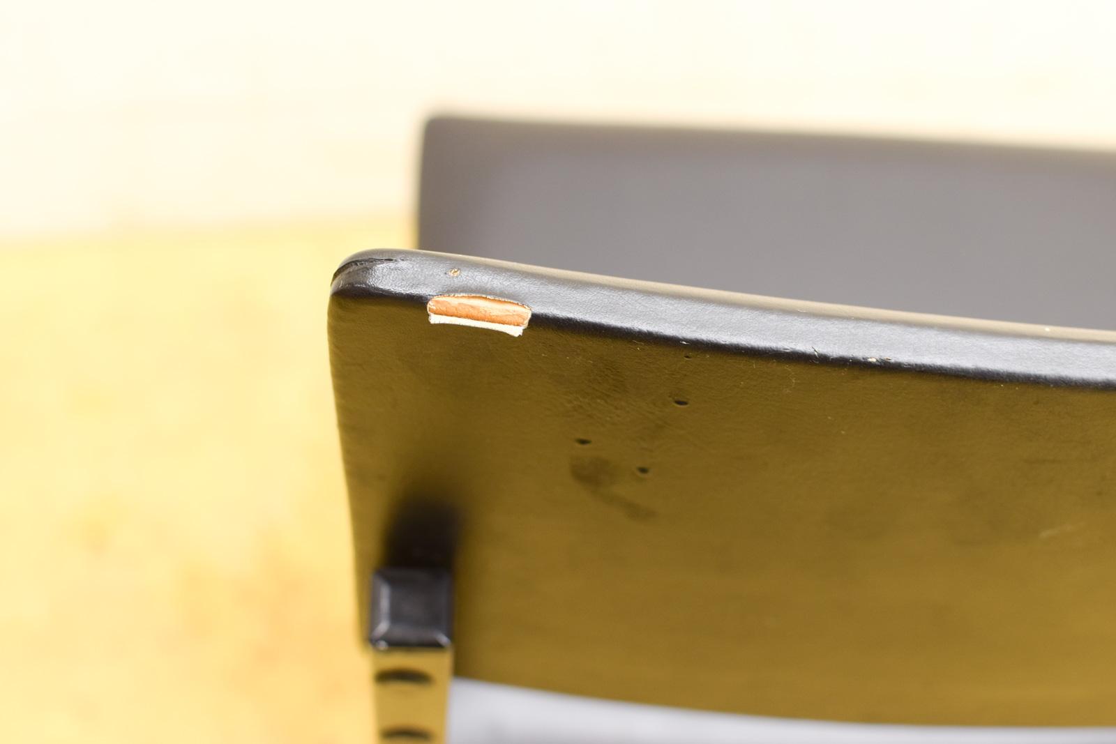 de stoel heeft een beschadiging op de achterkant van de rugleuning en een wit vlekje op de zitvlak breedte 40,5 cm