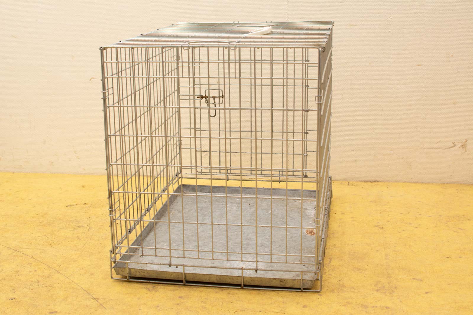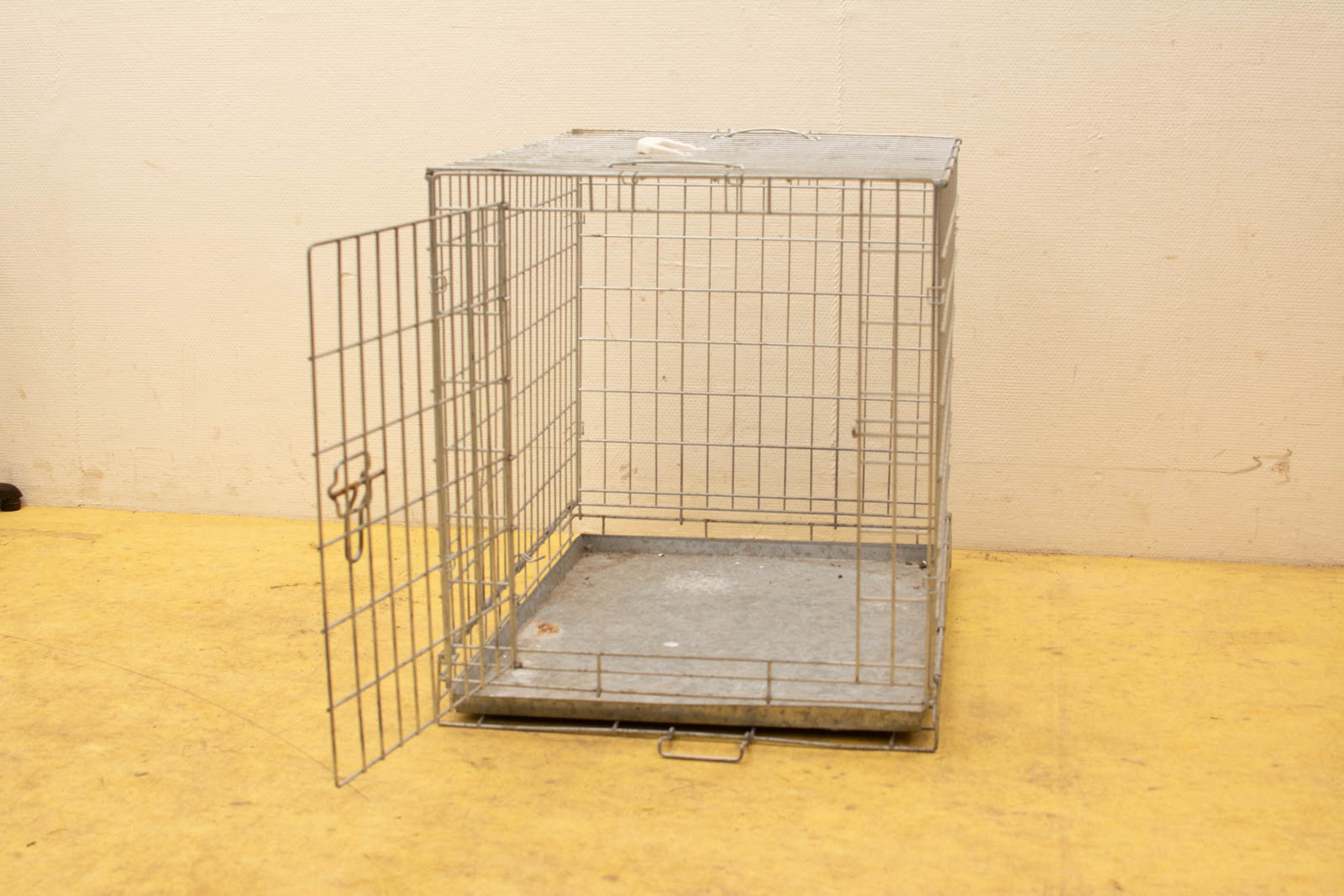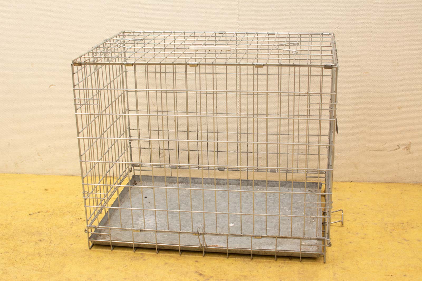 gemeten uitelkaar het deurtje aan de voorkant breed 54 cm diepte 76cm hoog 61 cm de hondenbench kan inelkaar de kooi heeft roest en gebruiksporen