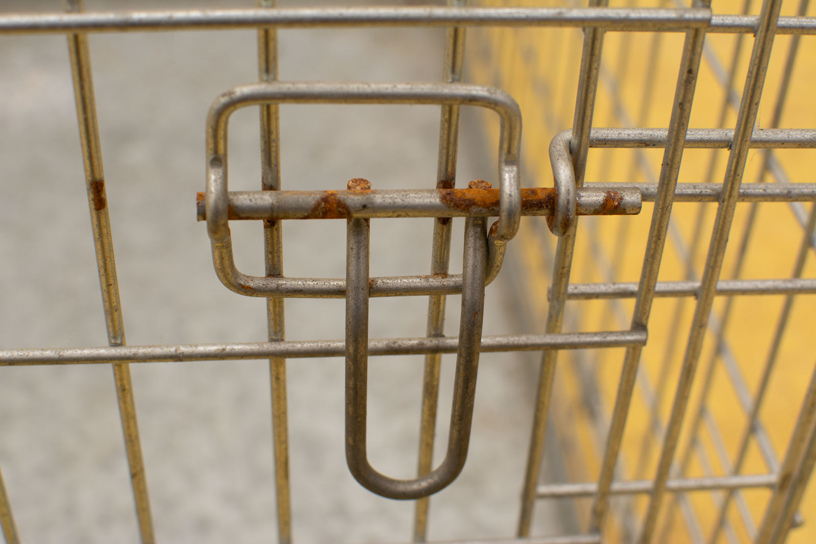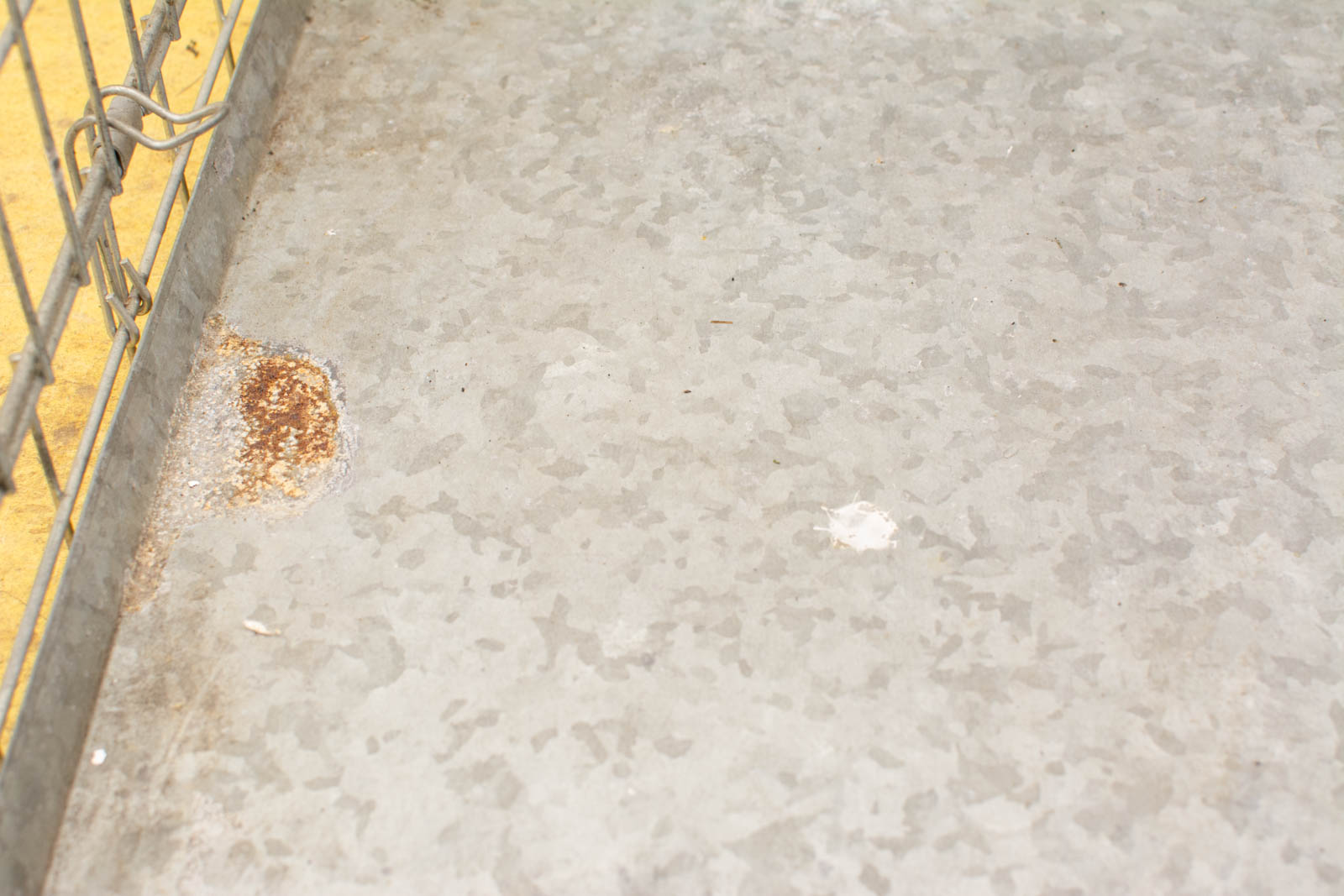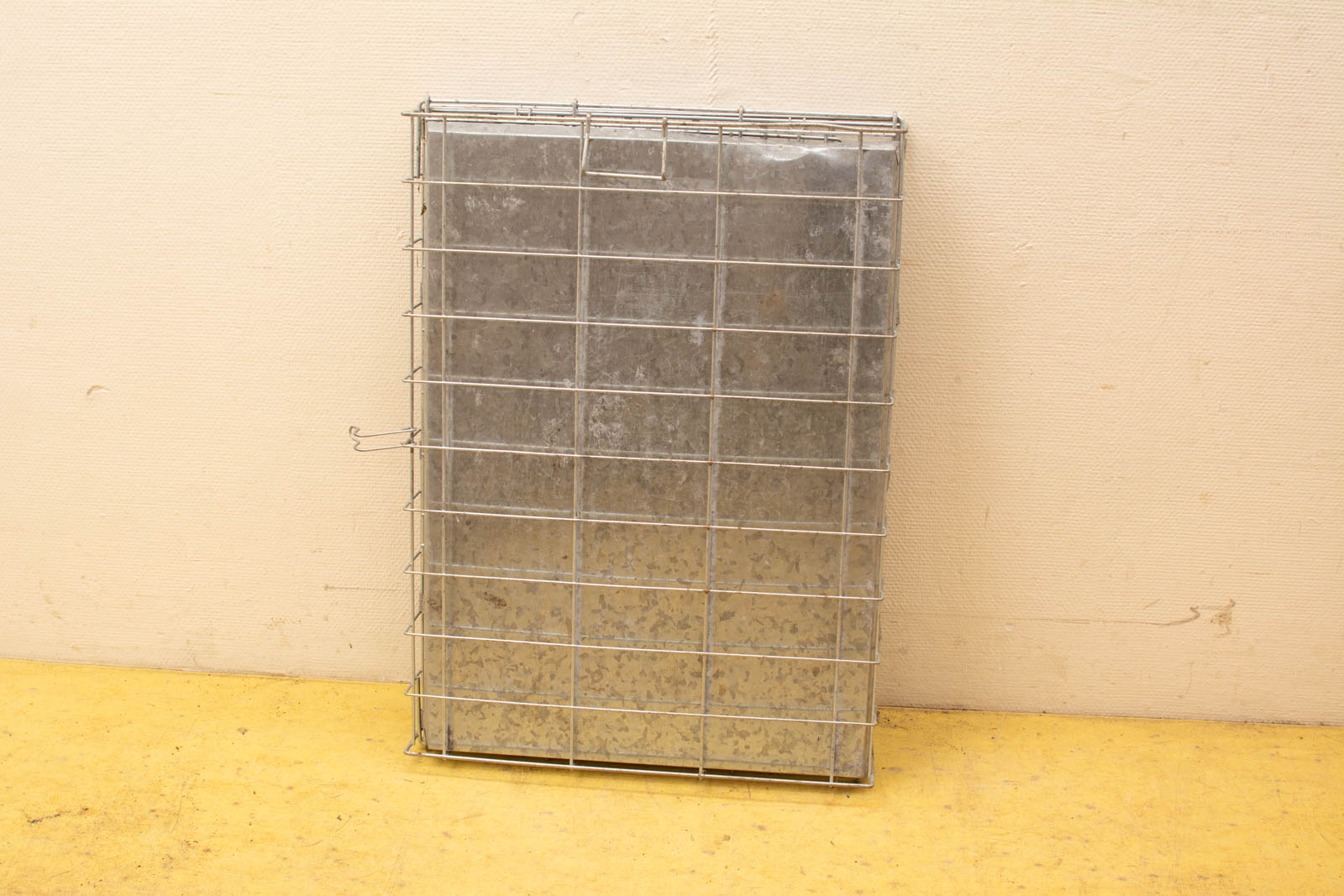 gemeten uitelkaar het deurtje aan de voorkant breed 54 cm diepte 76cm hoog 61 cm de hondenbench kan inelkaar de kooi heeft roest en gebruiksporen
