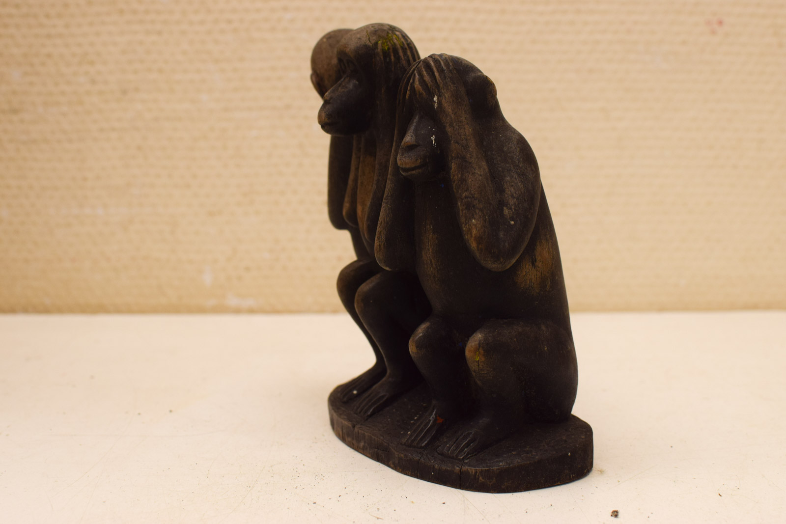 horen , zien en zwijgen het hout heeft gebruikssporen maar is heel breed 14,5 cm