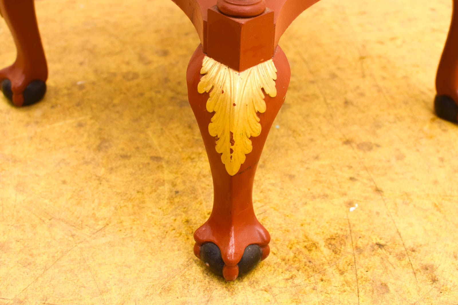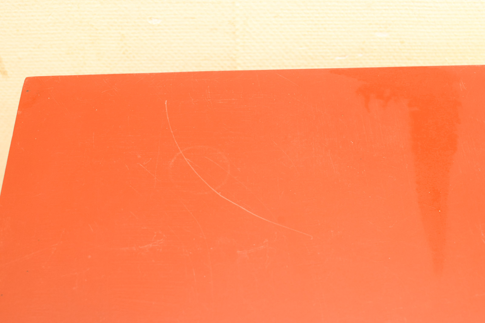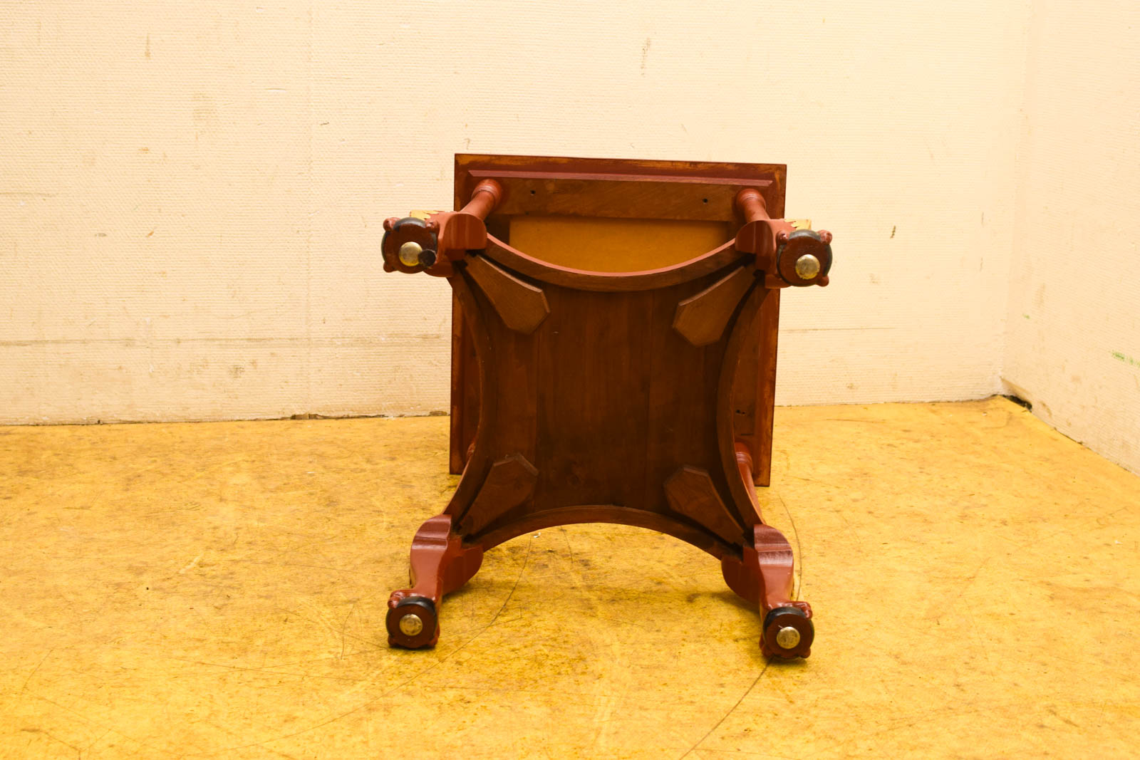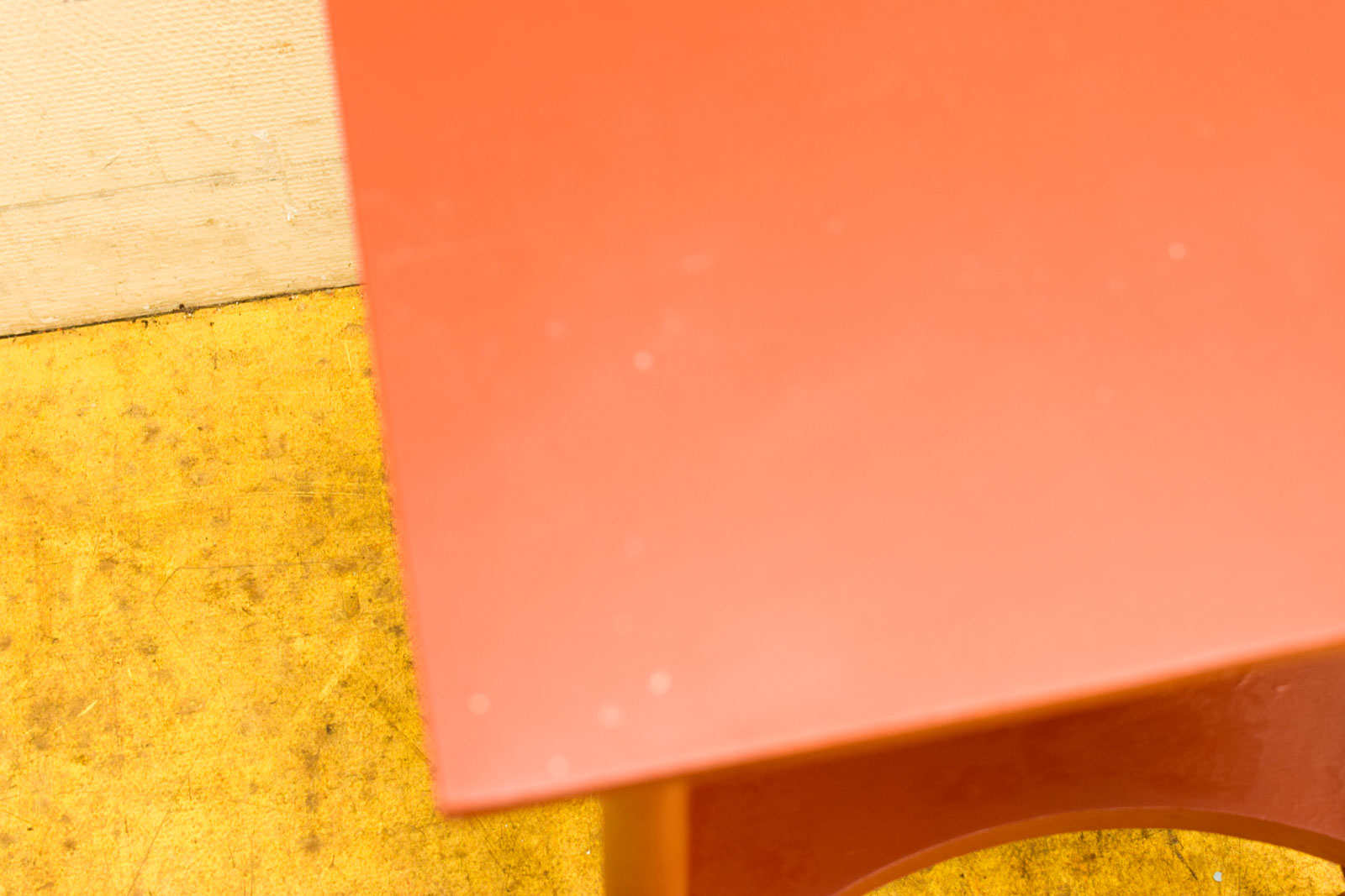 aparte kleur bruin/rood ruimte tussen de planken hoog 42,5 cm de tafel heeft gebruikssporen