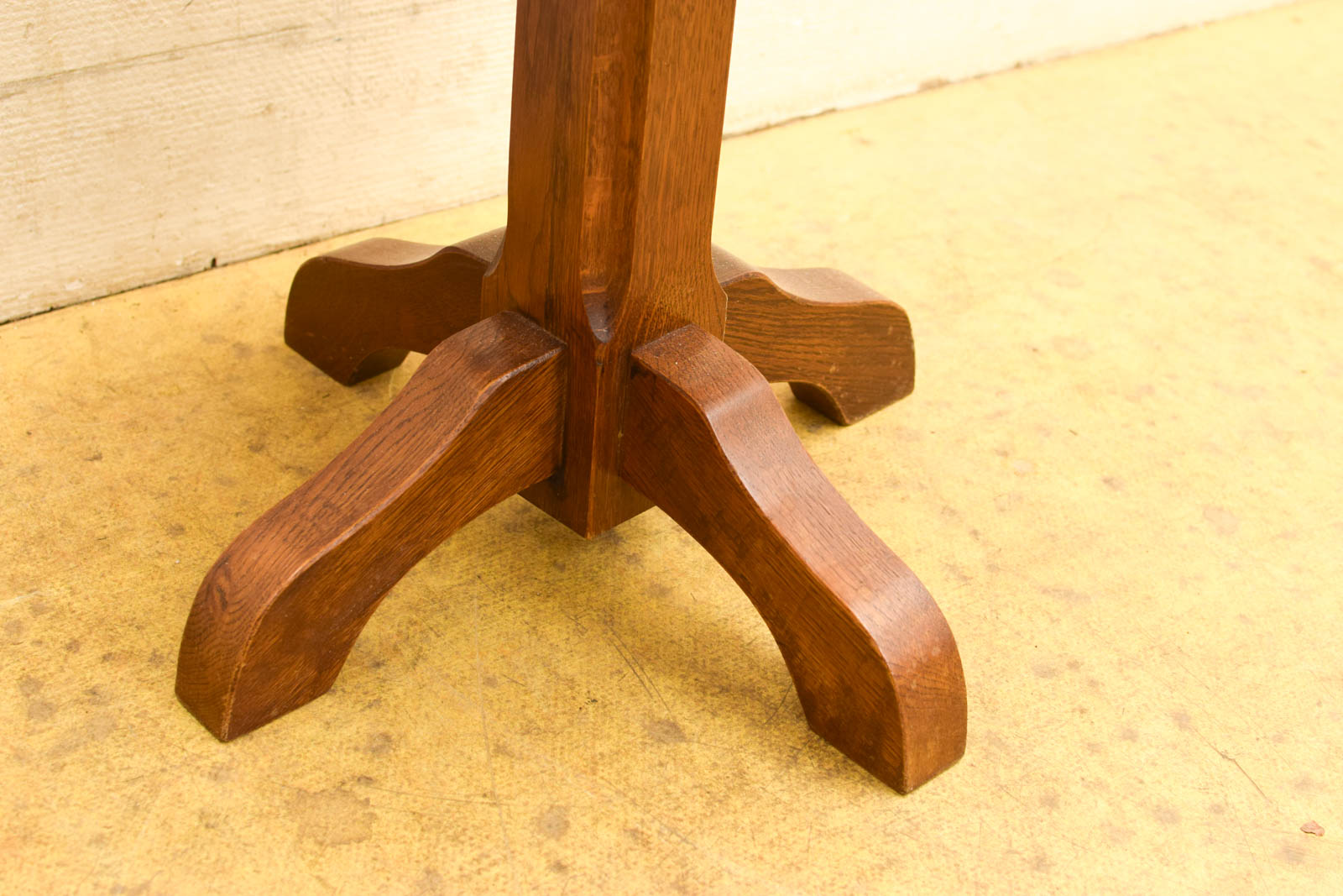 de bijzettafel heeft wat gebruikssporen en het hout is wat verkleurd maar is verder nog heel en stevig hoog 49,5 cm