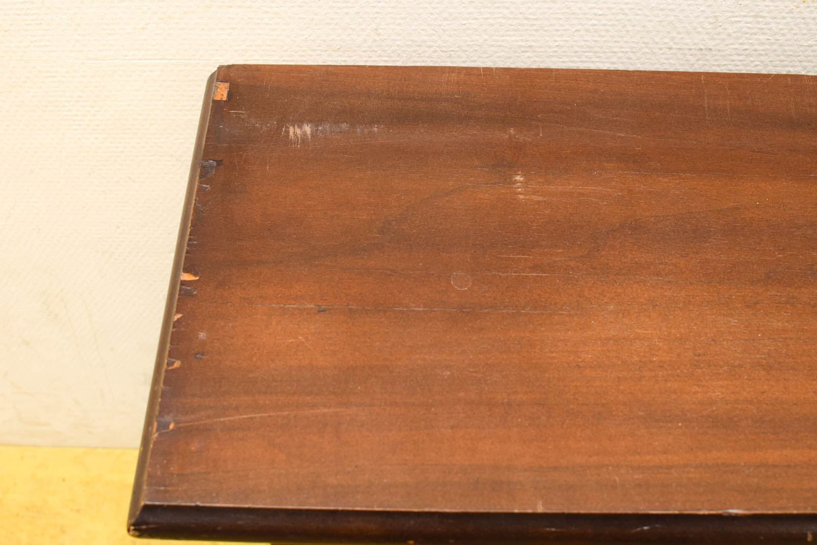 Dit is niet een tafel voor wie als-nieuw wil, maar juist voor wie van vintage meubels houdt die echte leeftijd hebben. Ideaal als opknappertje voor wie graag zelf aan de slag gaat met restauratie of simpelweg functionaliteit boven perfecte afwerking stelt.