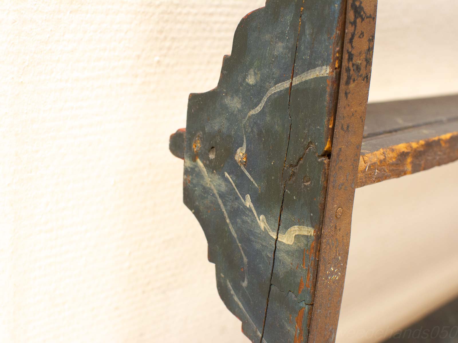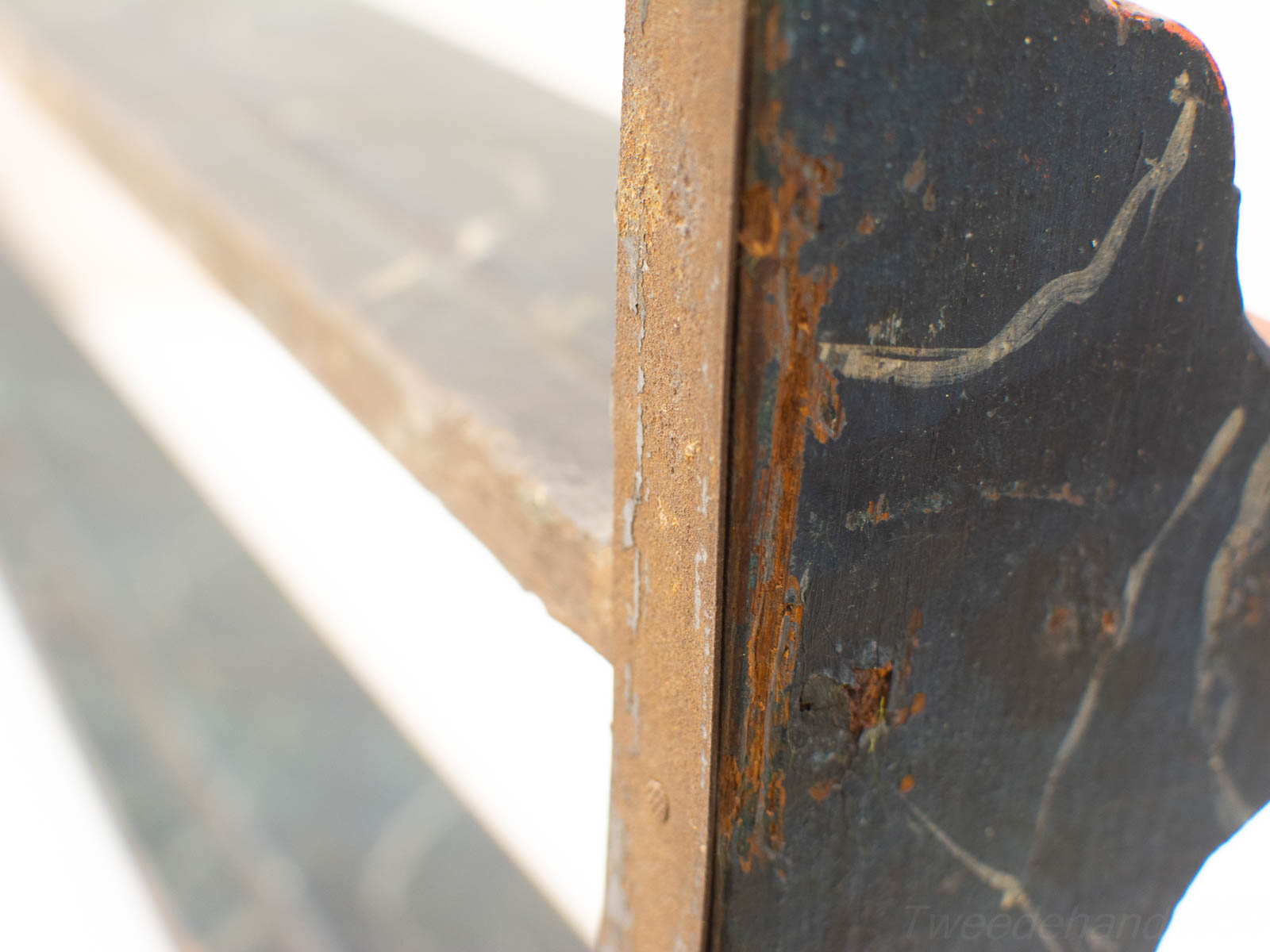 de bordenrek heeft gebruiksporen ruimte tussen de plankjes 17 cm diepte van de plankjes 9 cm