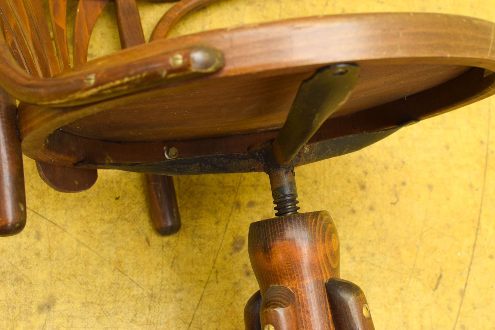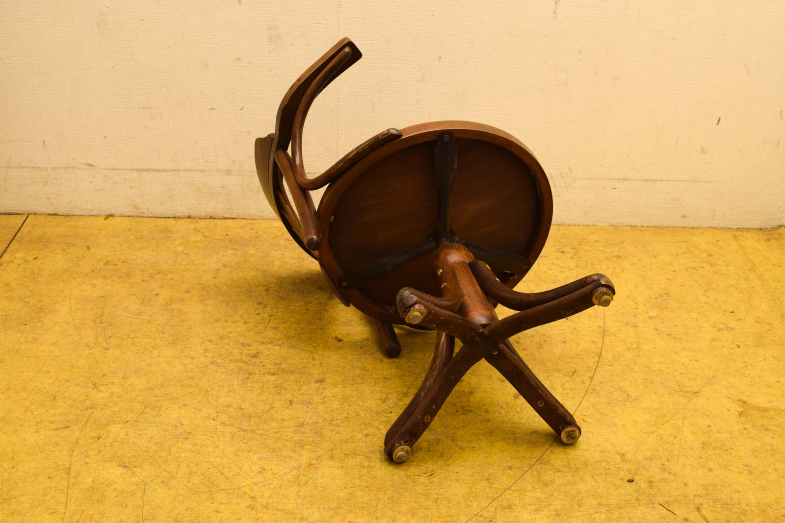 de bureaustoel kan draaien heeft armleuningen de bureaustoel is gebruikt en heeft gebruikssporen wiebelt de zitvlak heeft een opening zie foto gemeten met leunings breed 64 cm