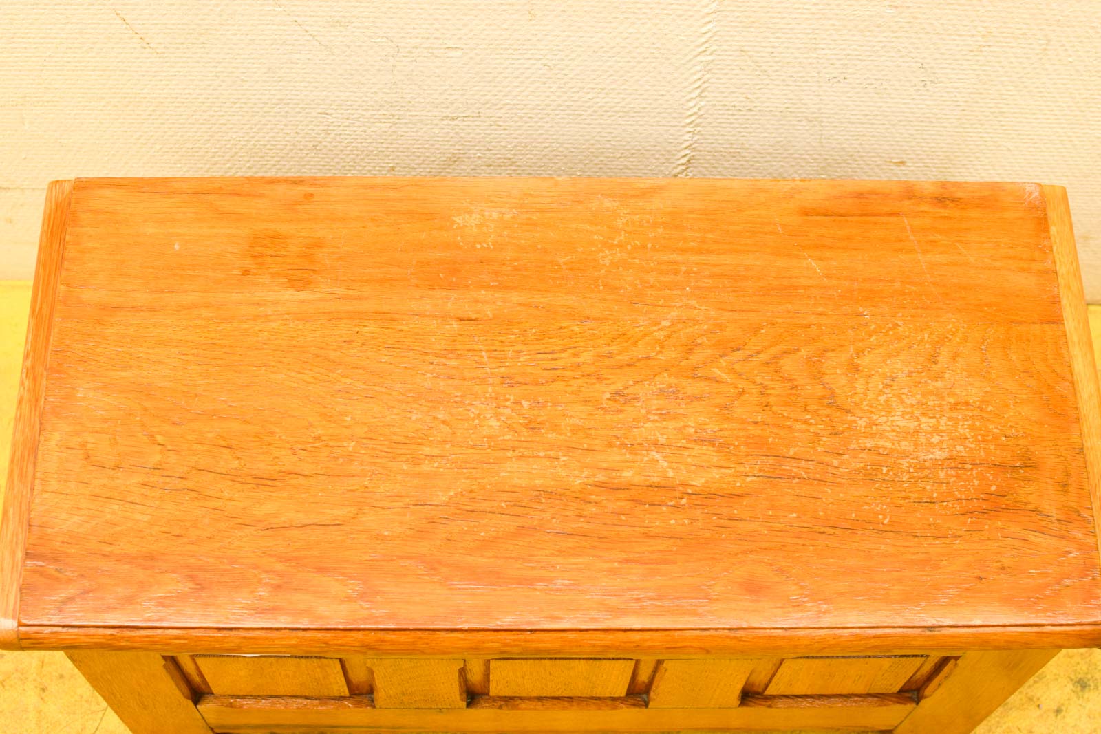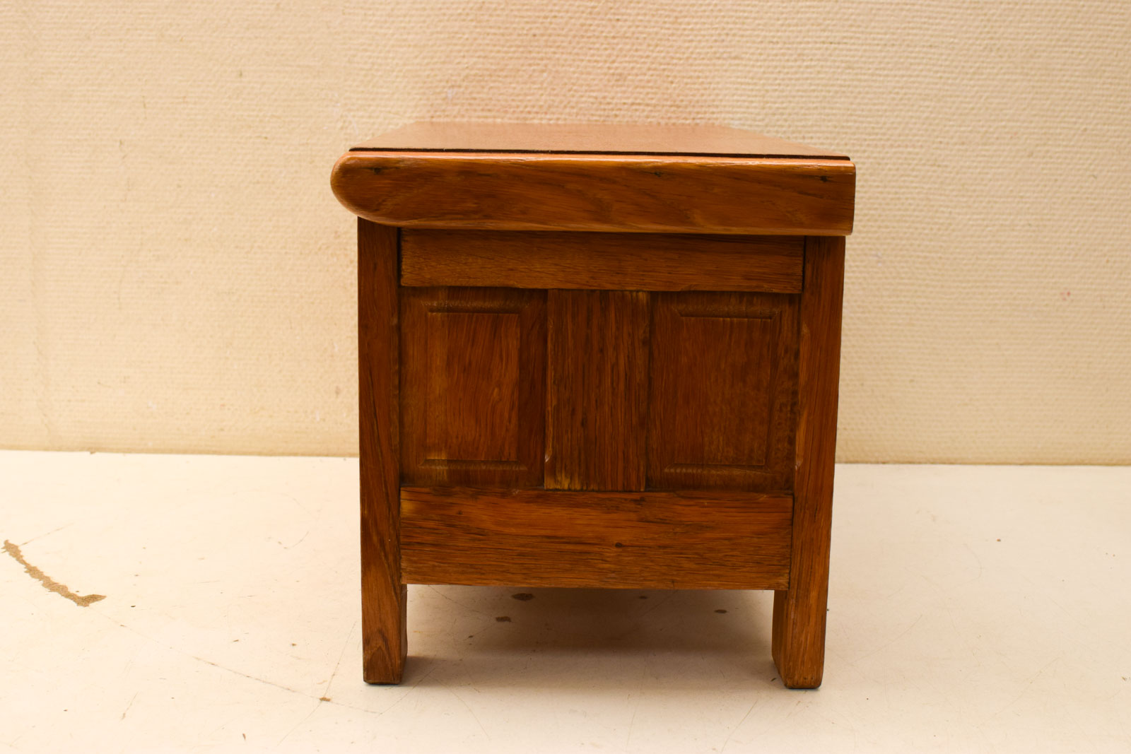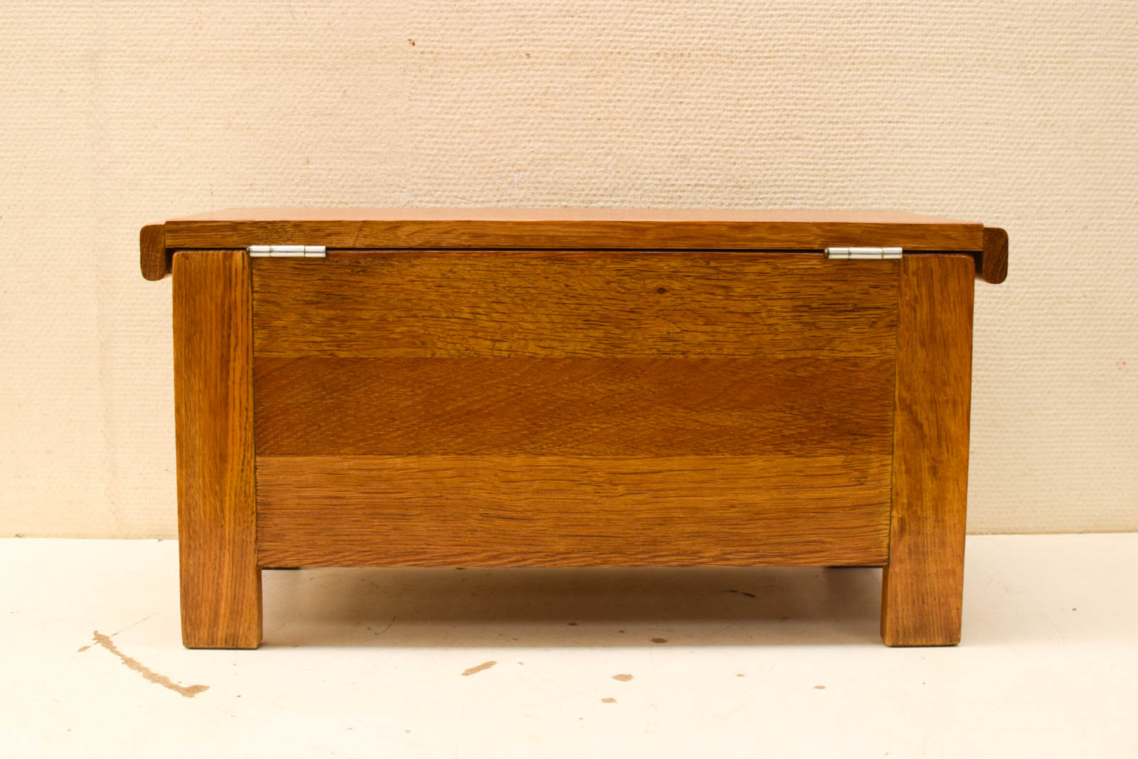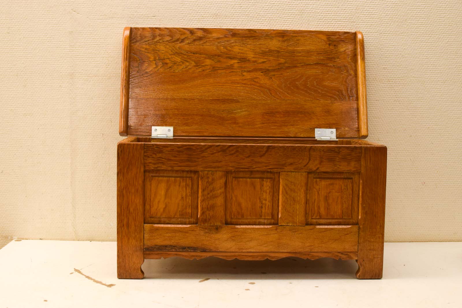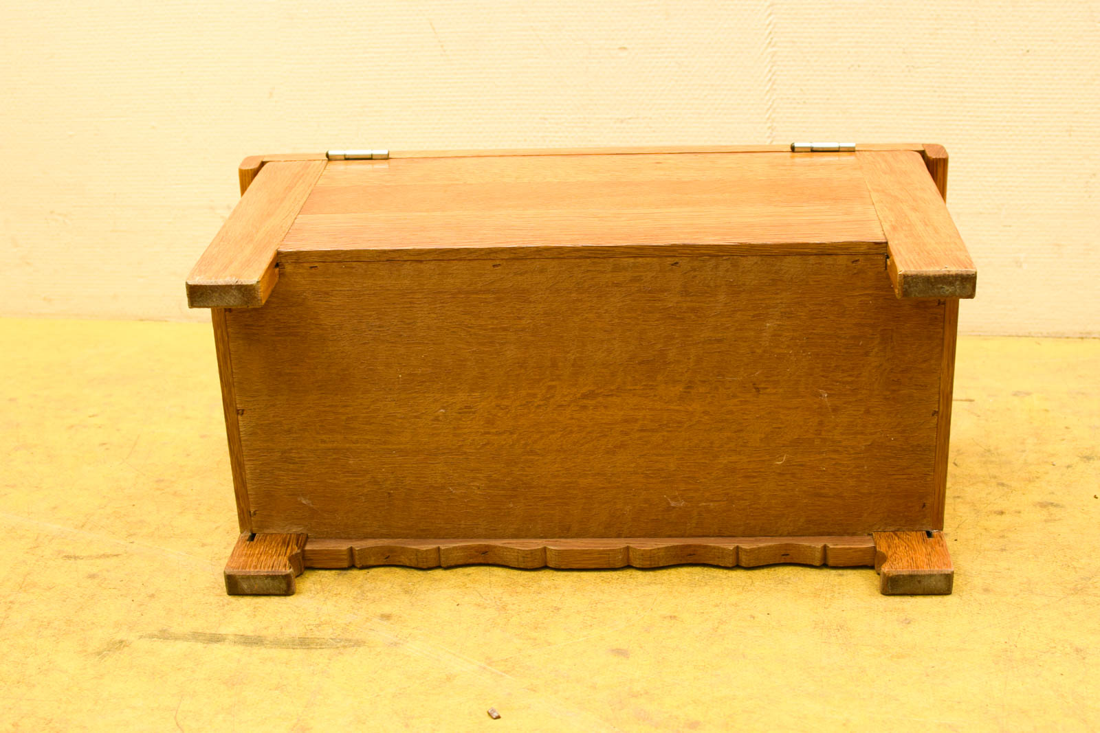 breed 59,5 cm diepte 27 cm hoog 30 cm de kist is gebruikt en heeft gebruikssporen een zwarte vlek aan de voorkant maar is heel en ziet er nog redelijk uit binnenmaat van de kist breed 50 cm diepte 21 cm hoog 20,5 cm