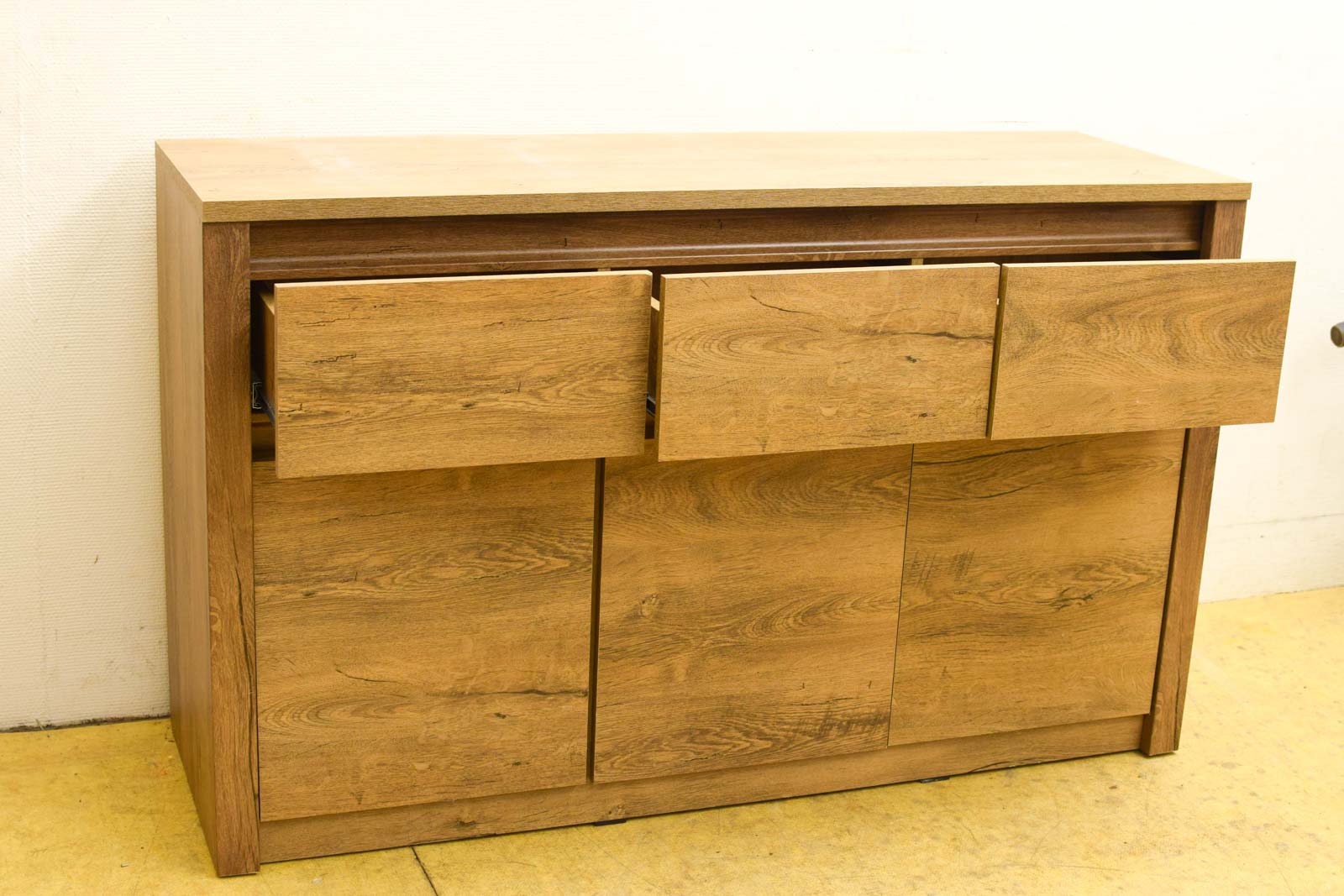 met 3 lades en 3 deurtjes de ladekast ziet er nog redelijk uit diepte 43,5 cm