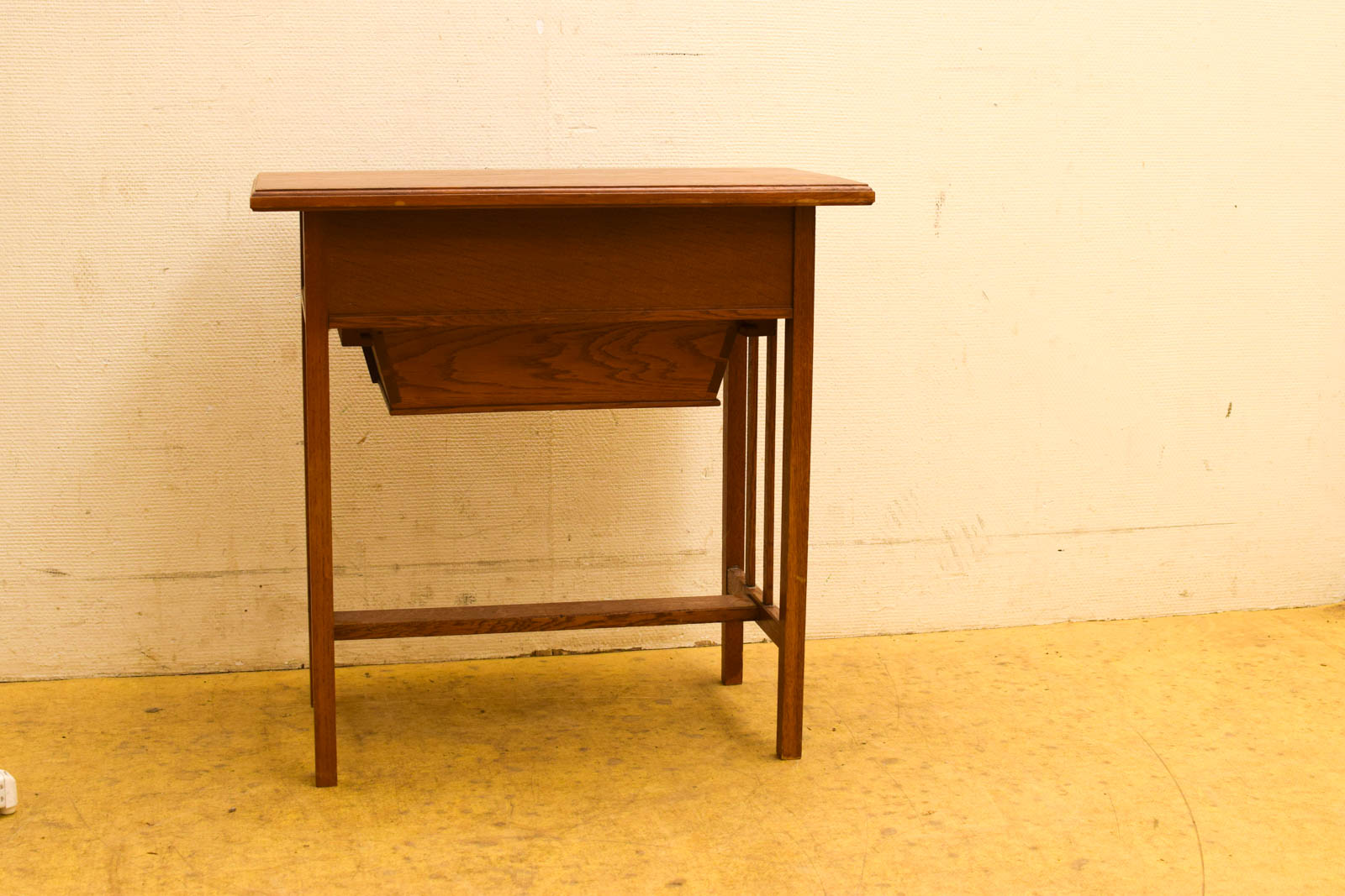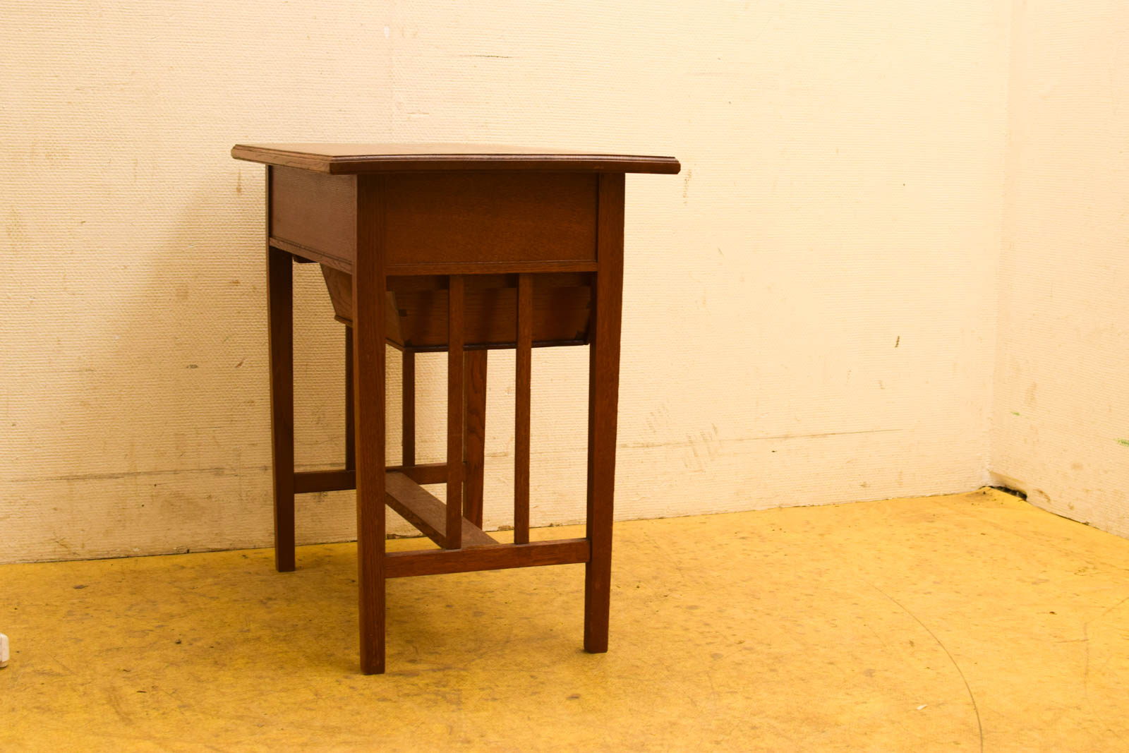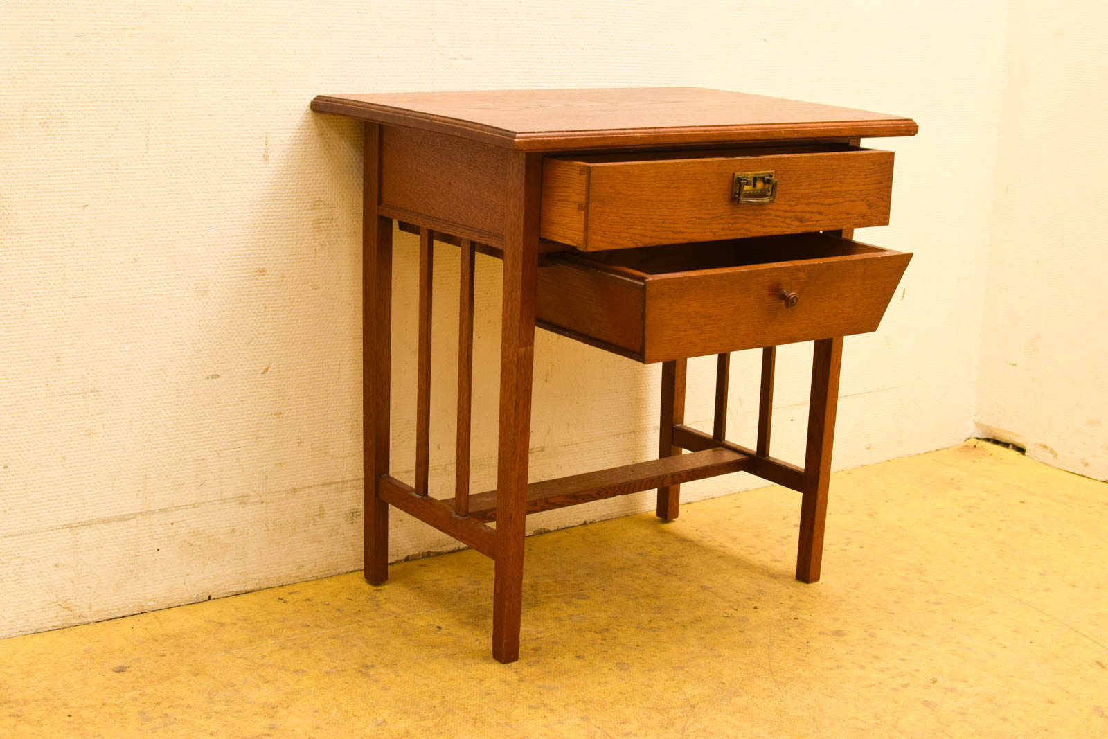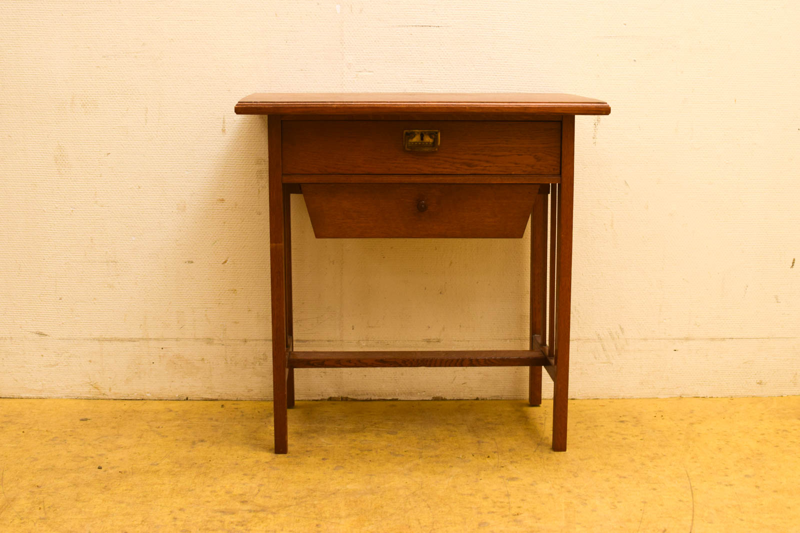 de onderste binnenmaat van de lade gemeten breed 33 cm diepte 22 cm hoog 10 cm de naaitafel heeft vochtkringen en krassen op het bovenblad de naaitafel is gebruikt is wankel is geen sleutel bij