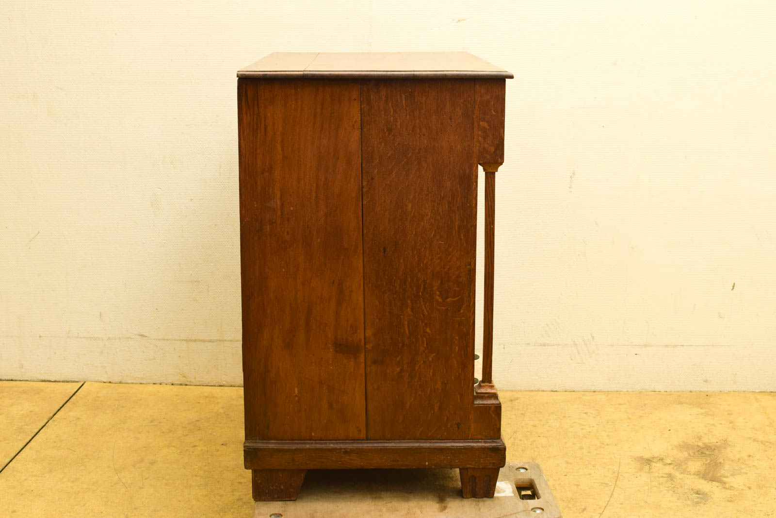 is geen sleutel bij heeft 4 lades met verschillende binnenmaten de kast heeft gebruikssporen wordt verkocht zonder de hondjes