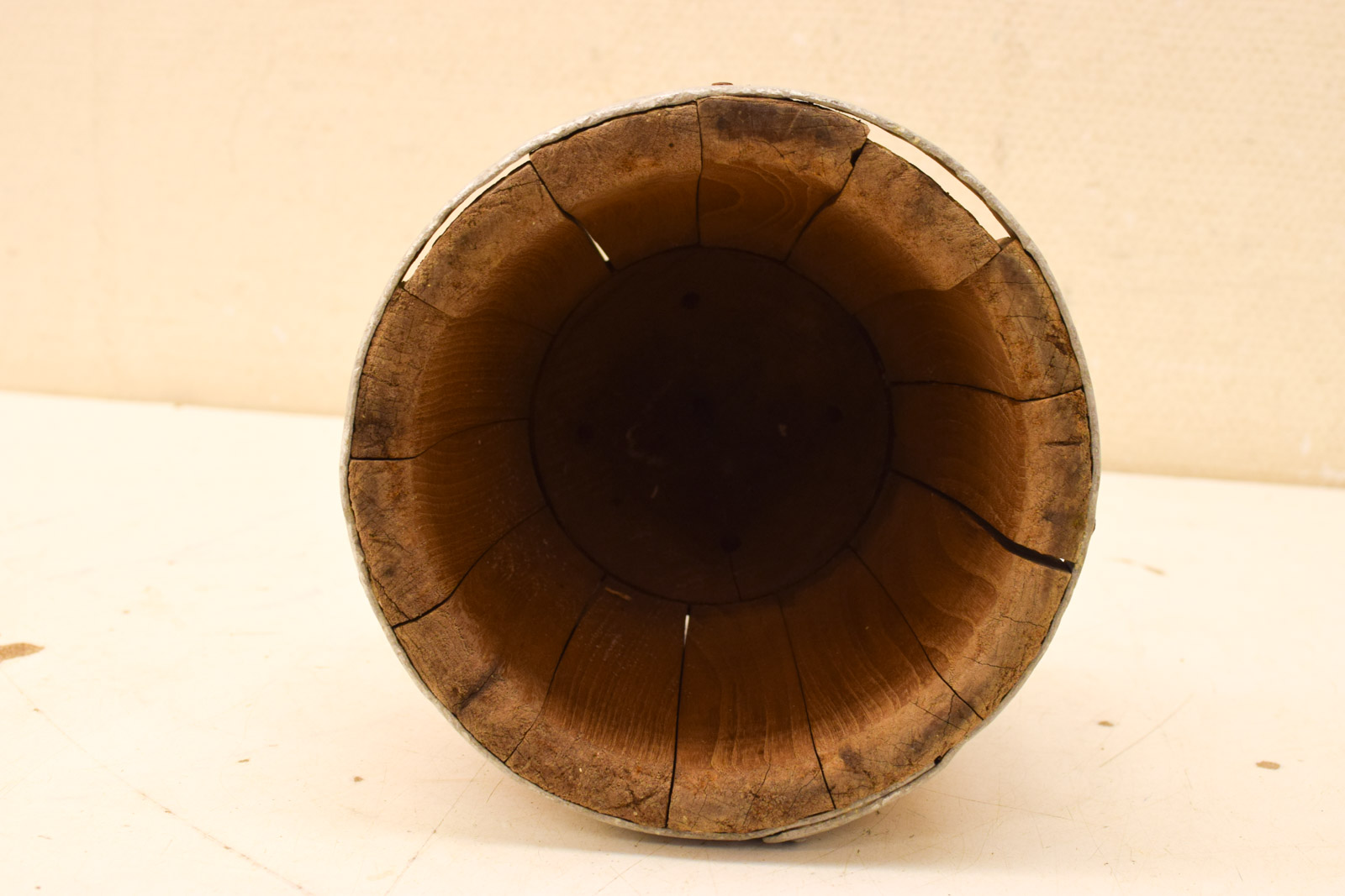de kaasmal is gebruikt en heeft gebruikssporen en roestplekjes diameter bovenkant 19,5 cm hoog 19 cm