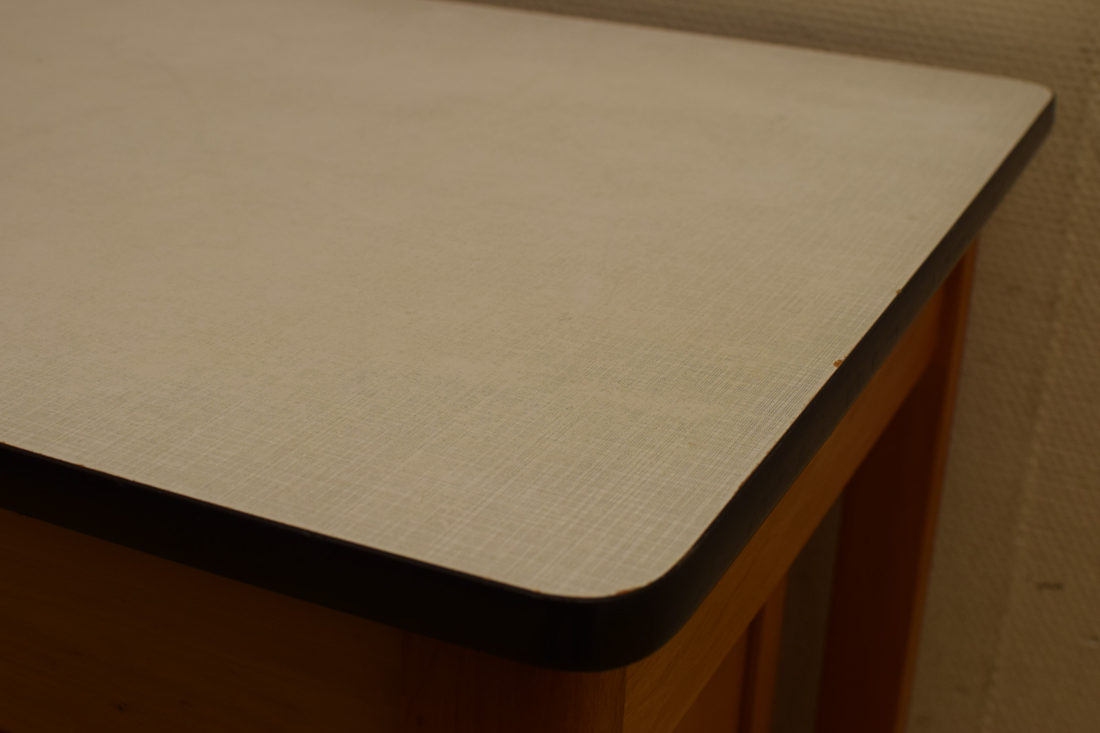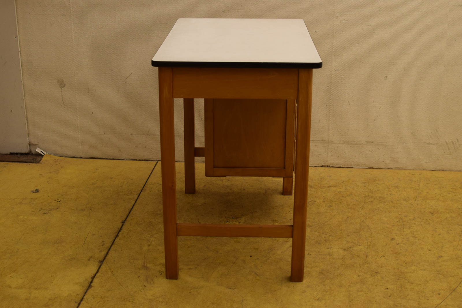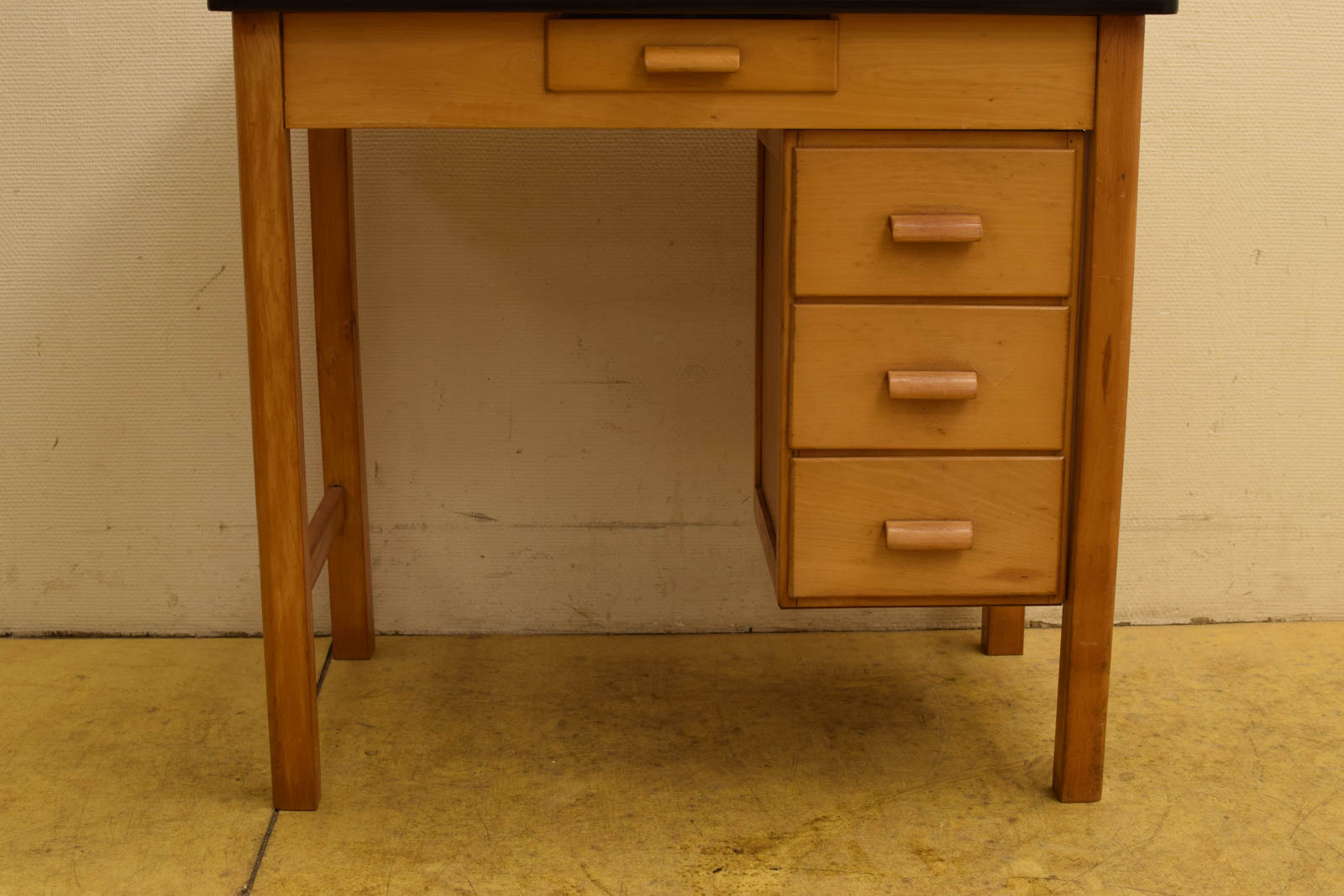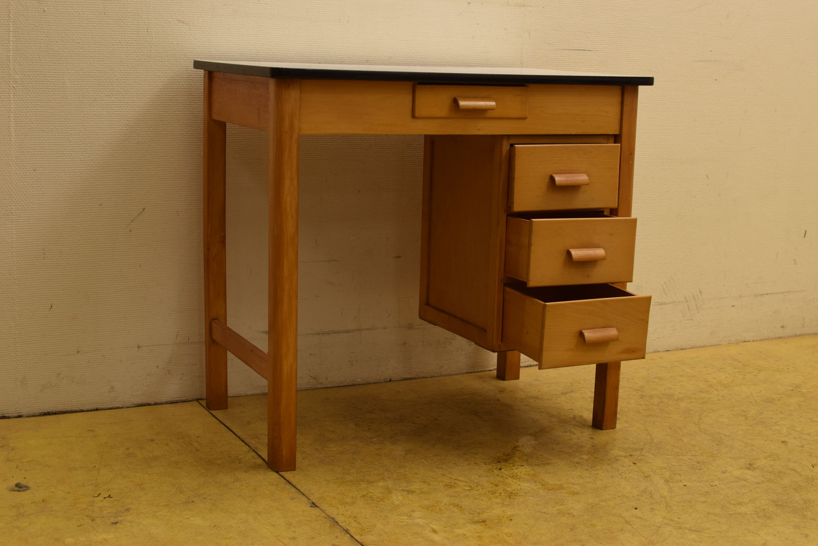 de bovenblad heeft krassen slijtage en vlekken door het gebruik de bureau heeft gebruikssporen de Bureau heeft 4 laatjes