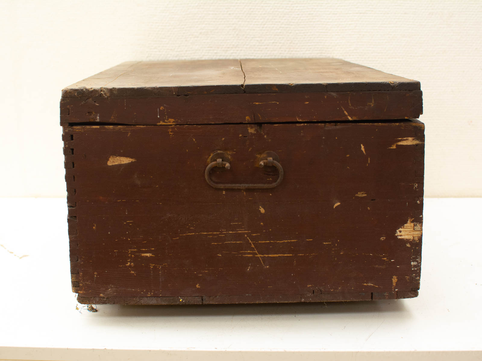 zit geen sleutel bij de kist gaat moeilijk dicht binnenmaat kist breed67 cm diepte 39 cm hoog 20 cm de kist heeft gebruiksporen