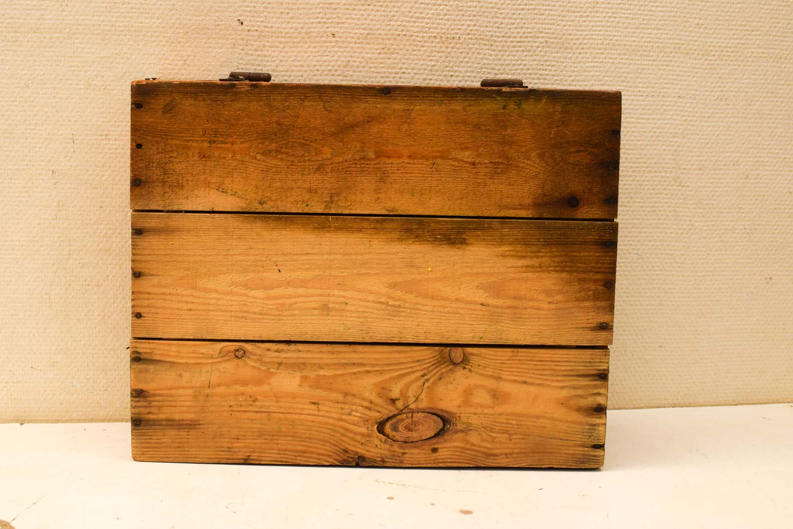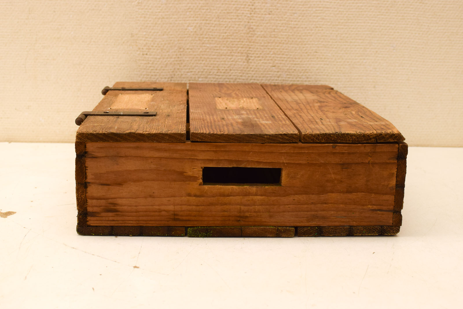 binnenmaat van de kist breed 43,5 cm diepte 34,5 cm hoog 9,5 cm de kist is gebruikt