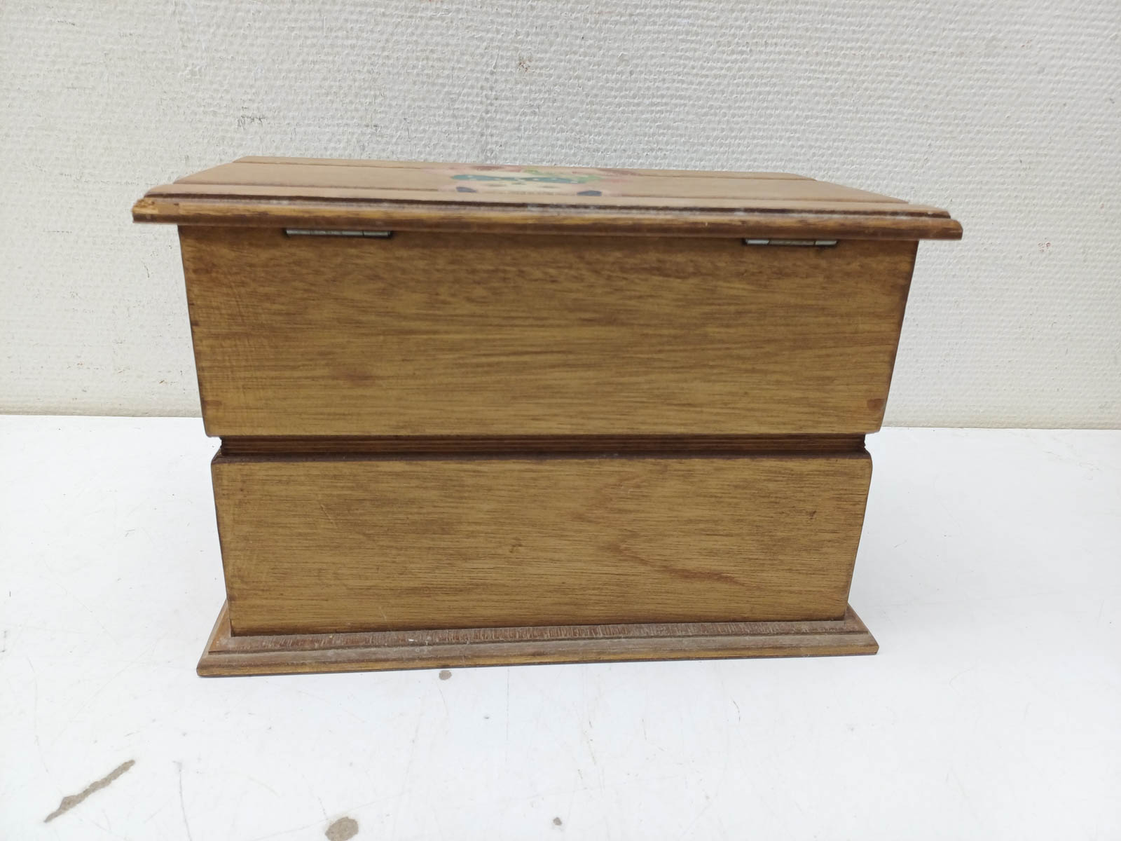 de kist heeft geen slot en sleutel de kist heeft gebruikssporen breed 32,5 cm diepte 18.5 cm