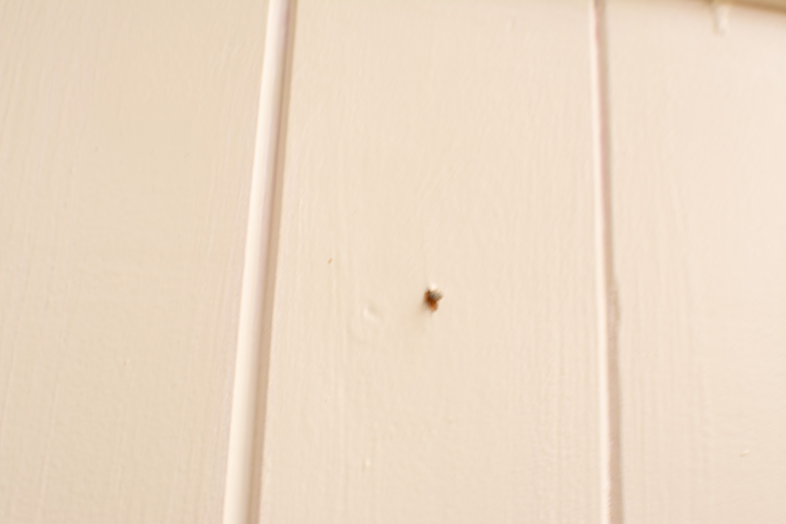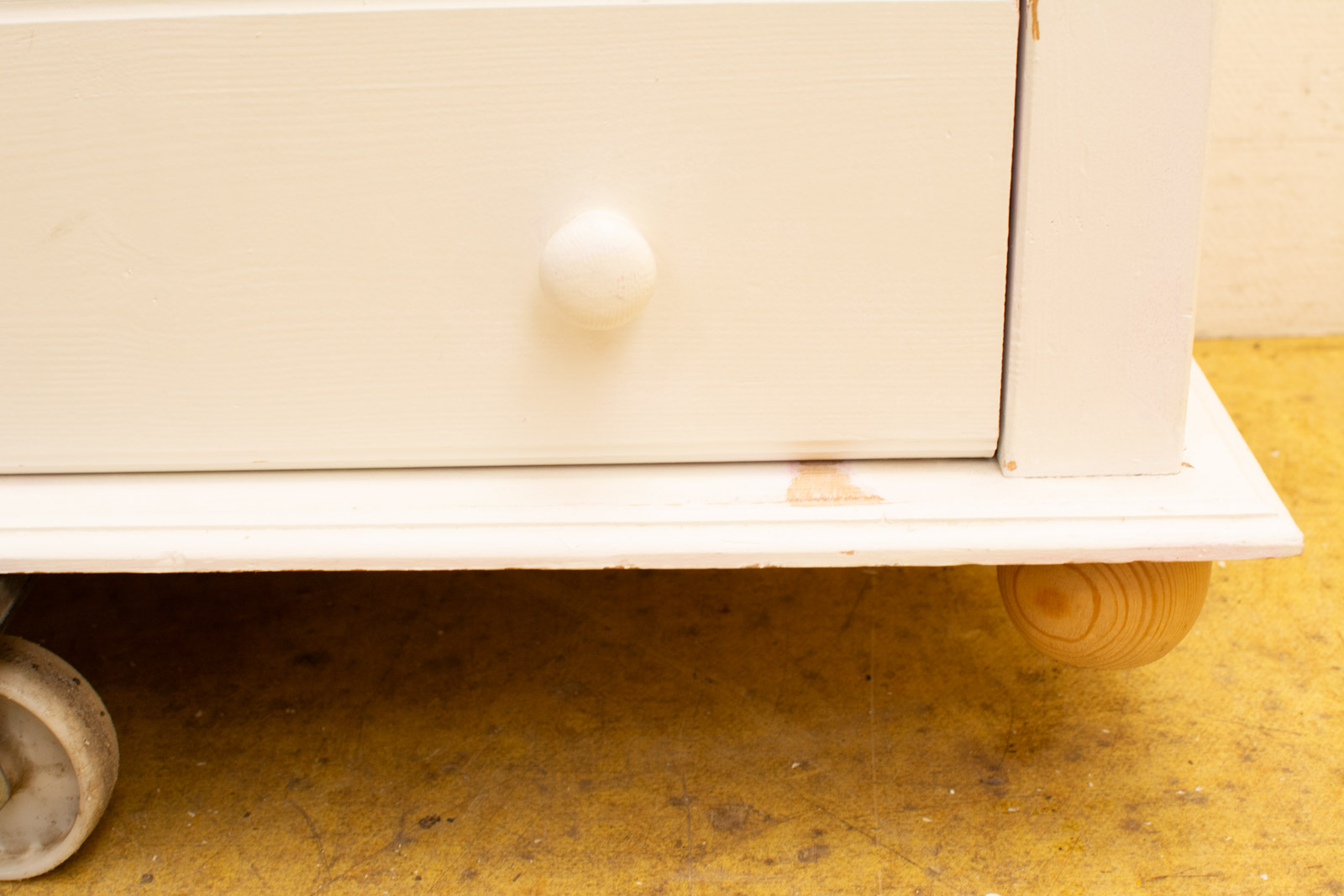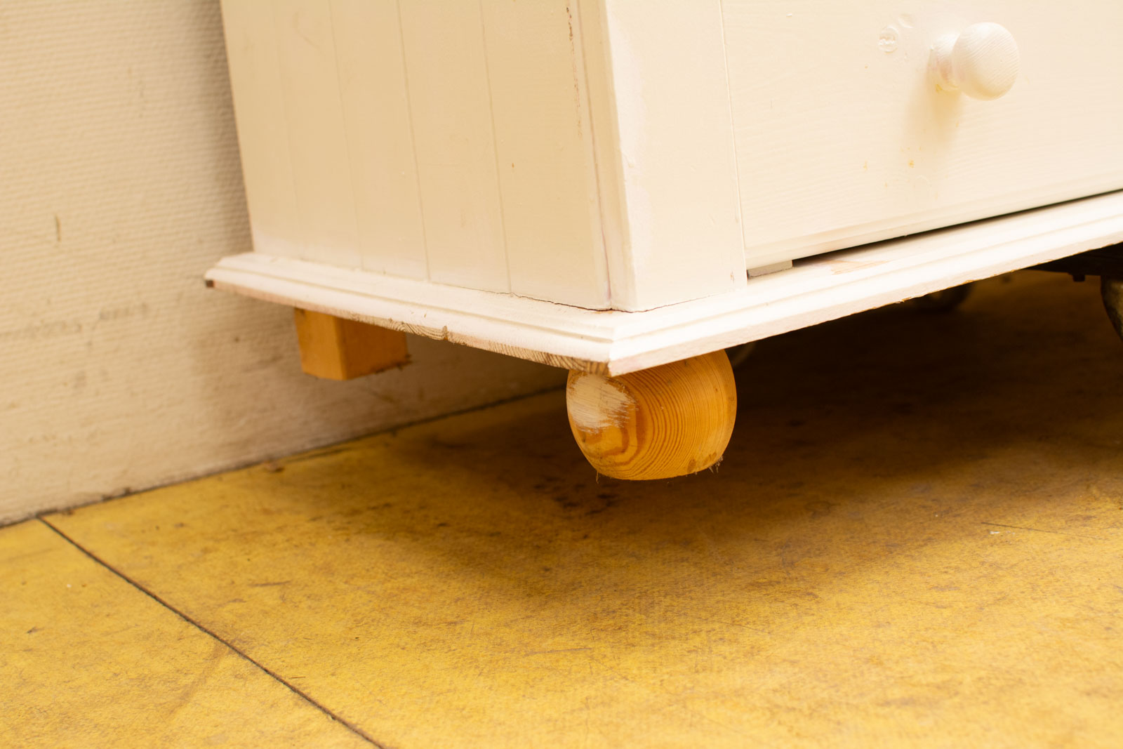 de kast is wit geverfd heeft posters op de achterwand de kast heeft een leg en hang gedeelte