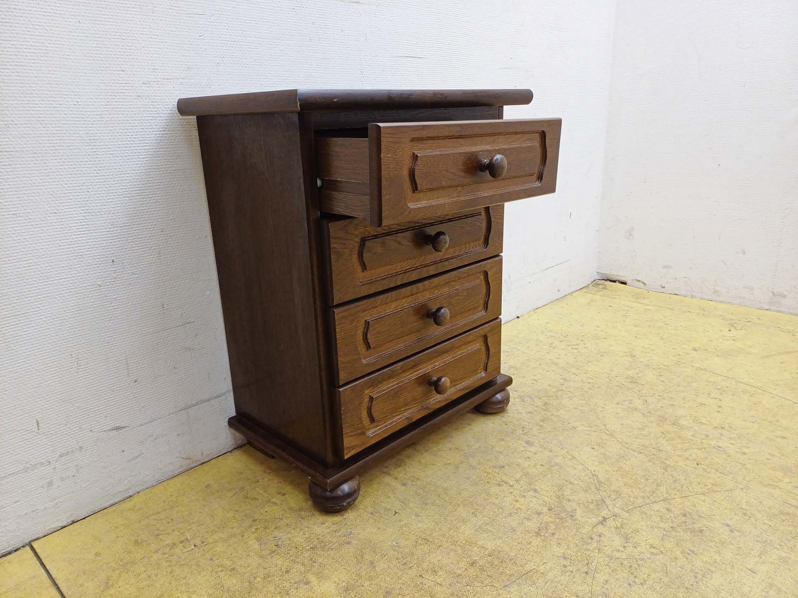 ladekasten heeft krassen en gebruikssporen maar is nog heel en stevig