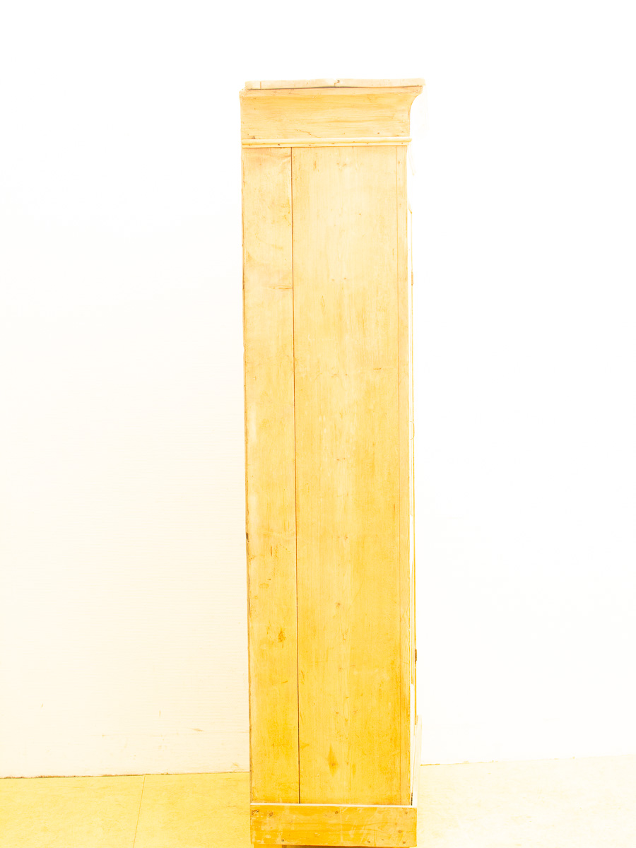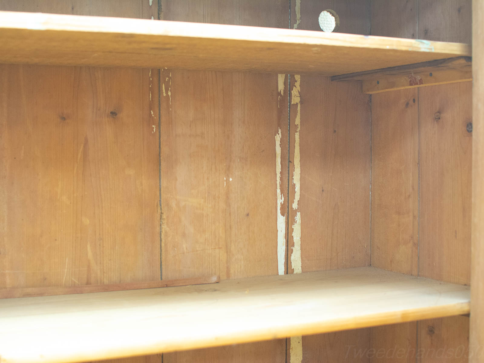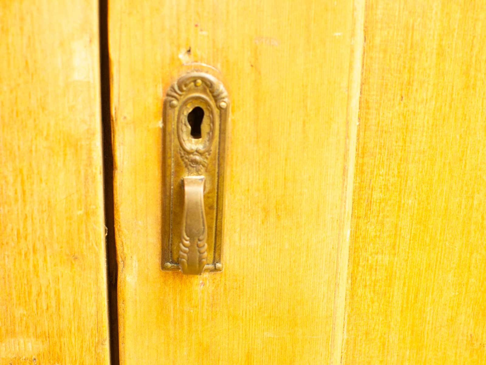 het deurtje gaat moeilijk open een plankje zit los in de deur de kast heeft houtworm maar verder ziet het er landelijk uit zit geen sleutel bij