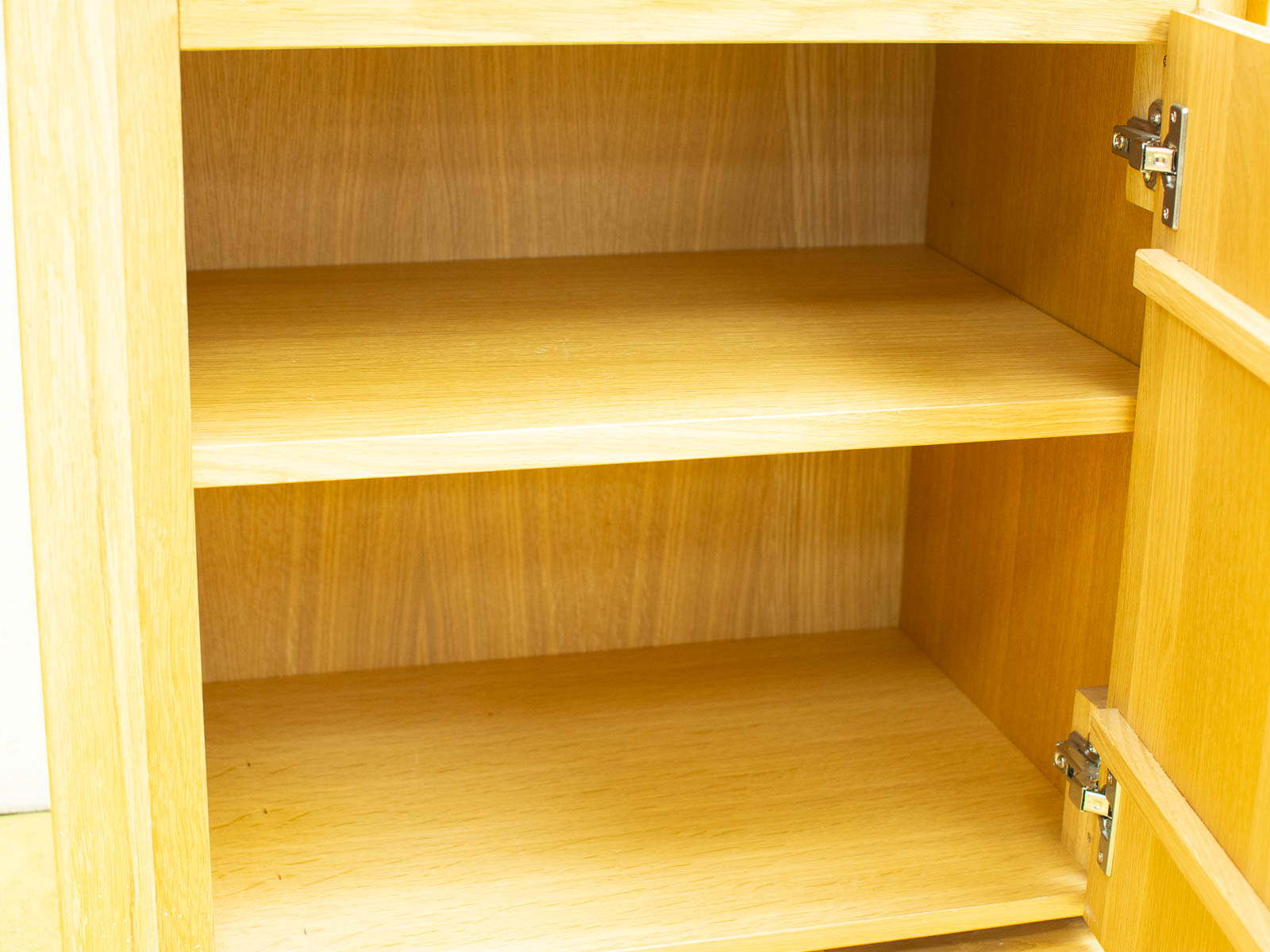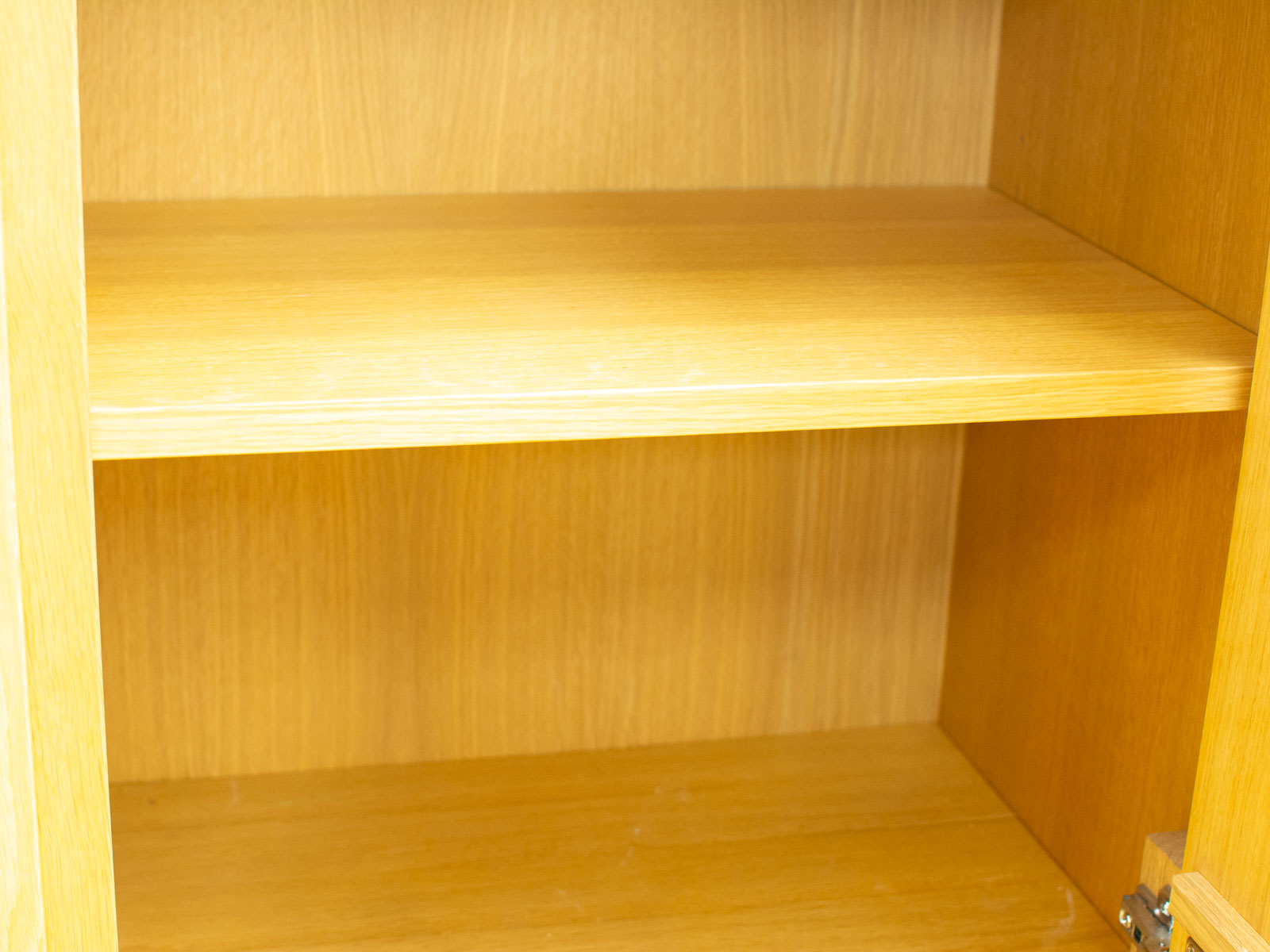 de kast ziet er nog goed uit de bovenblad van de kast heeft 2 lichte kringen
