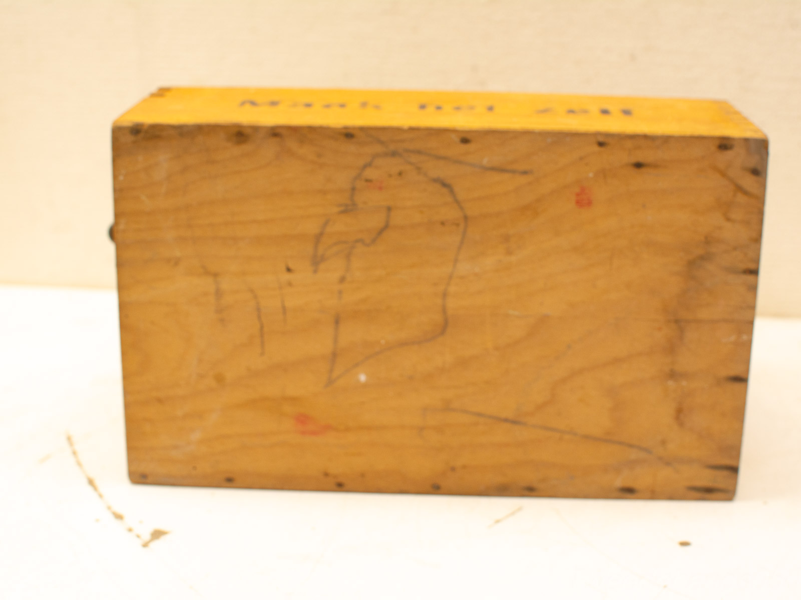 aan de bovenkant is 1 dekseltje beschadigd het zelf kistje is gebruikt