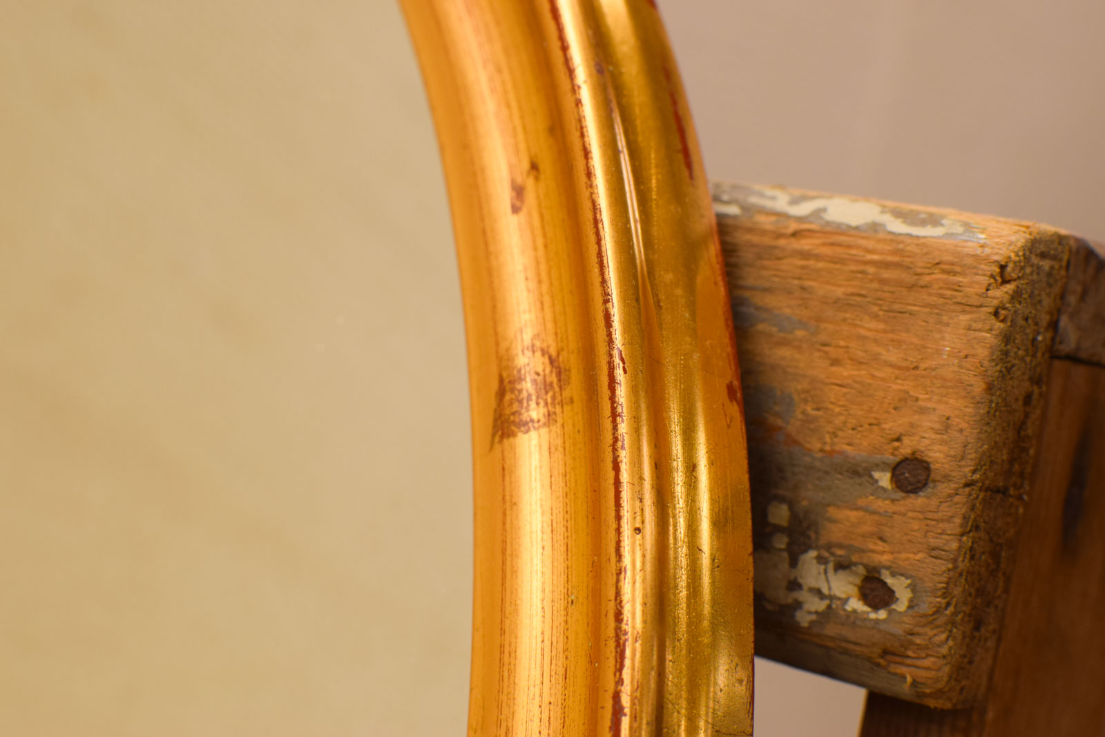 de lijst van de spiegel heeft gebruikssporen van het verf de spiegel heeft krassen