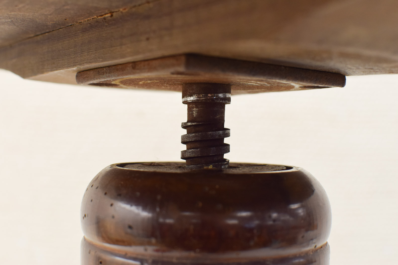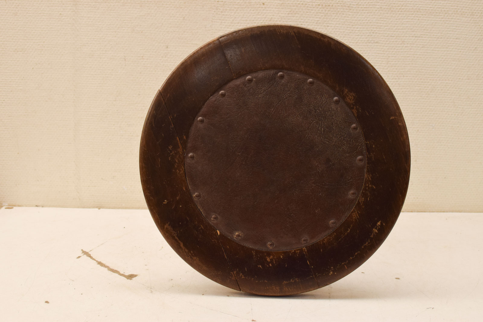 de kruk heeft draaischijf om de zitvlak te draaien en hoger te zetten de kruk heeft gaatjes en gebruikssporen