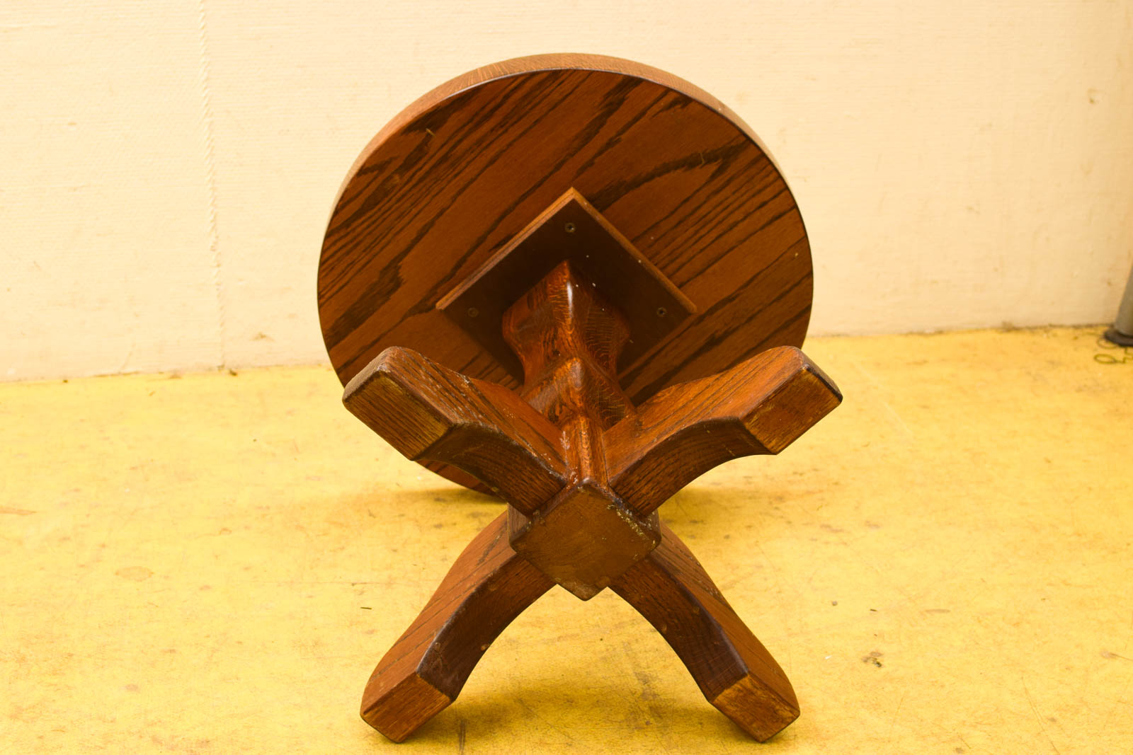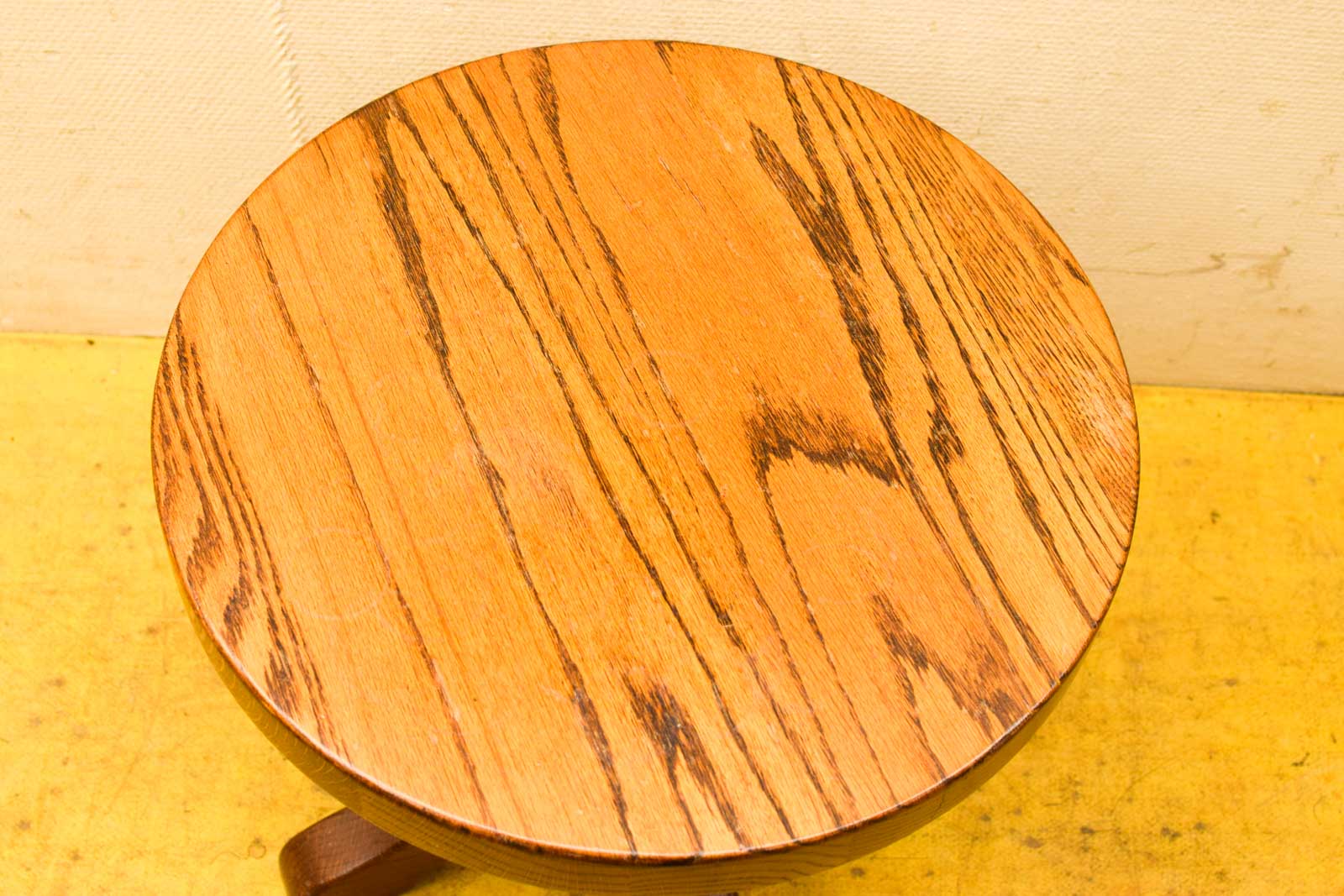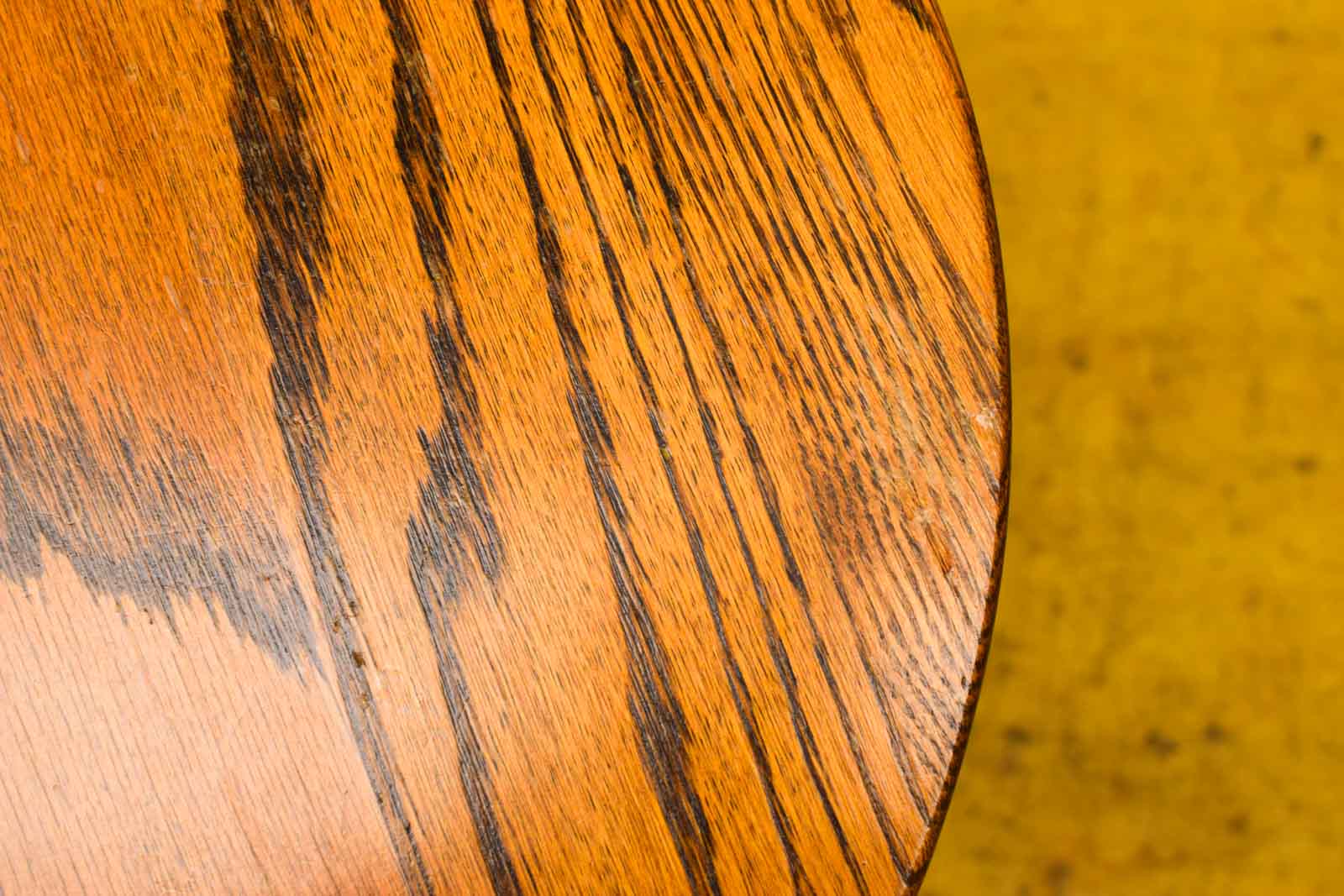 de bovenblad van het tafeltje heeft lichte krasjes en een vlek zie foto de tafel heeft gebruikssporen maar is nog heel en ziet er nog redelijk uit