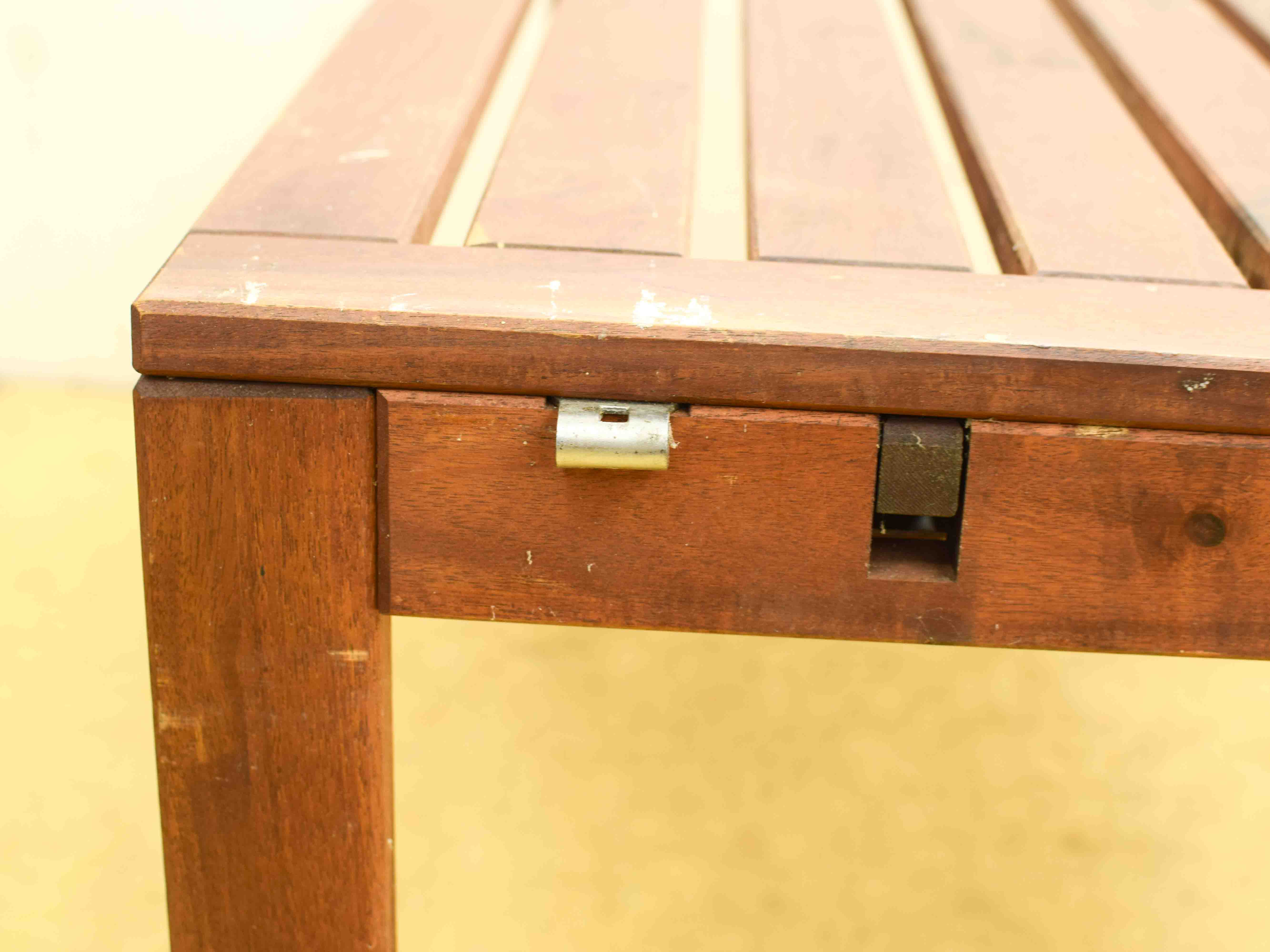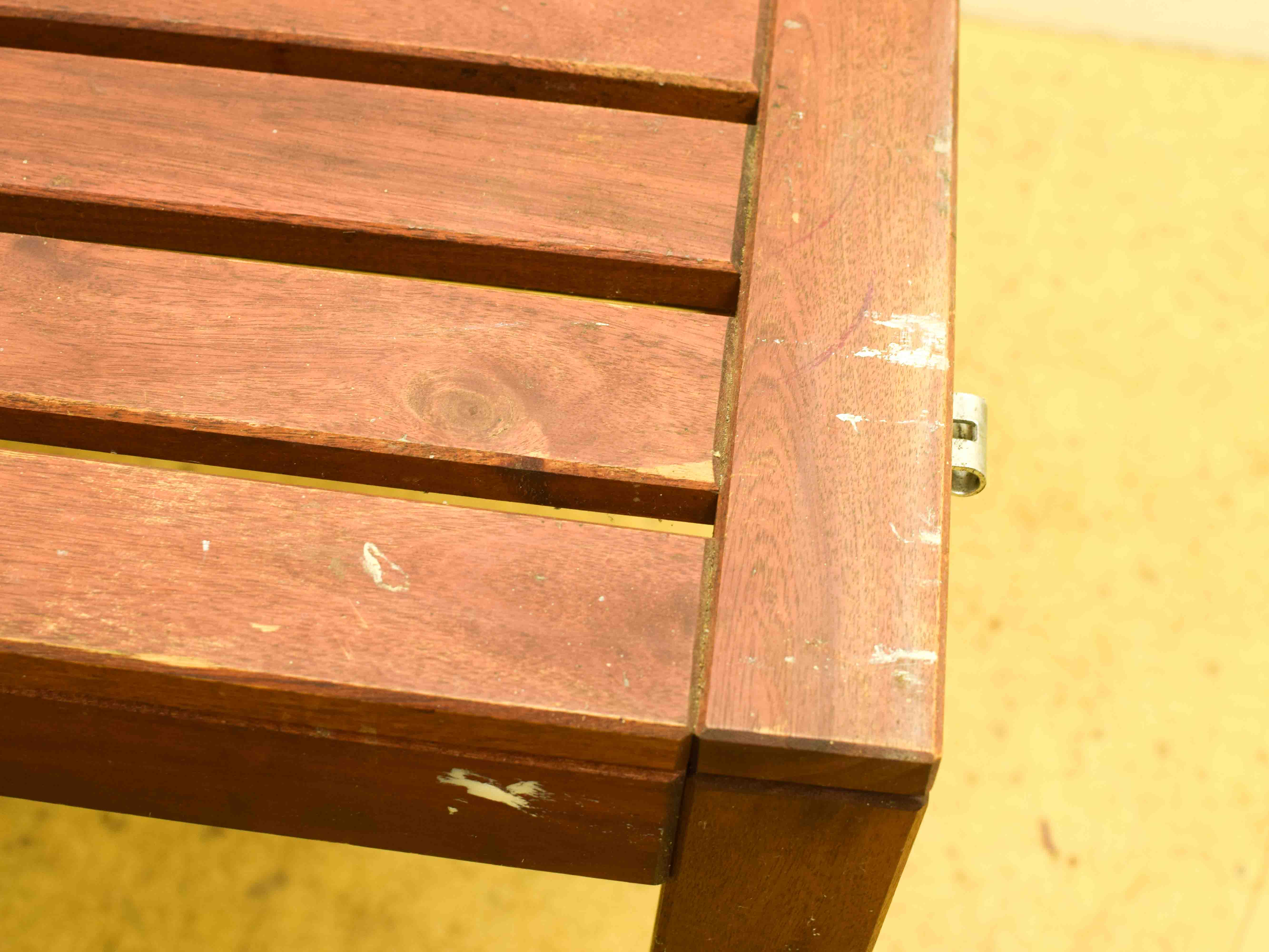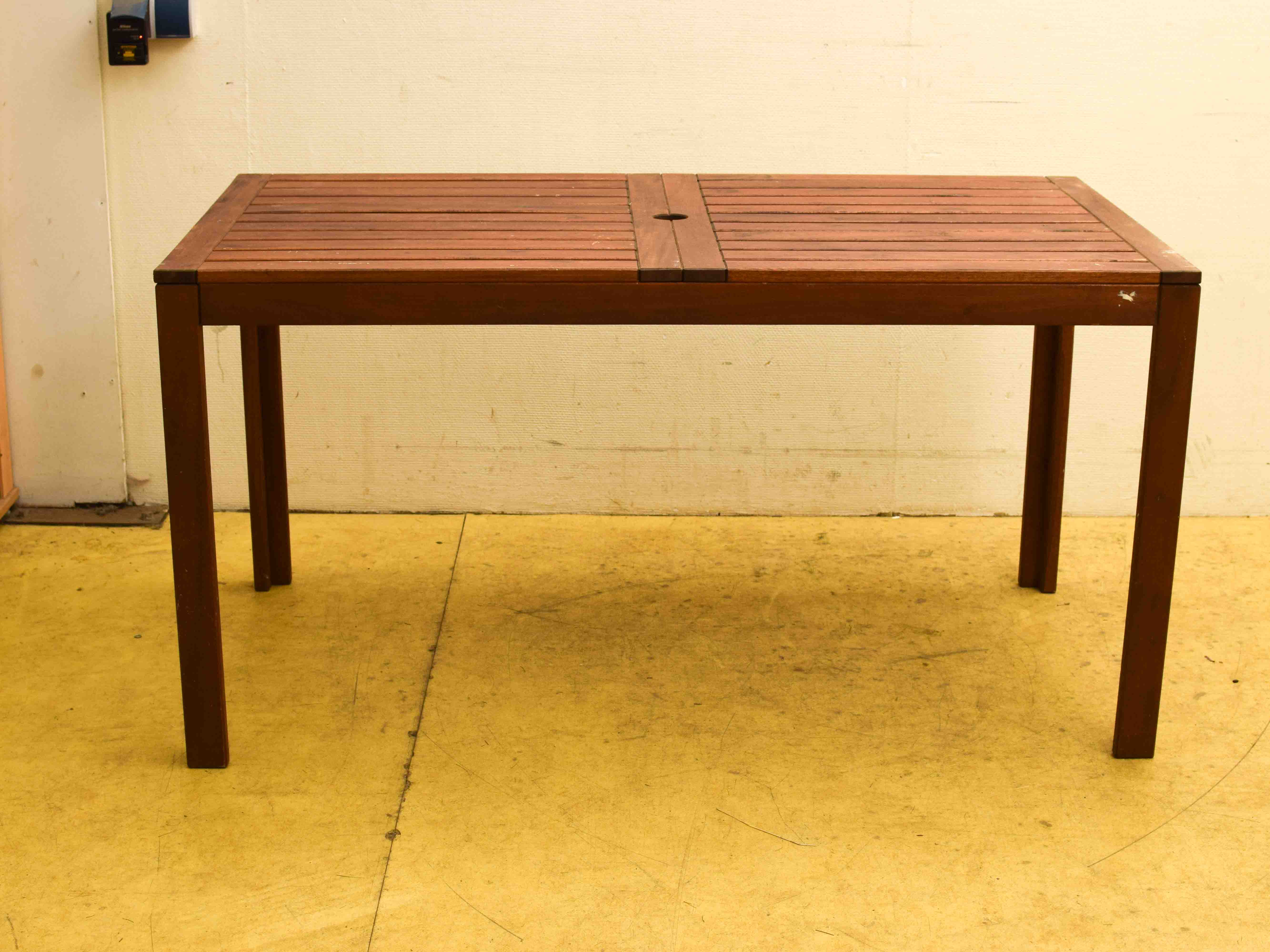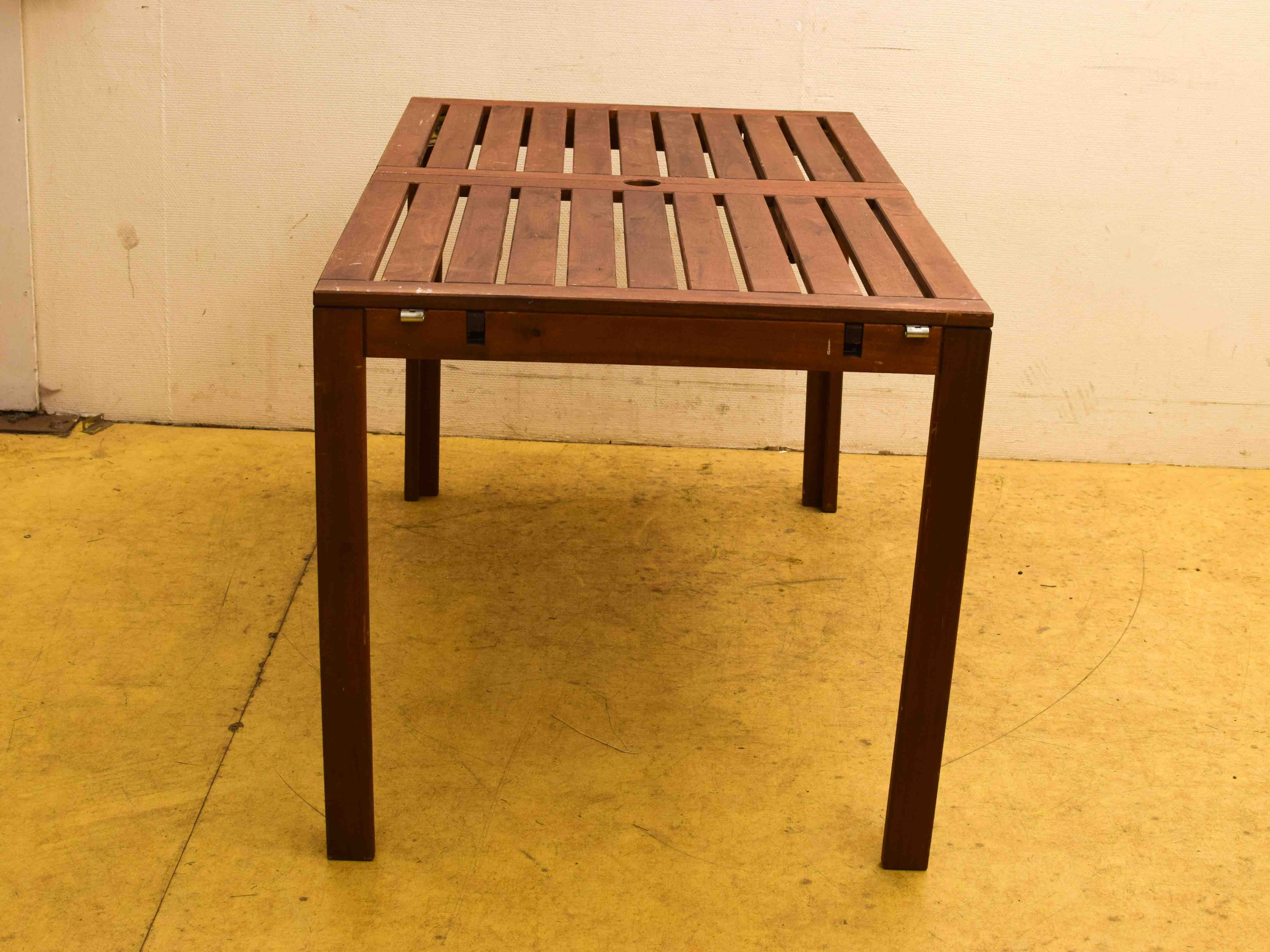 helemaal uitgeklapt 260 cm er zit een gat in het midden voor een parasol de tuintafel heeft verfresten zie fotos diepte 76,5 cm
