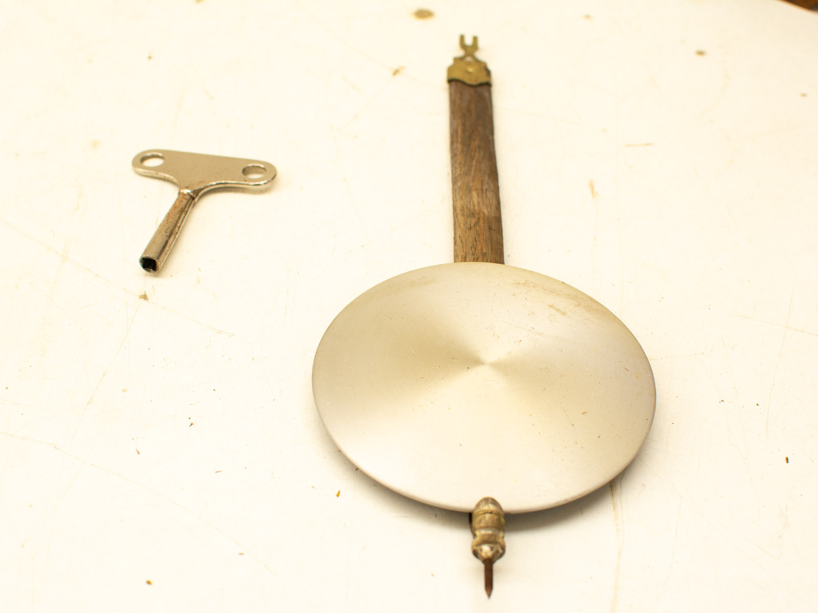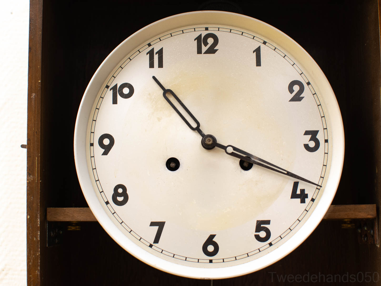 zit een sleutel en slinger bij de klok is loop of sloop breed 33,5 cm