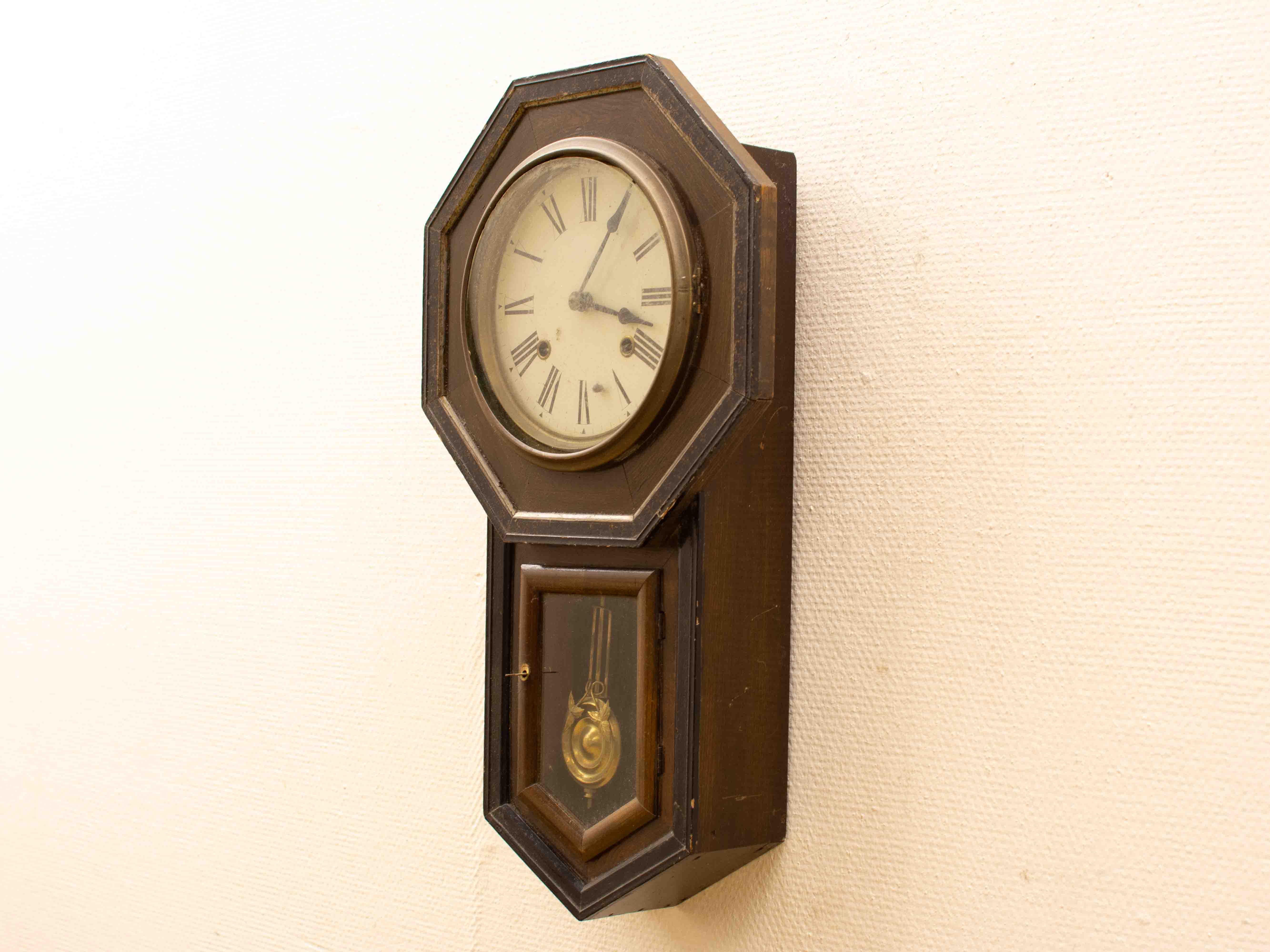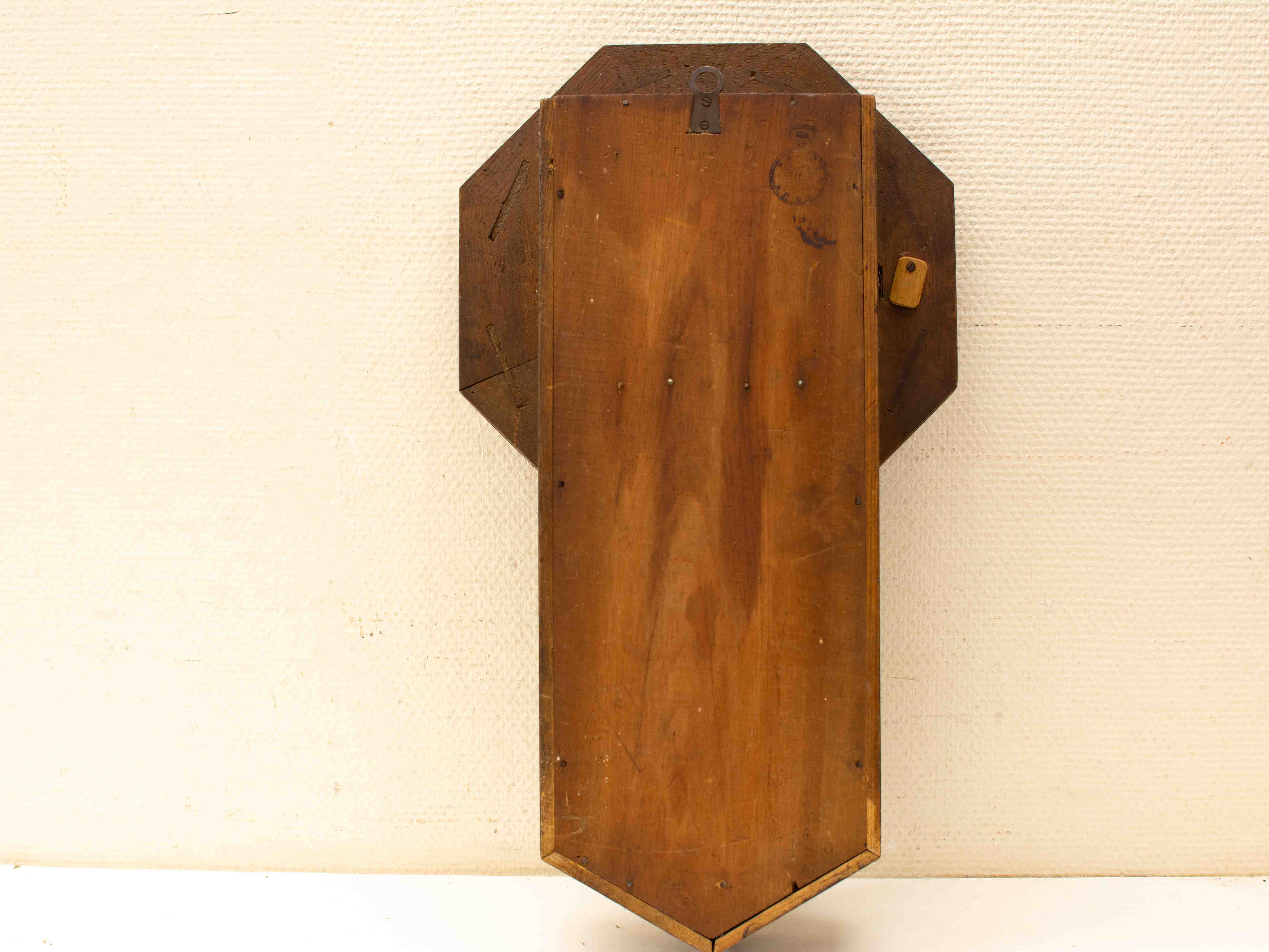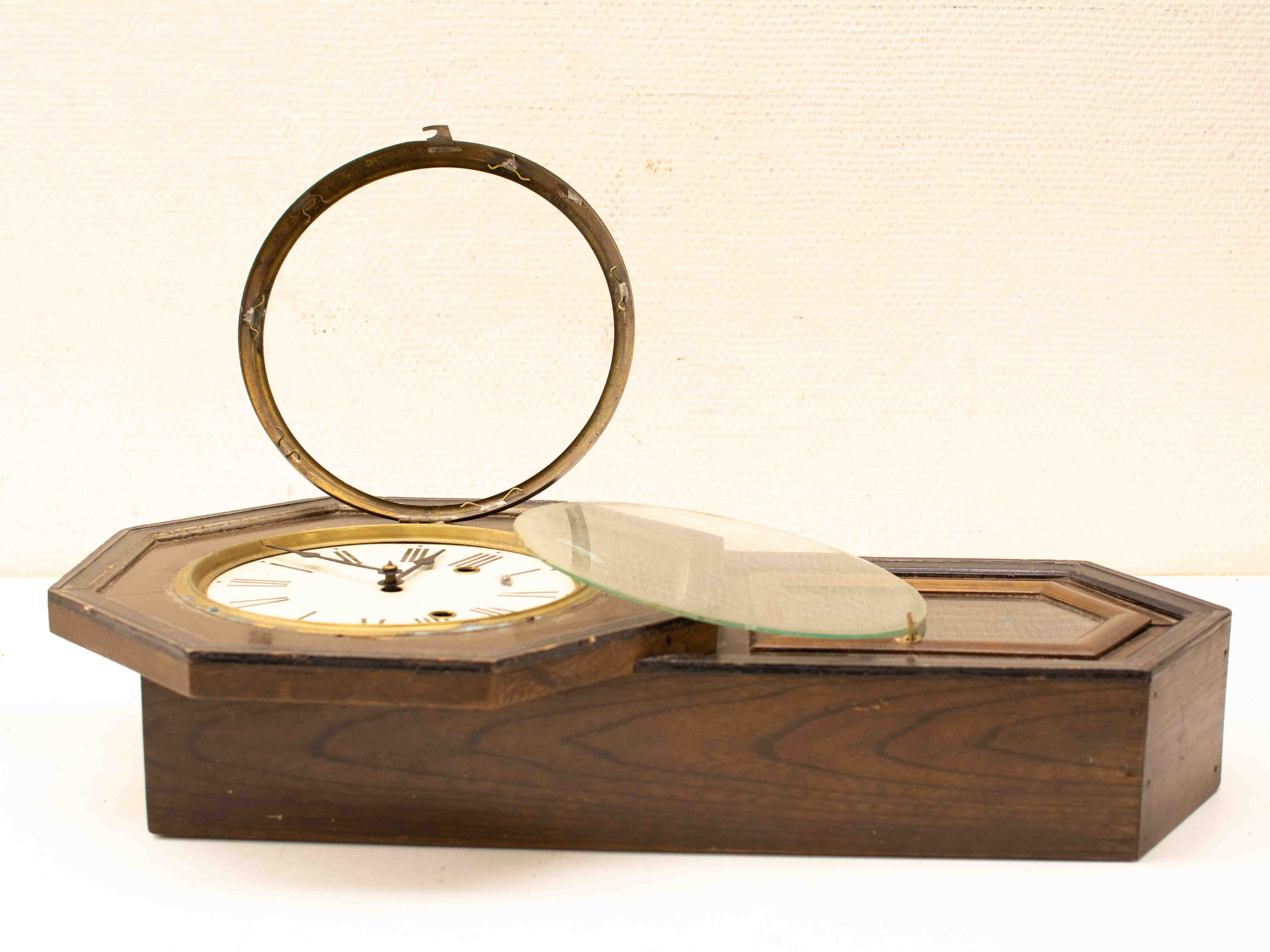 de klok heeft gebruikerssporen het raampje is los zie foto de klok is loop of sloop lang 55,5 cm diepte 10,5 cm