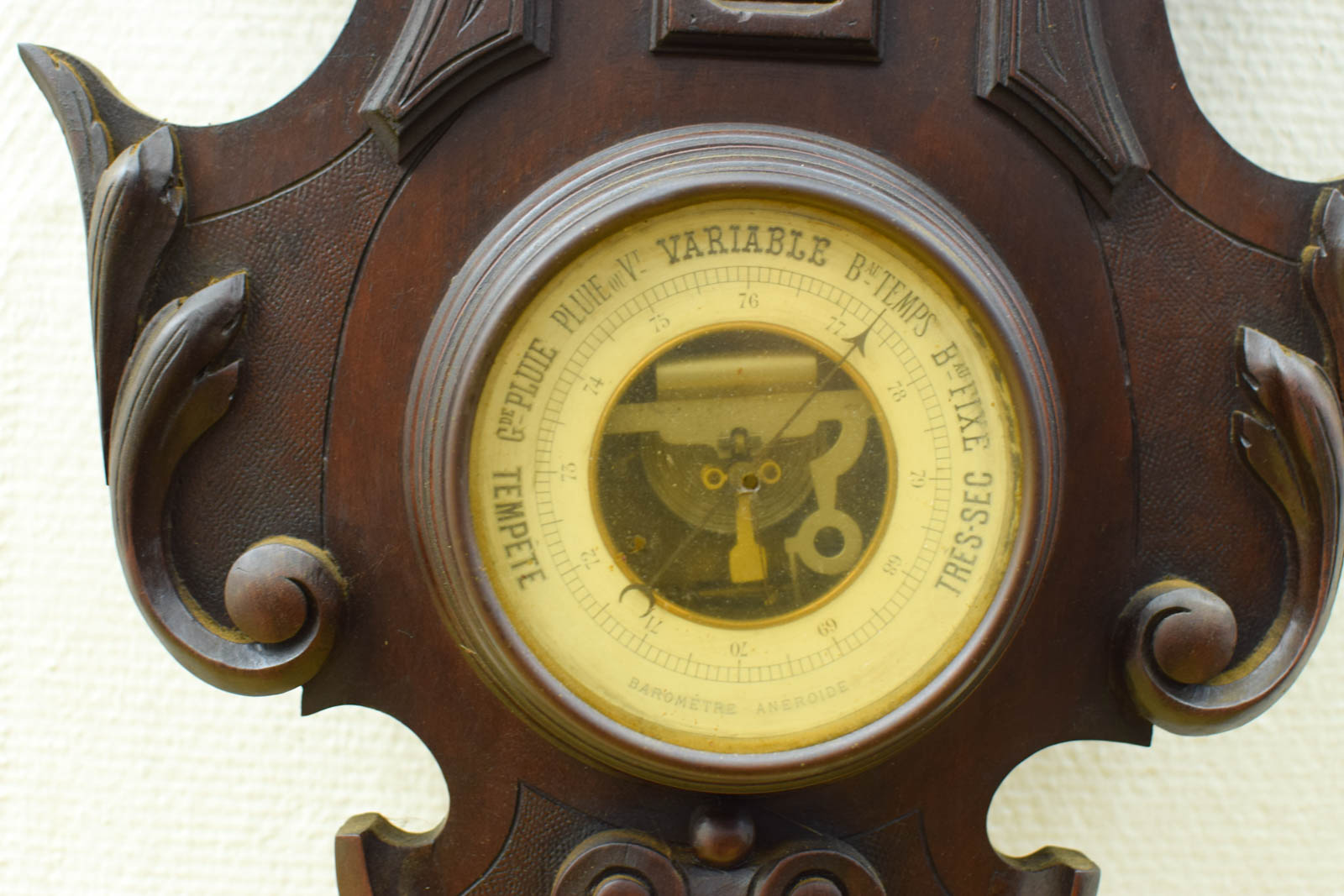 met barometer maar de barometer is stuk er mist een stukje hout zie foto de klok is loop of sloop