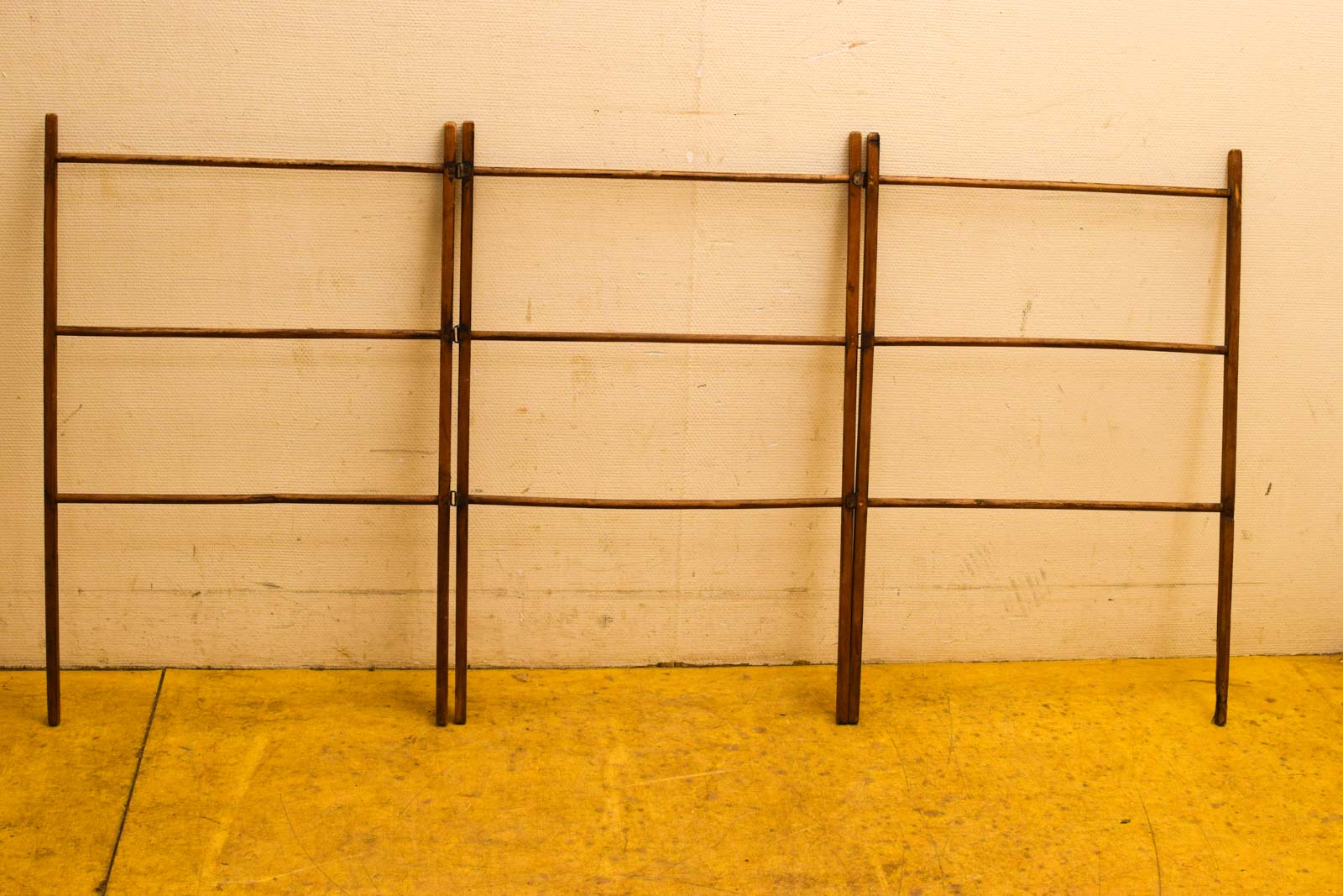 is gebruikt maar nog heel makkelijk inklapbaar uit elkaar is de wasrek breedte 182 cm het hout heeft gebruik sporen slijtage maar is verder nog heel