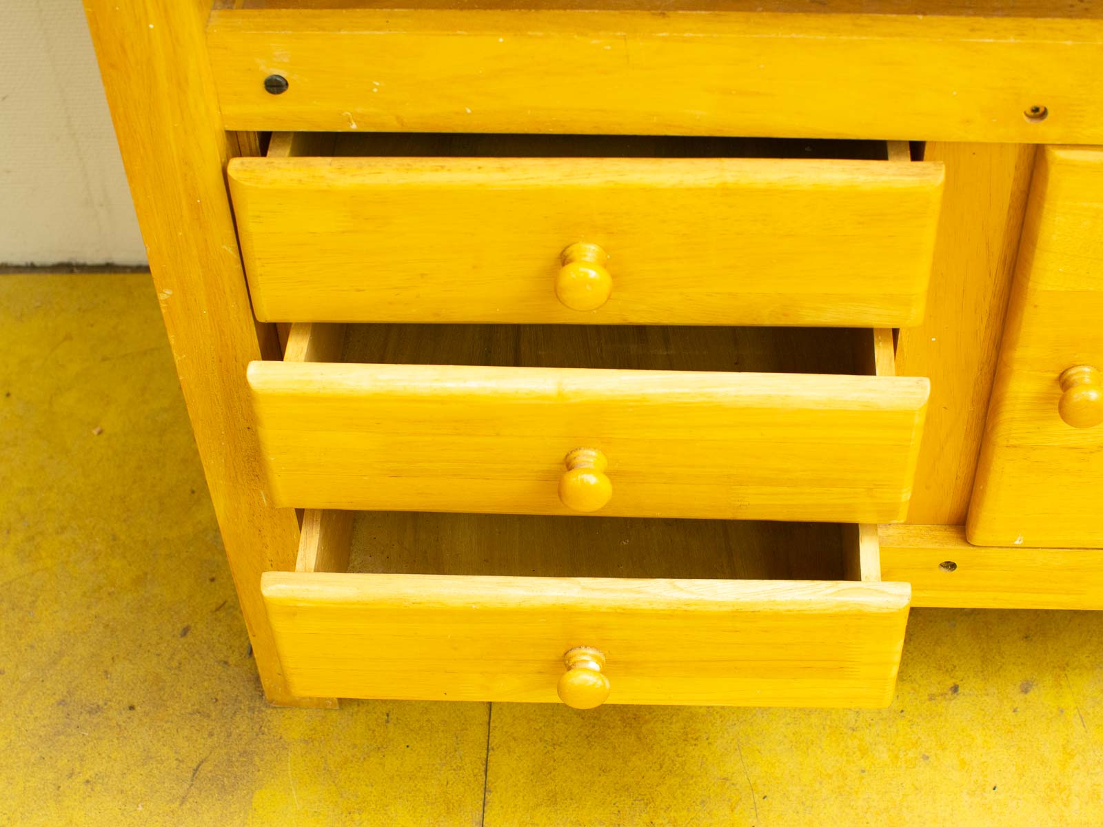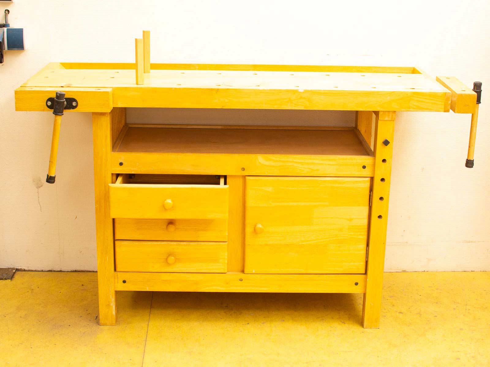 ziet er nog goed uit de werkbank heeft 3 laatjes binnenmaat breed 33 cm diepte 32 cm hoog 8,5 cm het kastje breed 47 cm diepte 39 cm hoog 45 cm