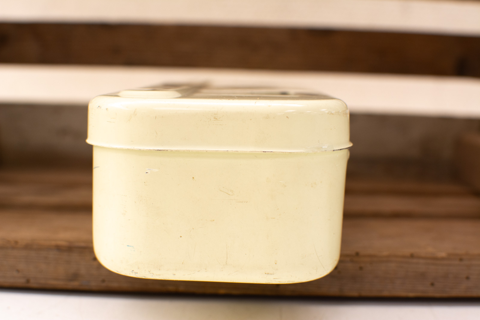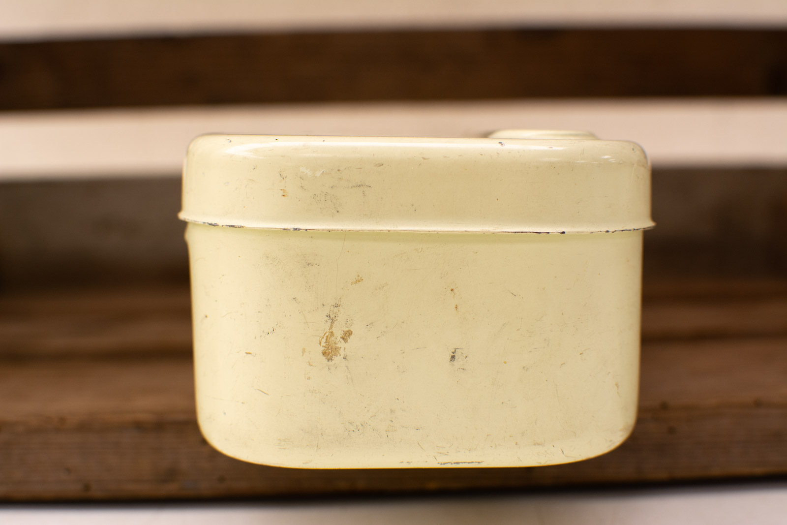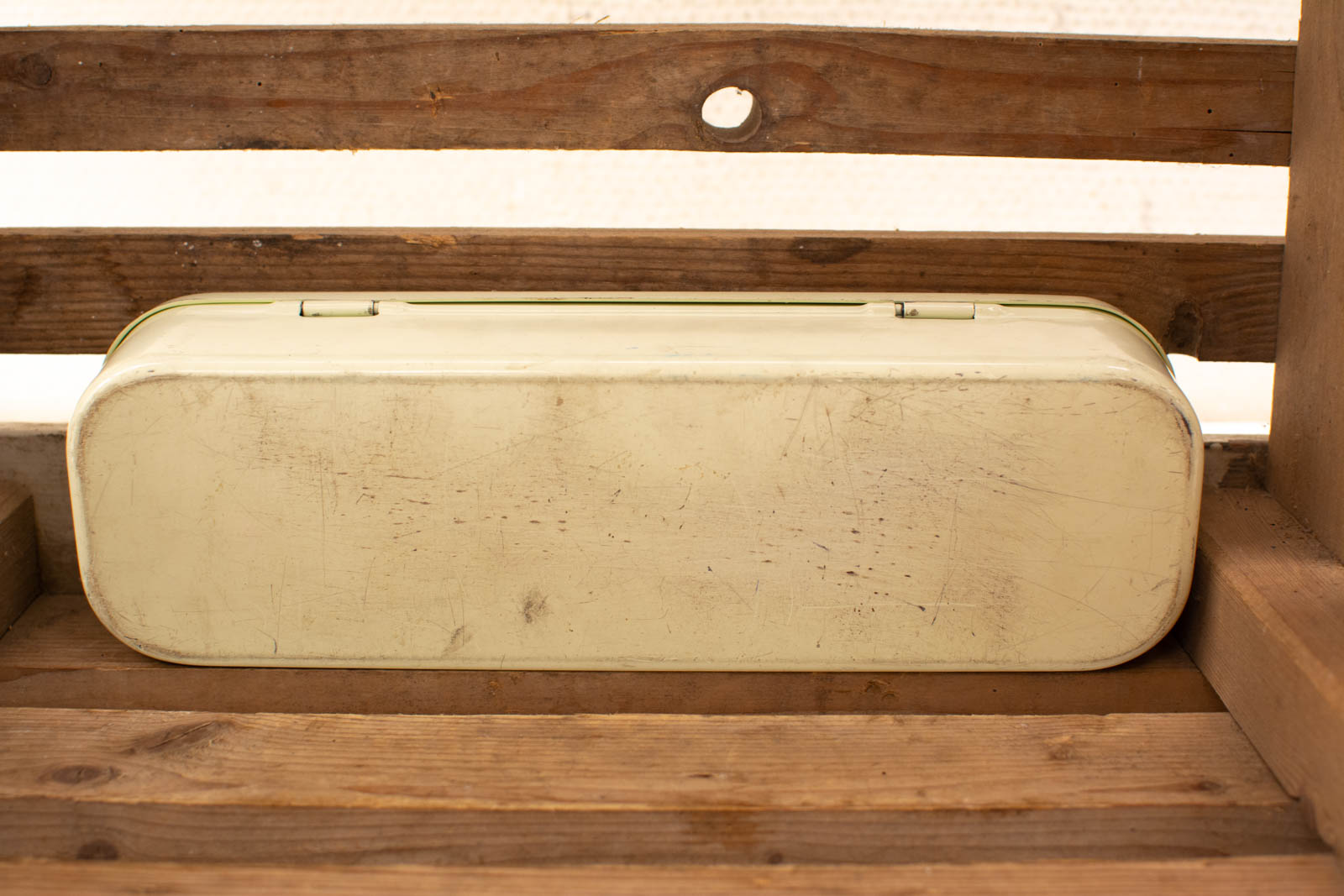 de spaarblik heeft gebruikssporen is met een pen geschreven /gekrast is een sleutel bij