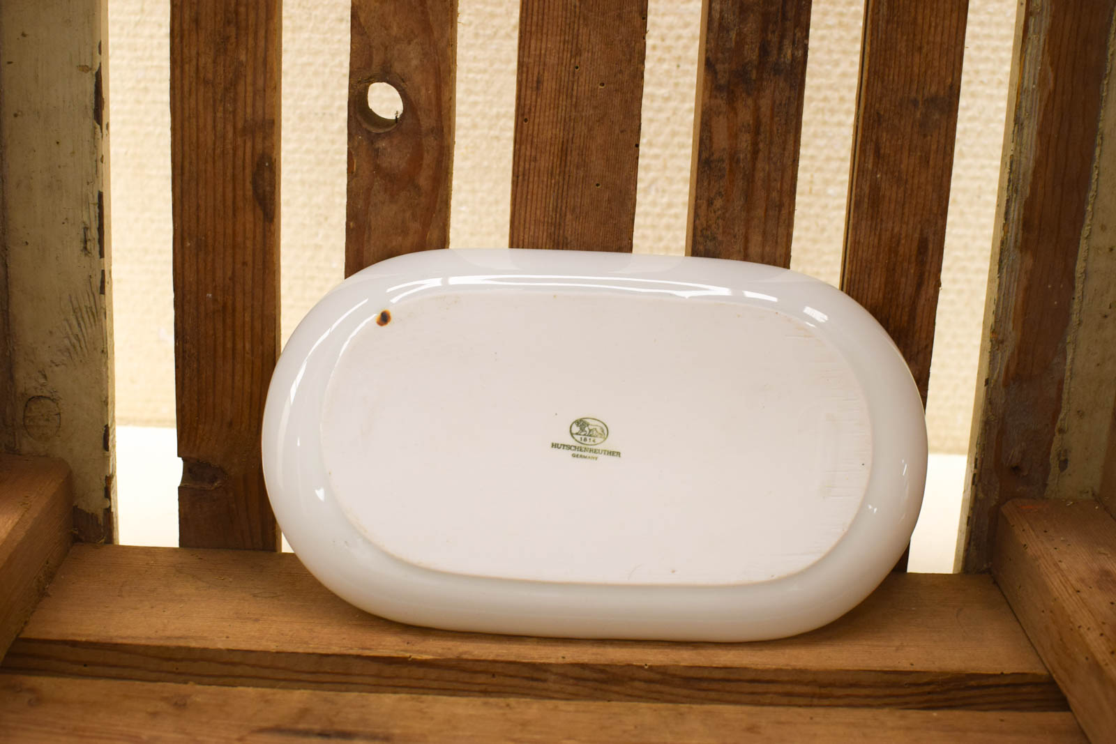 het schaaltje gemeten breed 22 cm diepte 12,5 cm diameter bovenkant van het suikerpotje 7 cm hoog 6,5 cm het melkkannetje gemeten van tuit met oor breed 8 cm hoog 7,5 cm