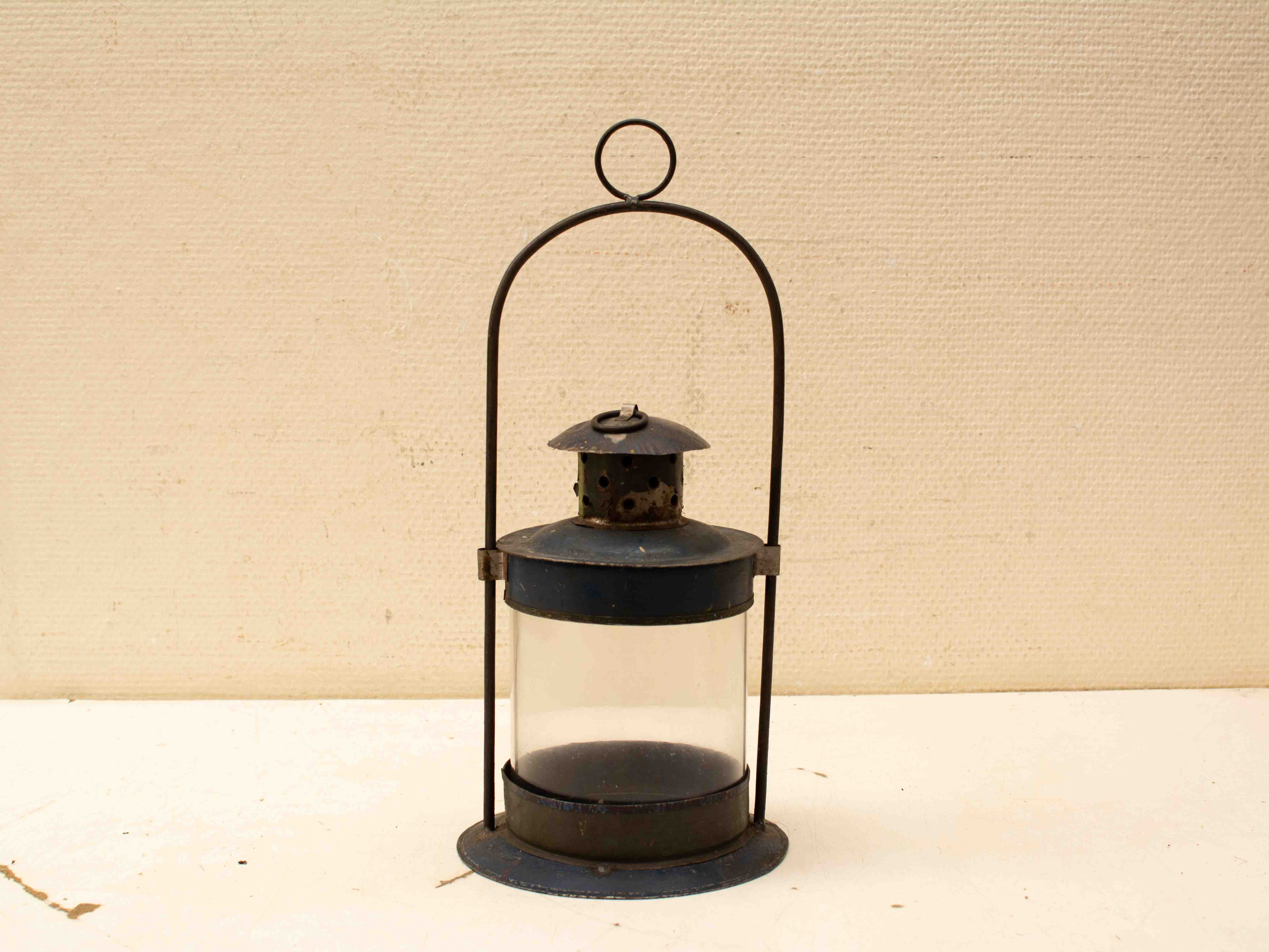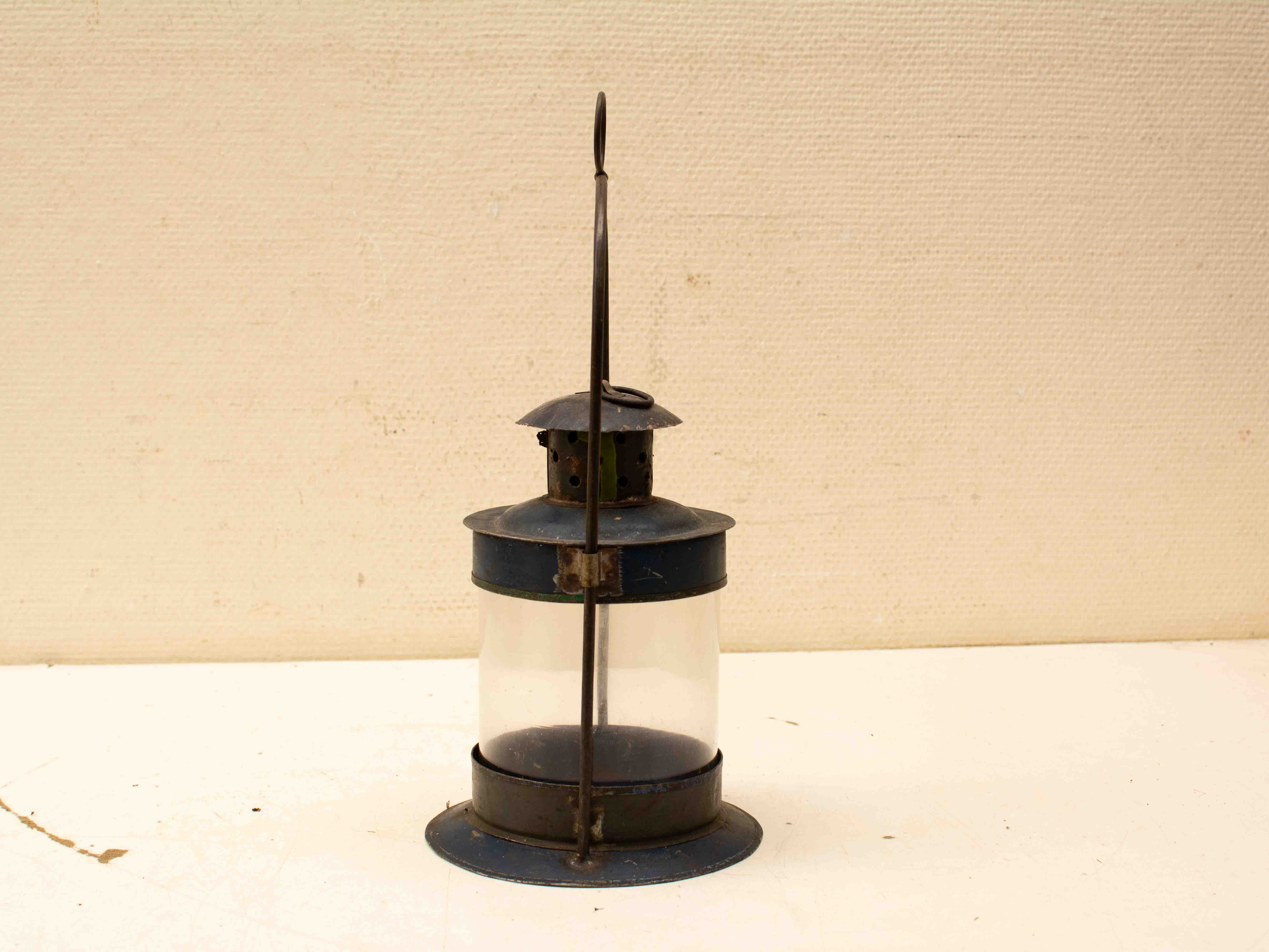 de lantaarn heeft roest het glas is dof maar nog heel hoogte gemeten zonder hendel 23cm