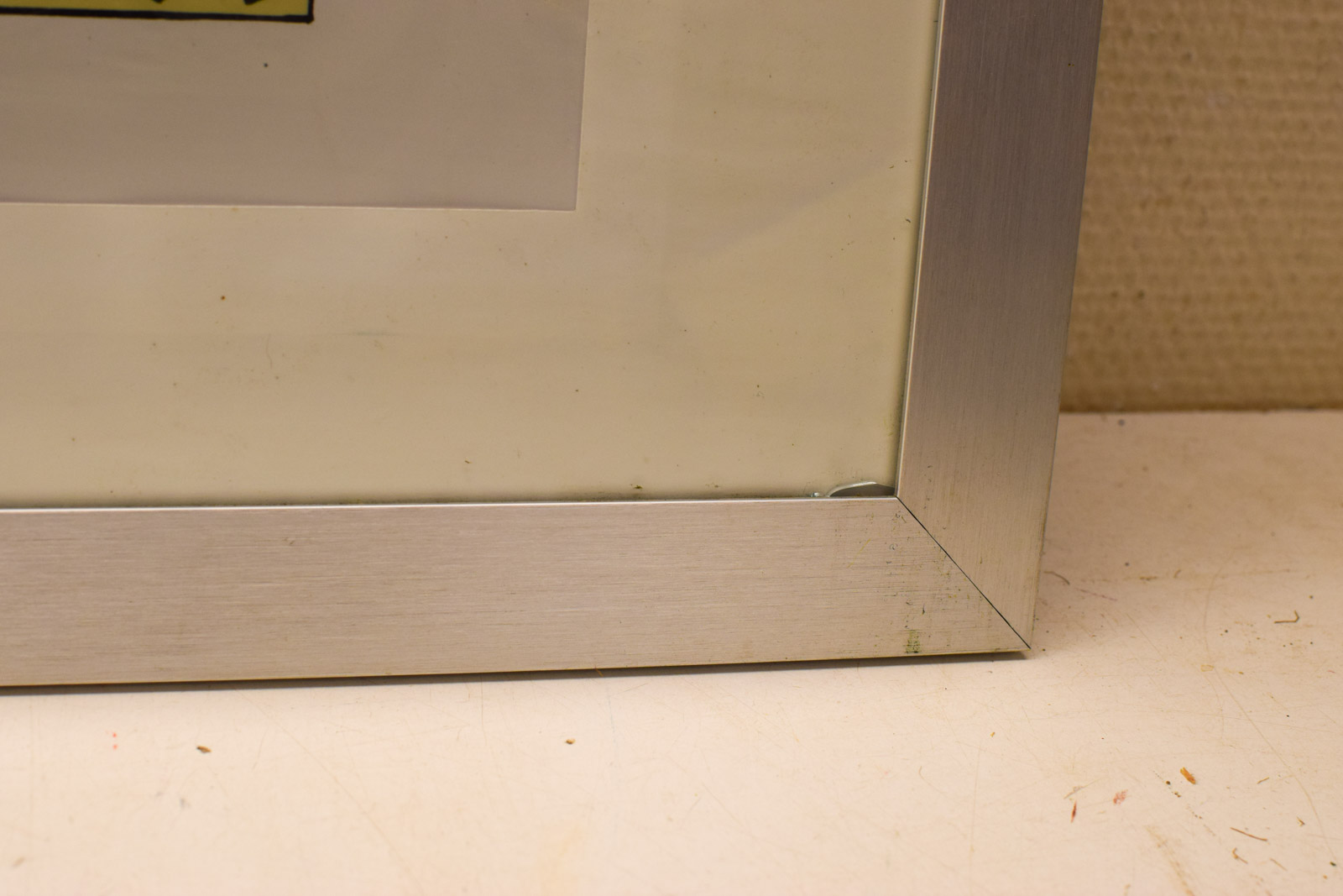 aan de onderkant van het glas is een barst breed 75,5 cm hoog 55 cm