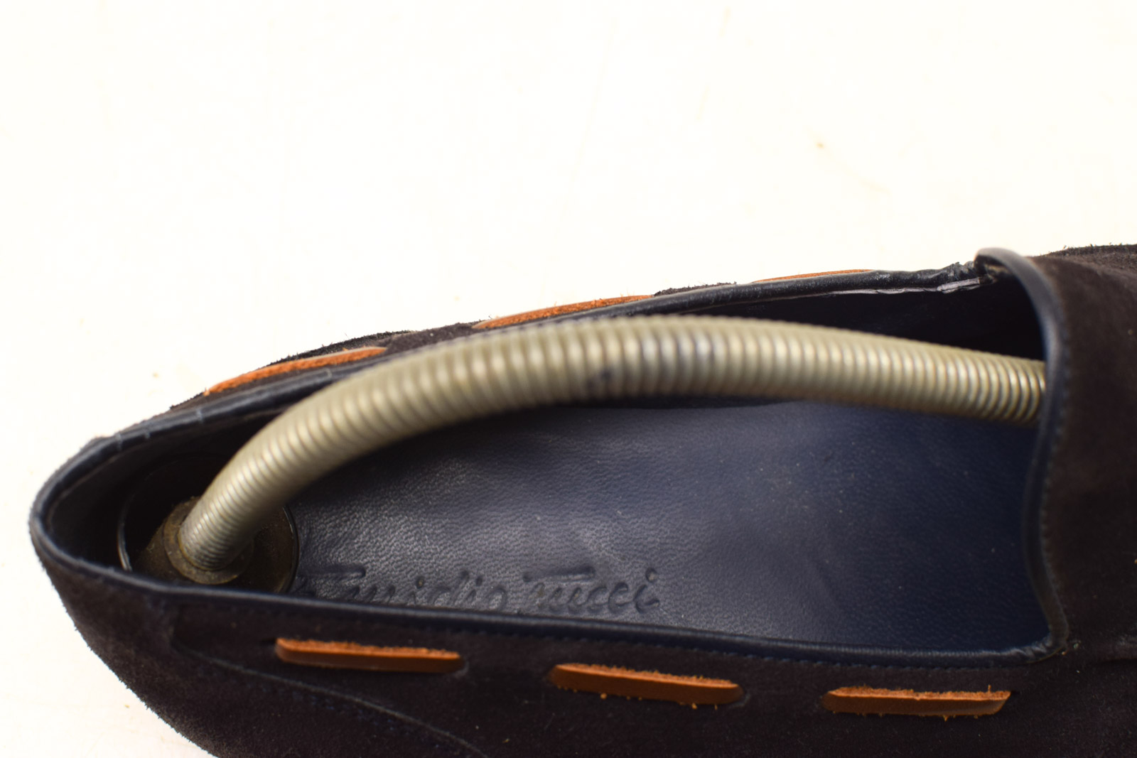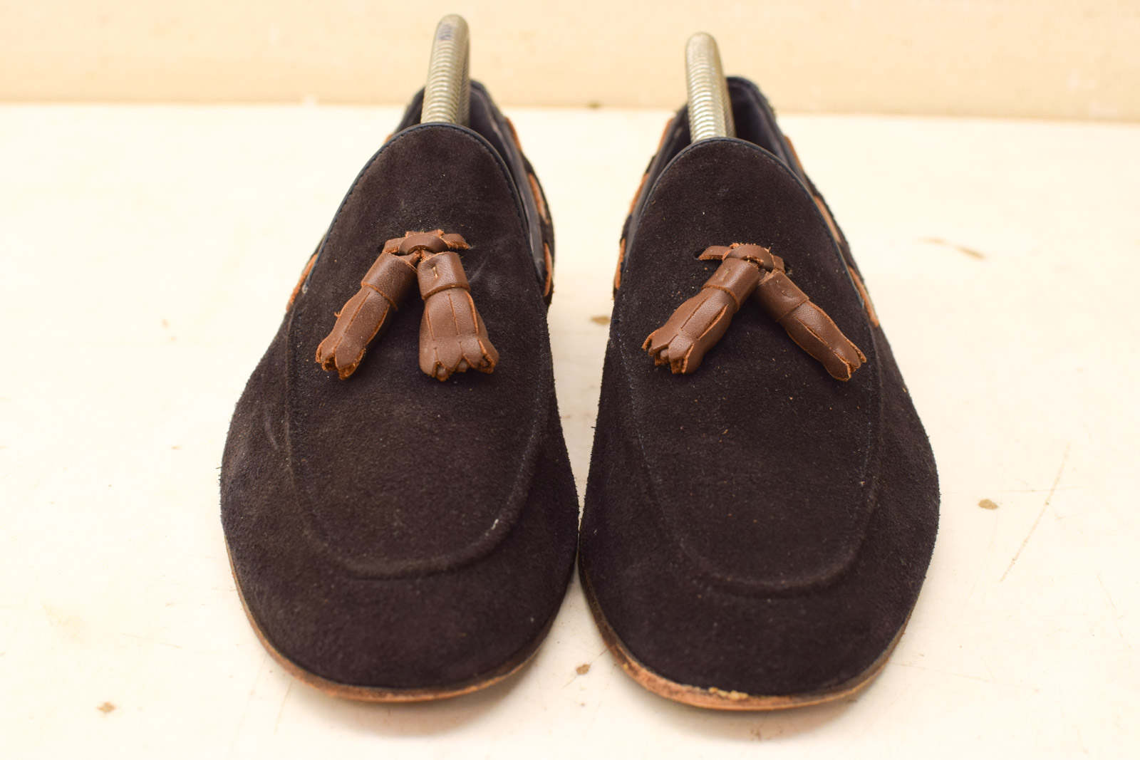 Ze hebben aan de voorkant 2 klosjes ze zijn gedragen zien er verder redelijk uit maat 41 ze hebben een spanveer in de schoenen