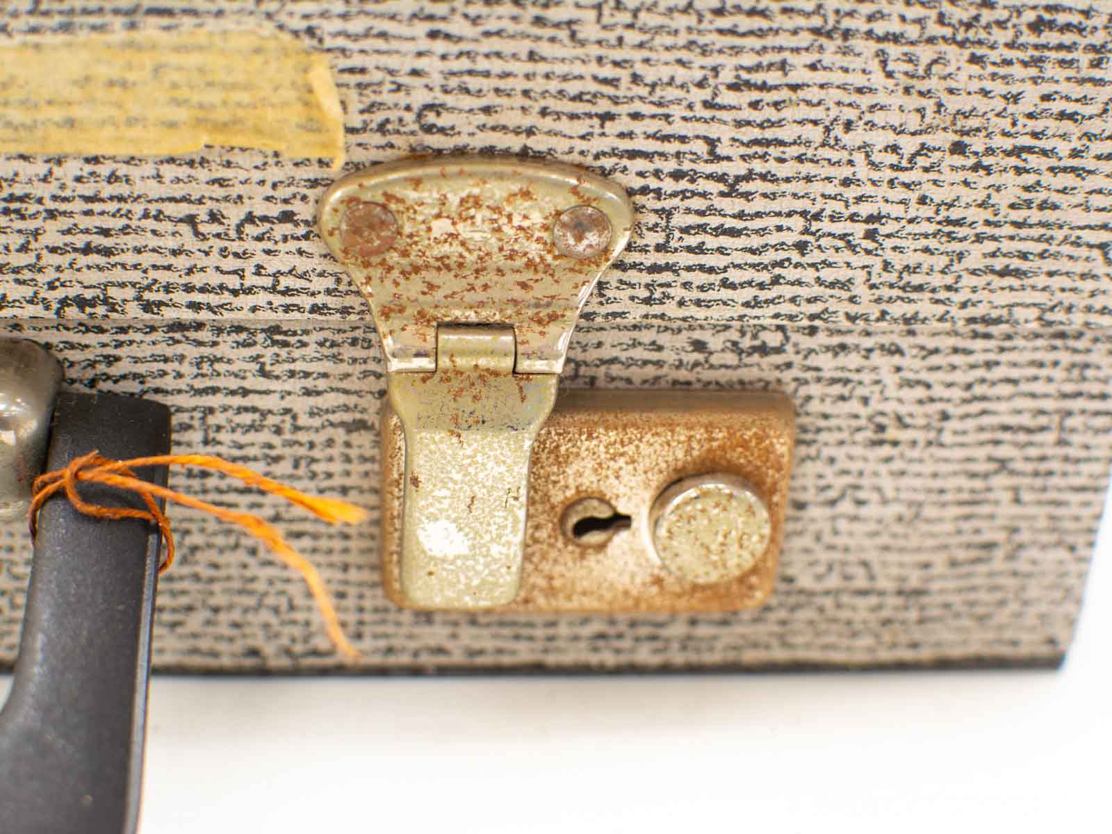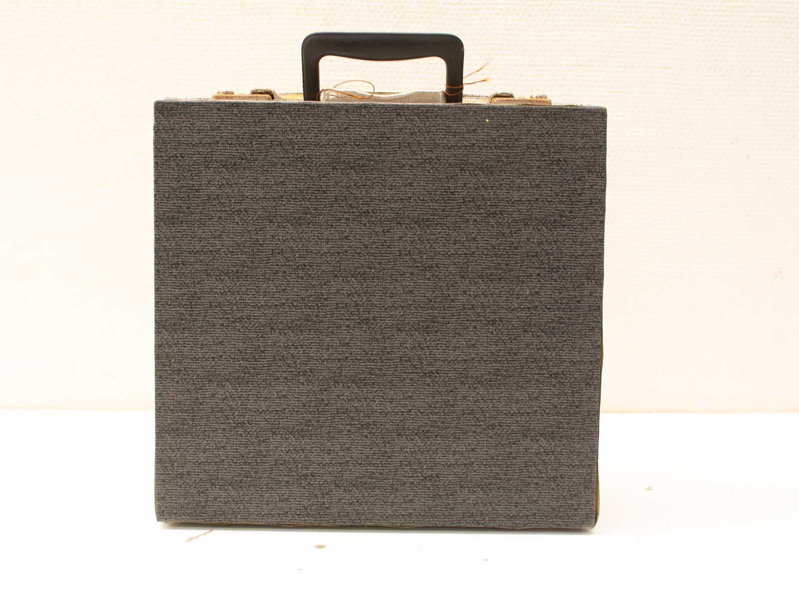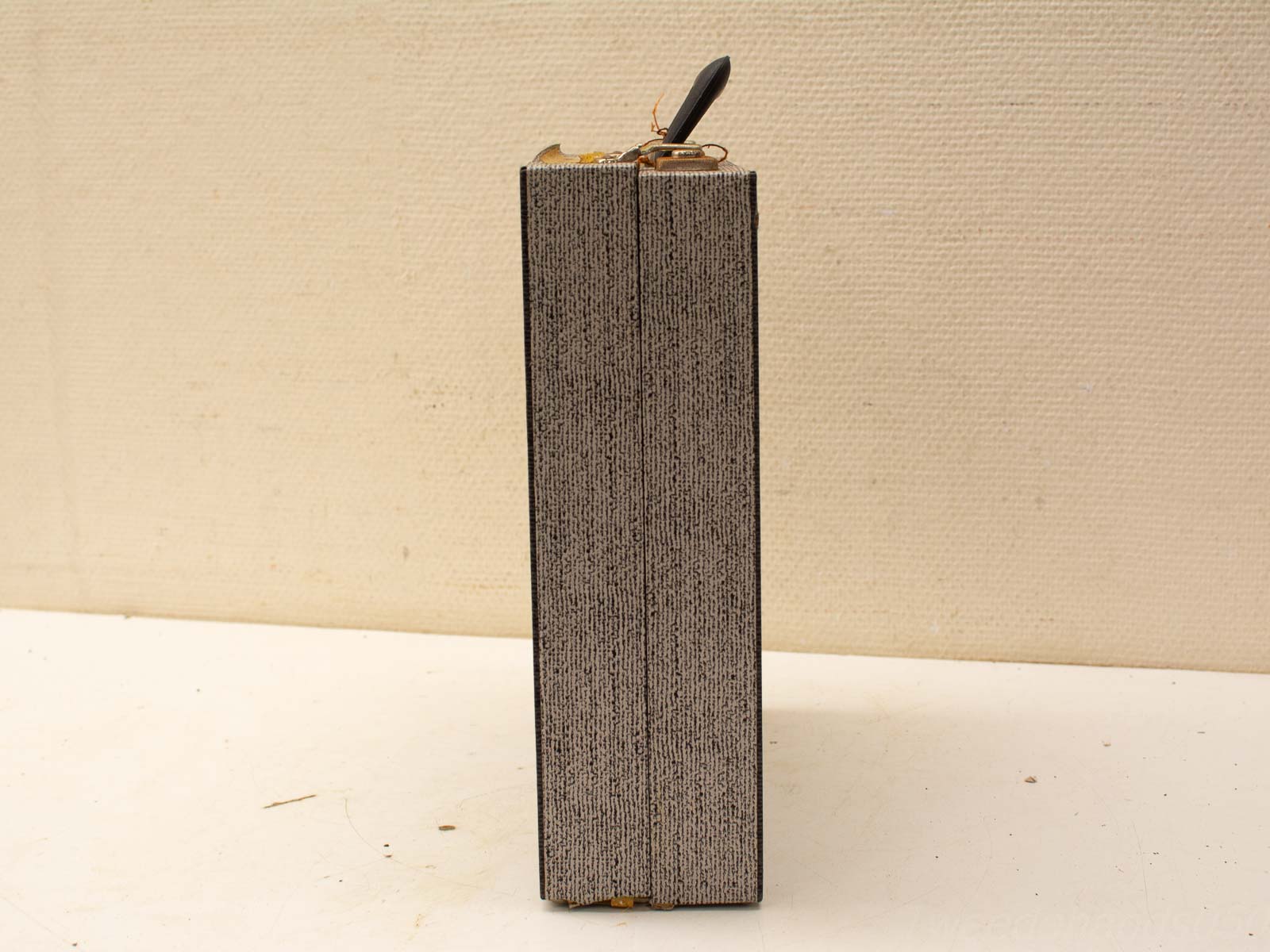 de koffer heeft ruimte voor 20 lp de hoesjes zijn nog heel de koffer heeft roest en gebruiksporen