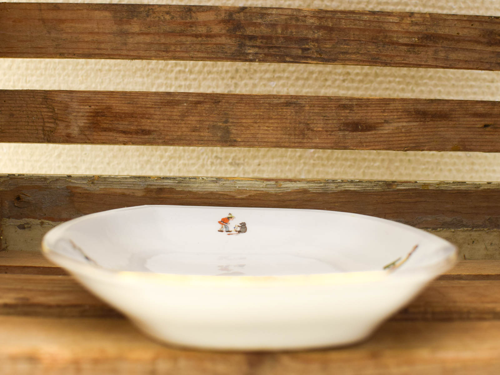 Met prent van kinderen heeft krasjes door het gebruik is verder nog heel en redelijk