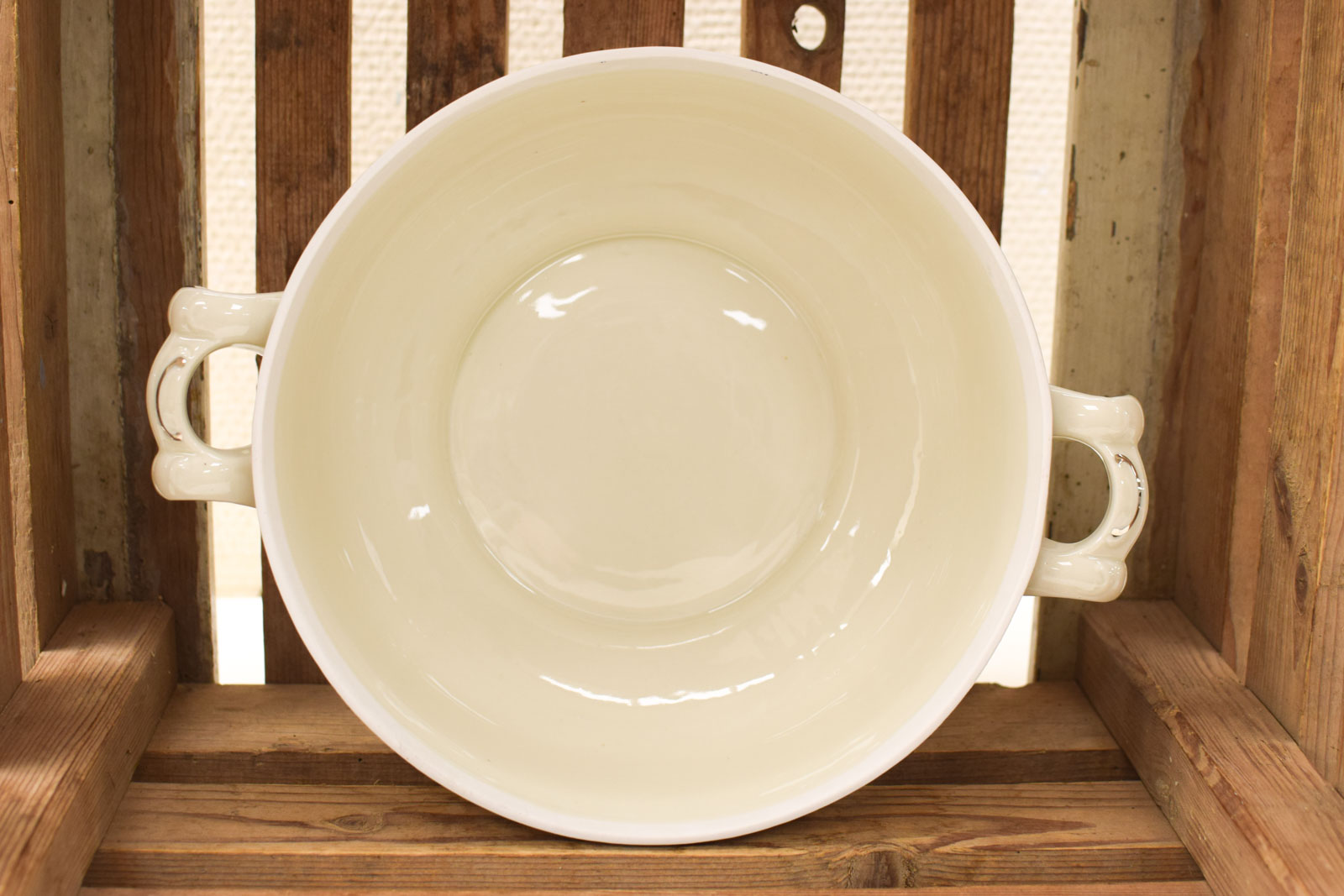 heeft een opening in de deksel voor de lepel gemeten van oor tot oor 30 cm gemeten zonder deksel hoog 11 cm