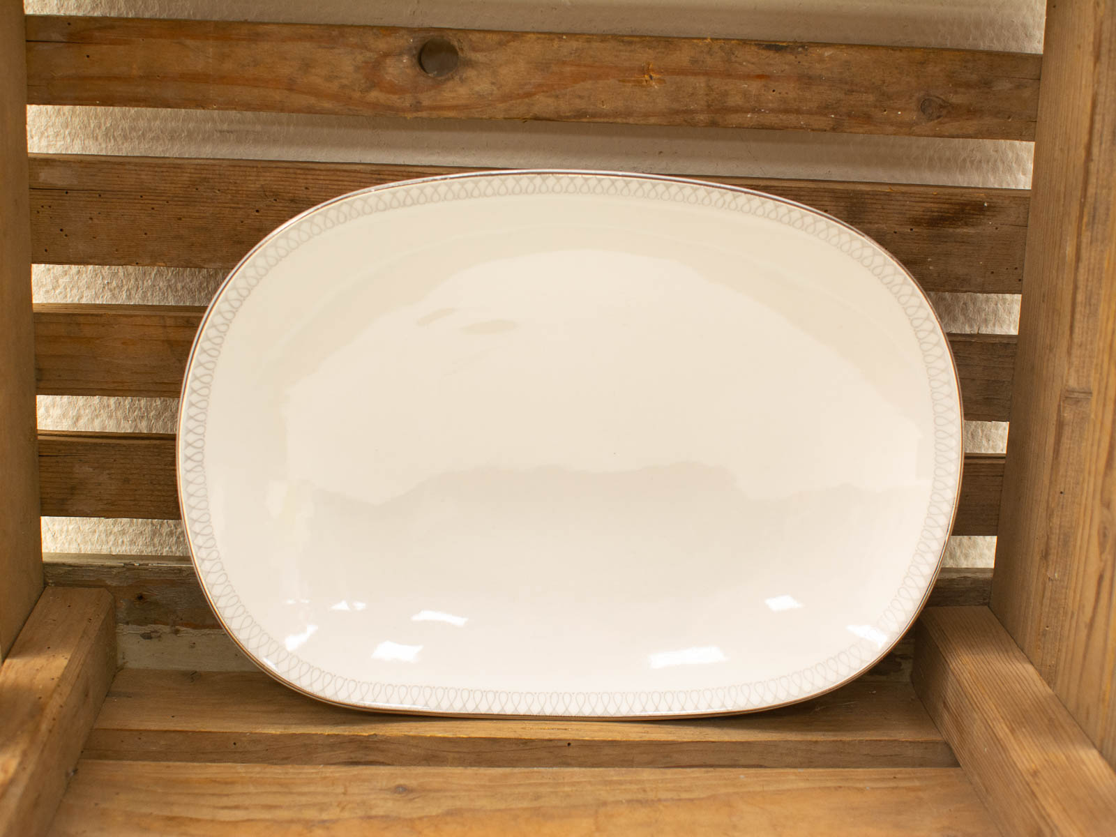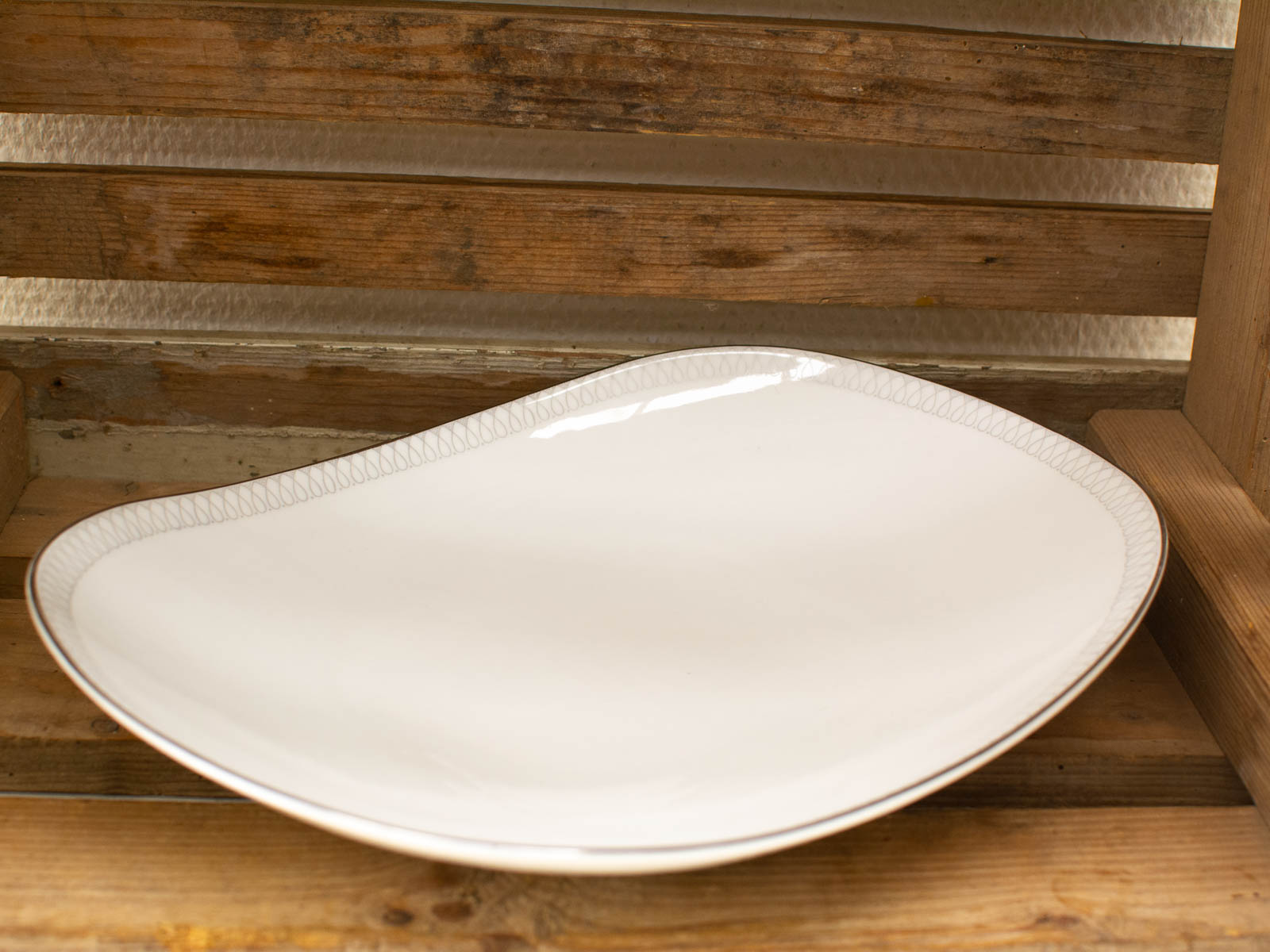 de schaal heeft een grijs versiert randje zie foto schaal heeft wat krasjes hoogte 3,5 cm