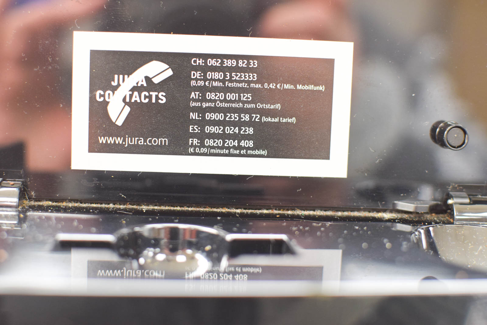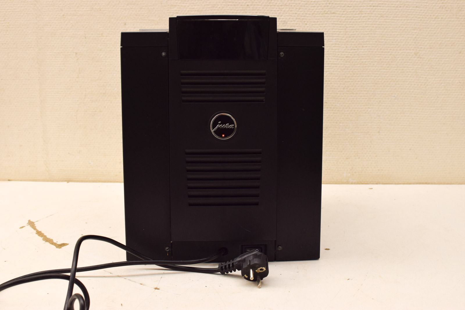 Jura Impressa F7 automatische espressomachine in zwart. Getest en werkend, maar heeft een poetsbeurt nodig. Afmetingen: 28,5 x 32 x 34 cm.