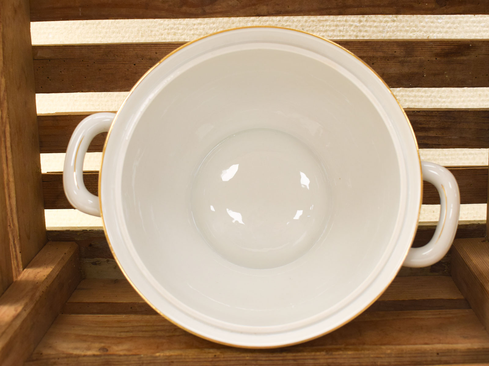 Kahla is een Duitse porceleinfabriek met een lange geschiedenis in fijne tafelservies. Dit soort terrines werden vroeger gebruikt om soep of andere gerechtjes aan tafel te serveren. Het materiaal is degelijk porselein en het stuk heeft een mooie klassieke vorm die in veel stijlen past.