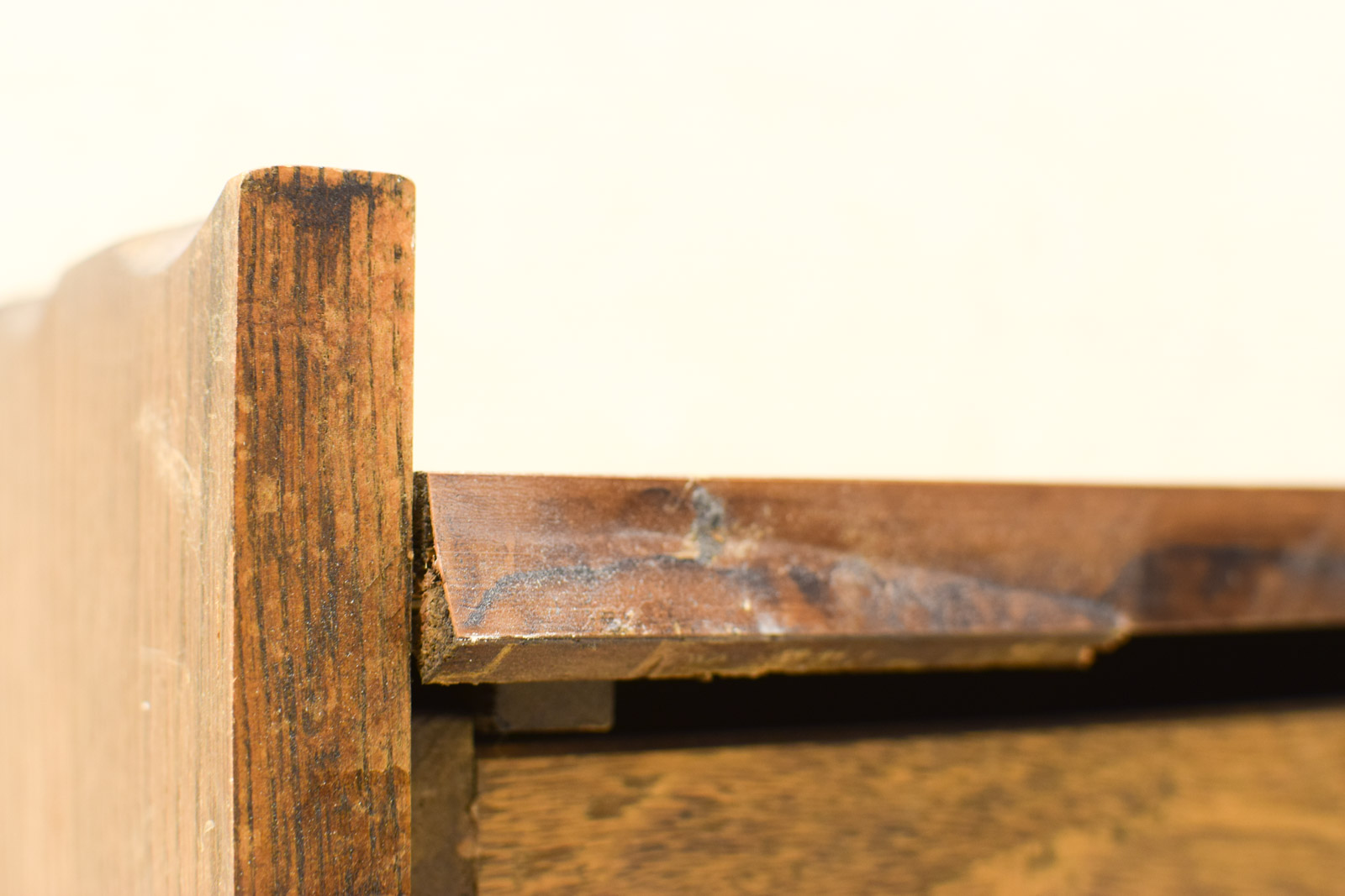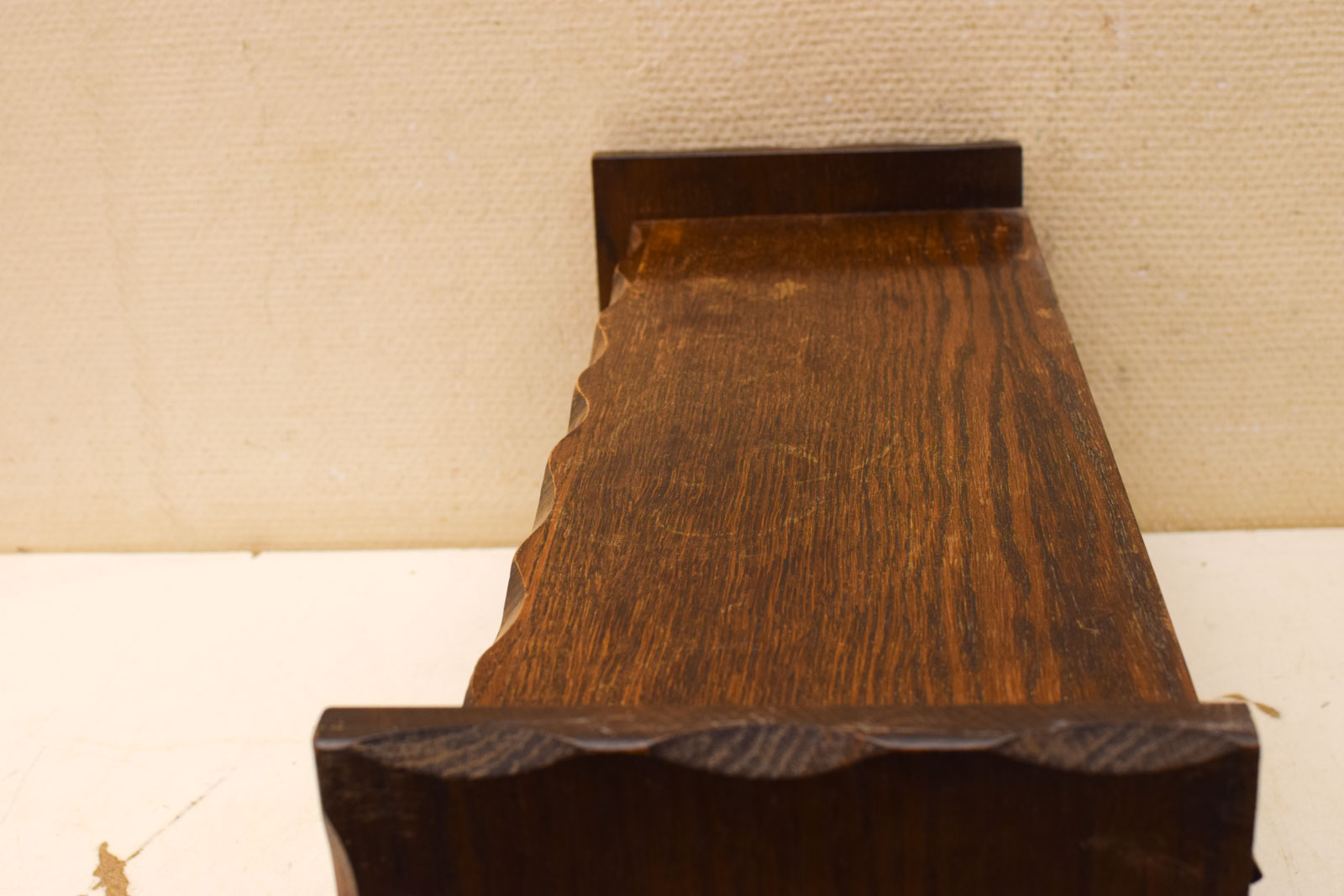 Let op: dit kastje heeft aan de achterkant een beschadiging. Dit is zichtbaar op de foto’s en vermindert het esthetische waarde voor het geval je het tegen de muur wilt plaatsen waar de achterkant zichtbaar is. Voor gebruik in een hoek of waar de achterkant niet zichtbaar is, is dit geen probleem.