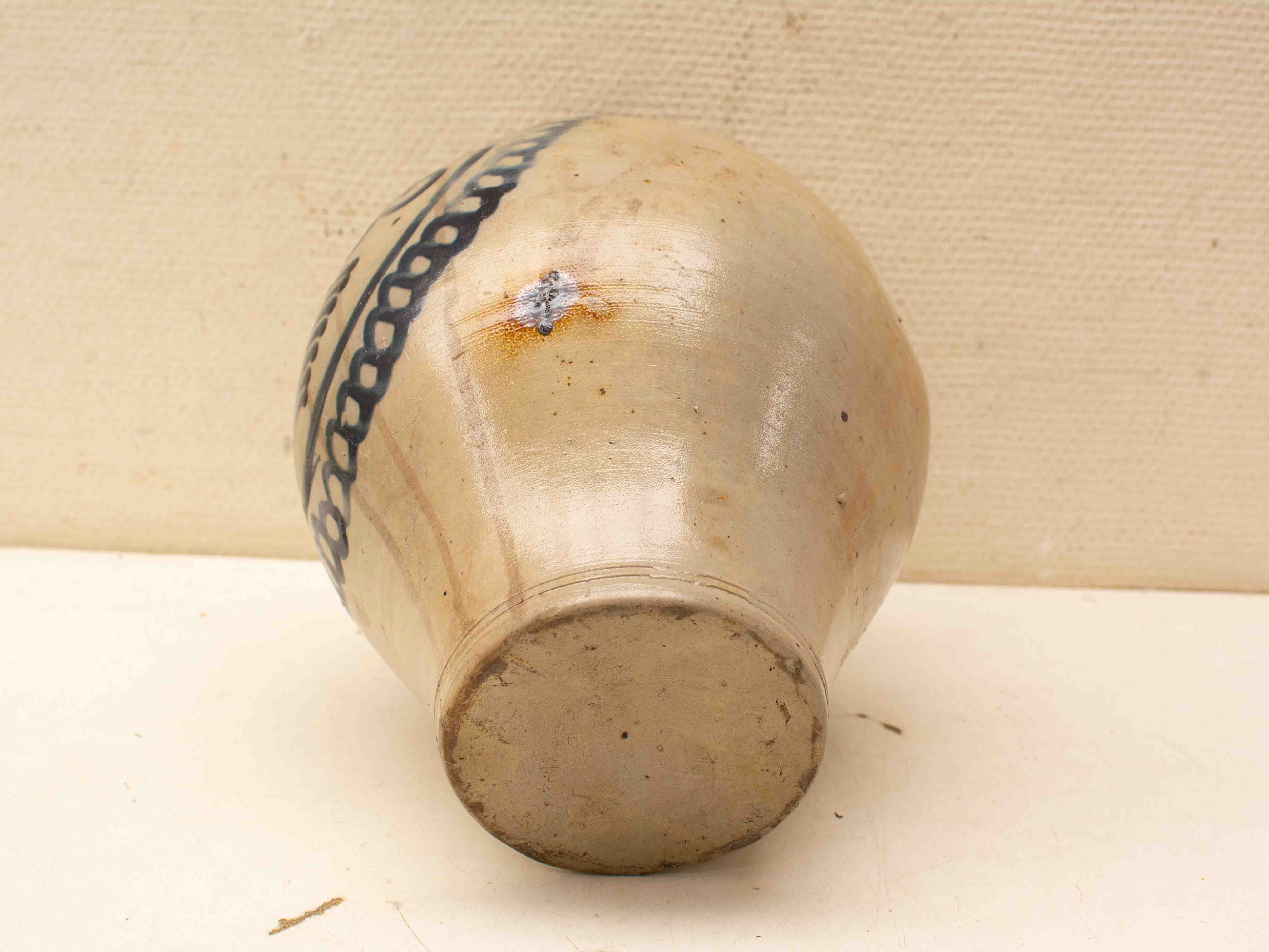 de oliekan mist een paar stukjes is wat verkleurd maar is verder nog heel diameter bovenkant opening 4,5 cm