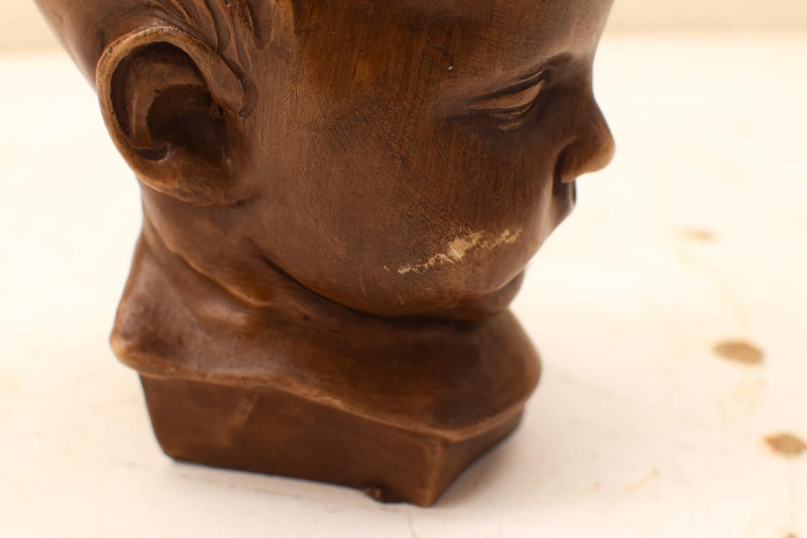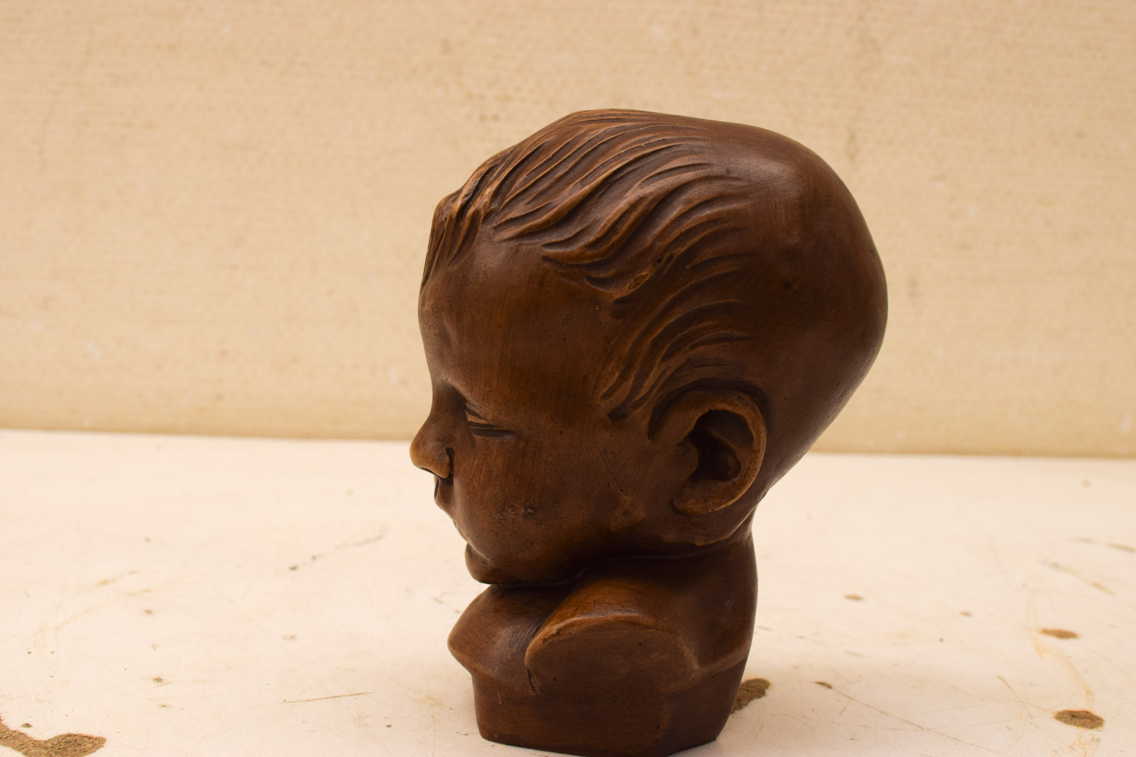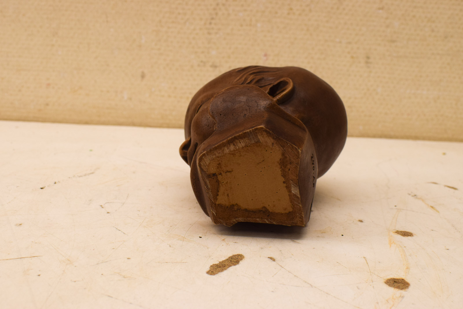 het hoofdje heeft gebruikssporen zoals krasjes op de wang