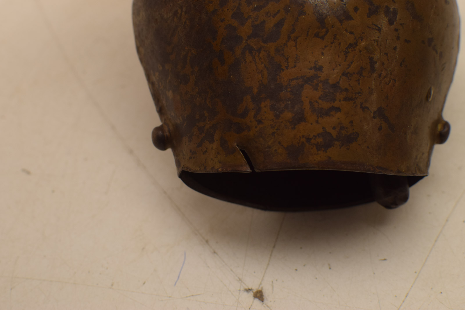 de koeienbel heeft een scheur onderaan en heeft gebruikssporen