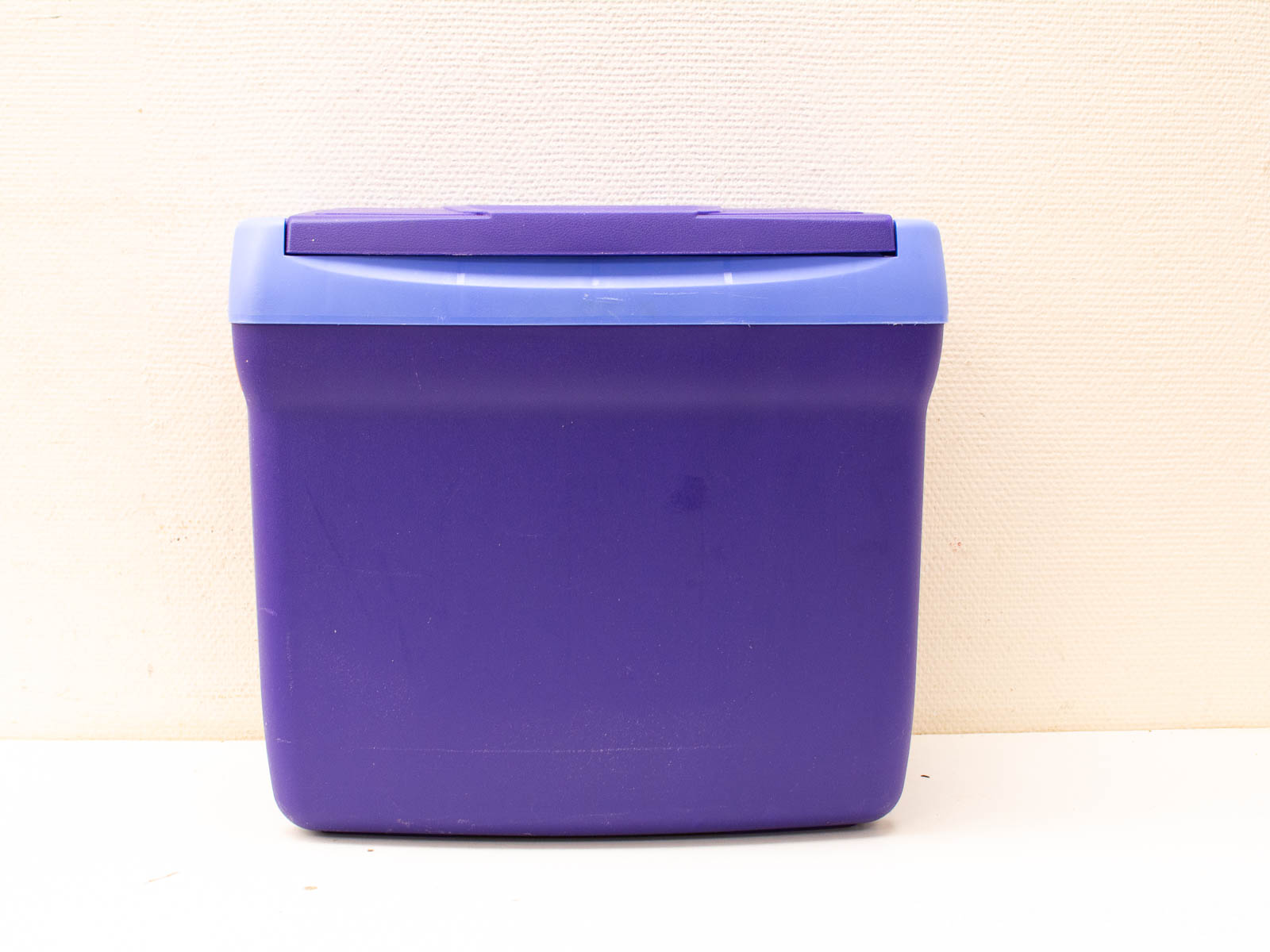 de koelbox heeft 2 deksels 1 met de koel gedeelte de andere is de deksel om de koelbox mee te nemen de koelbox heeft wat krassen en slijtage hoogte gemeten zonder deksels 41 cm