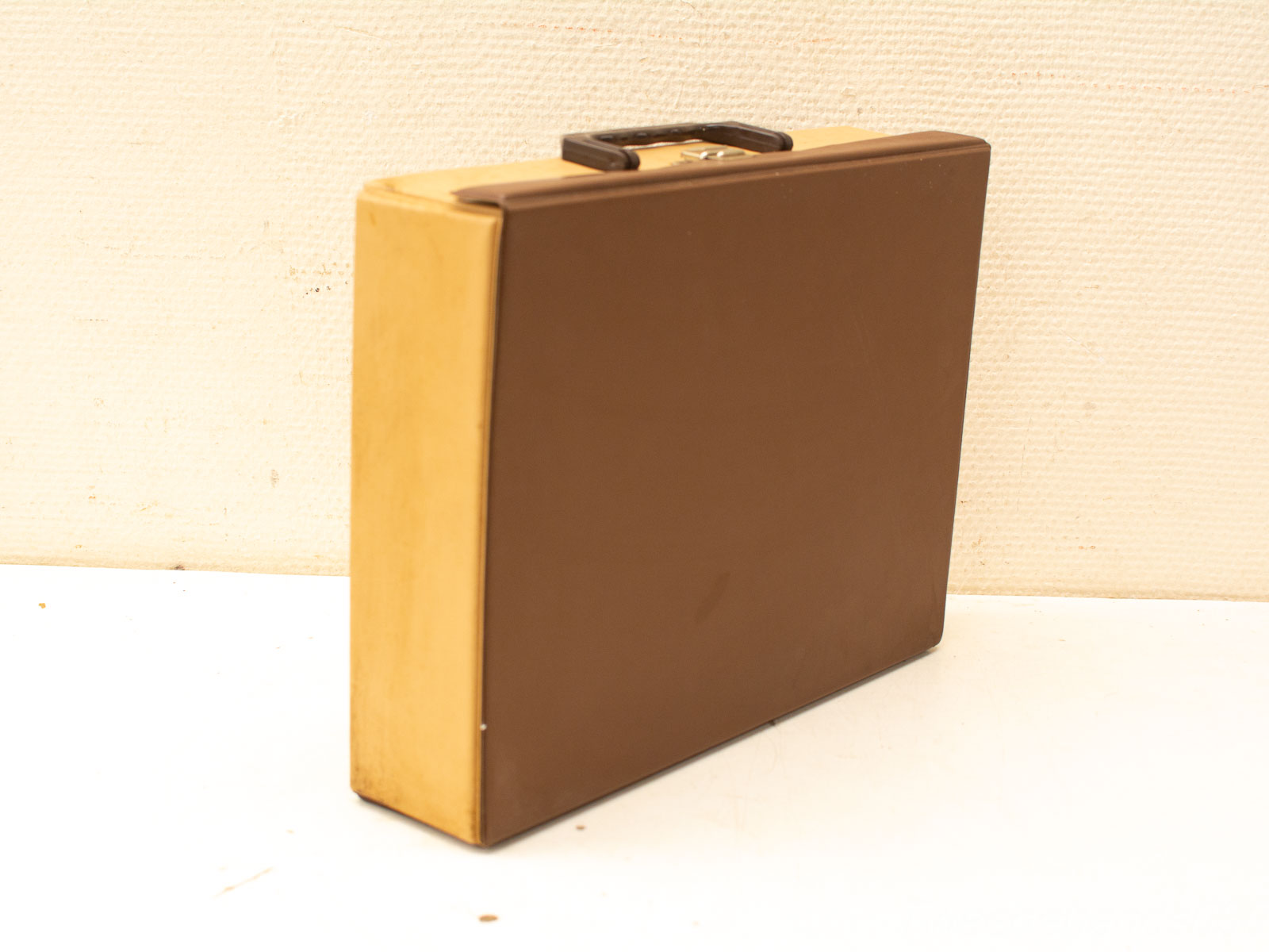 1 bruine platic steuntje is eraf de koffetje heeft wat vlekken diep 26,5 cm